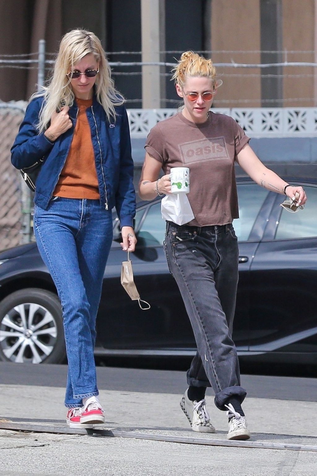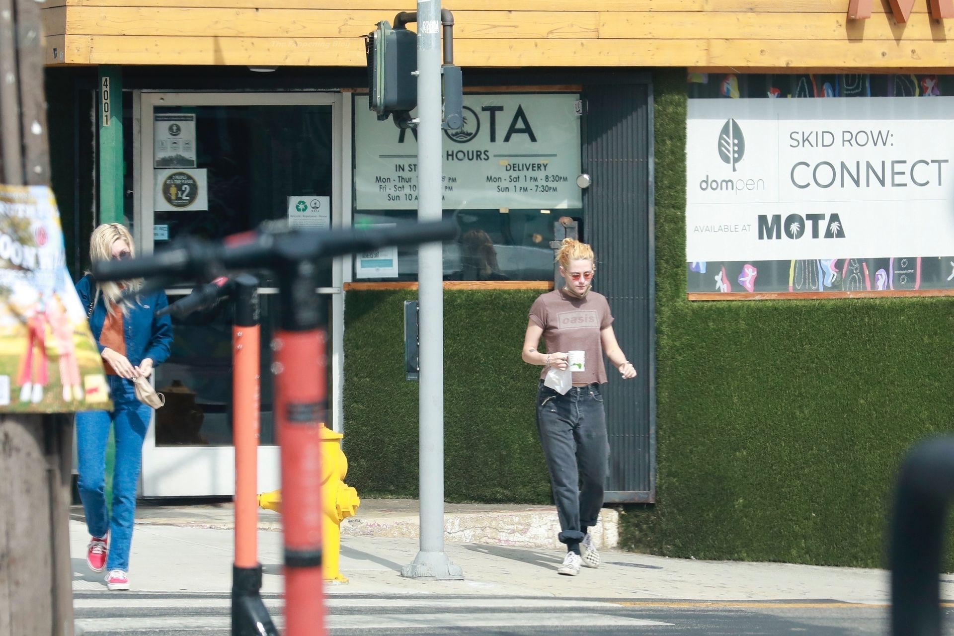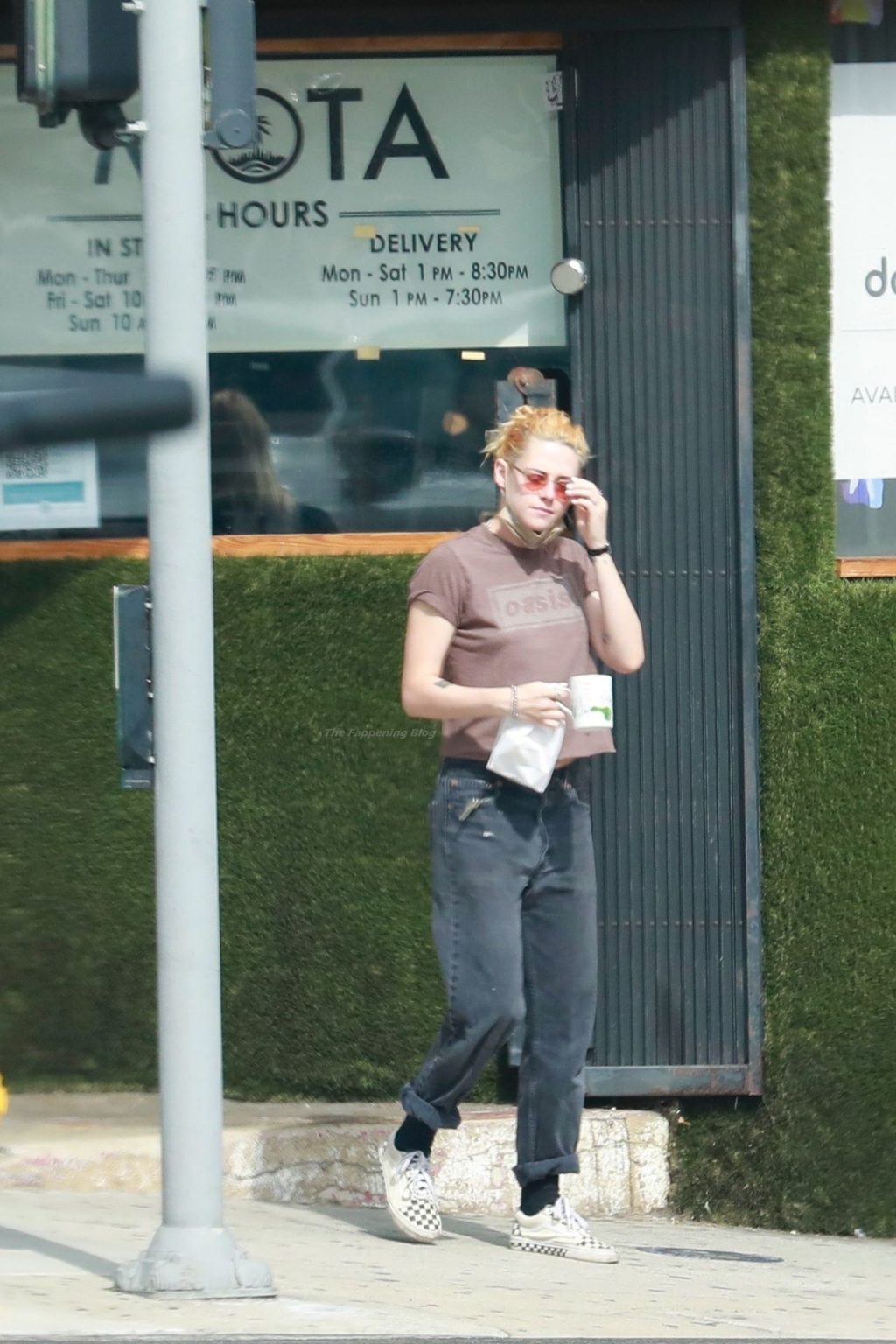 La star di The Fappening Kristen Stewart e Dylan Meyer fanno tappa da MOTA – Medicine Of The Angels, 18/09/2021. K-Stew indossava una maglietta cool della band Oasis con jeans scuri e sneakers bianche.