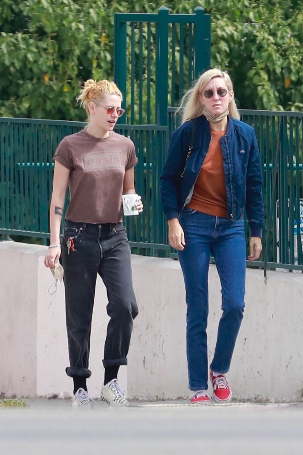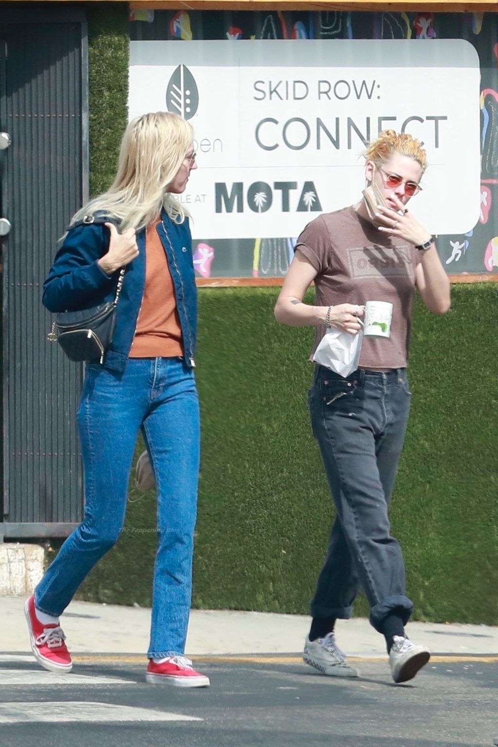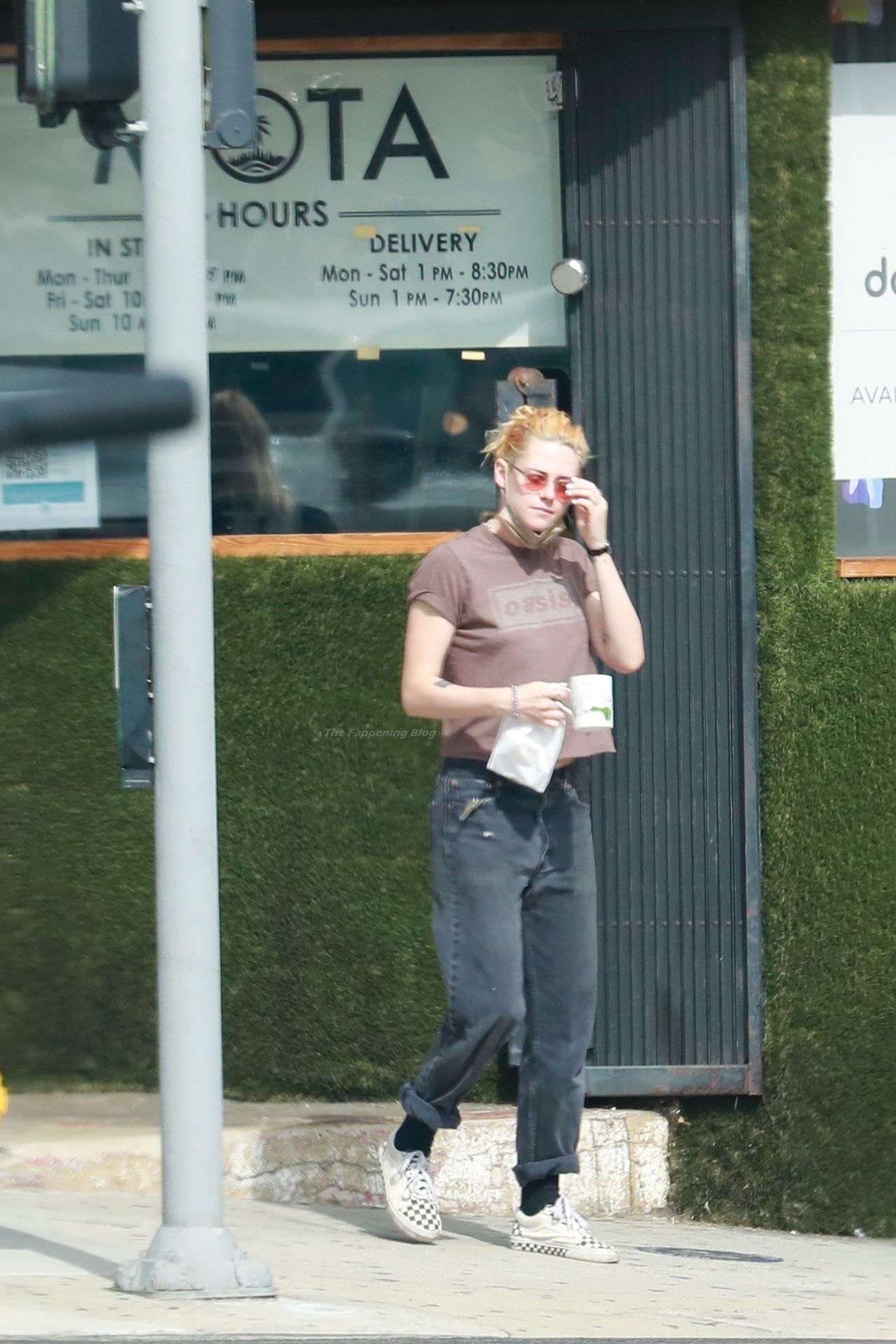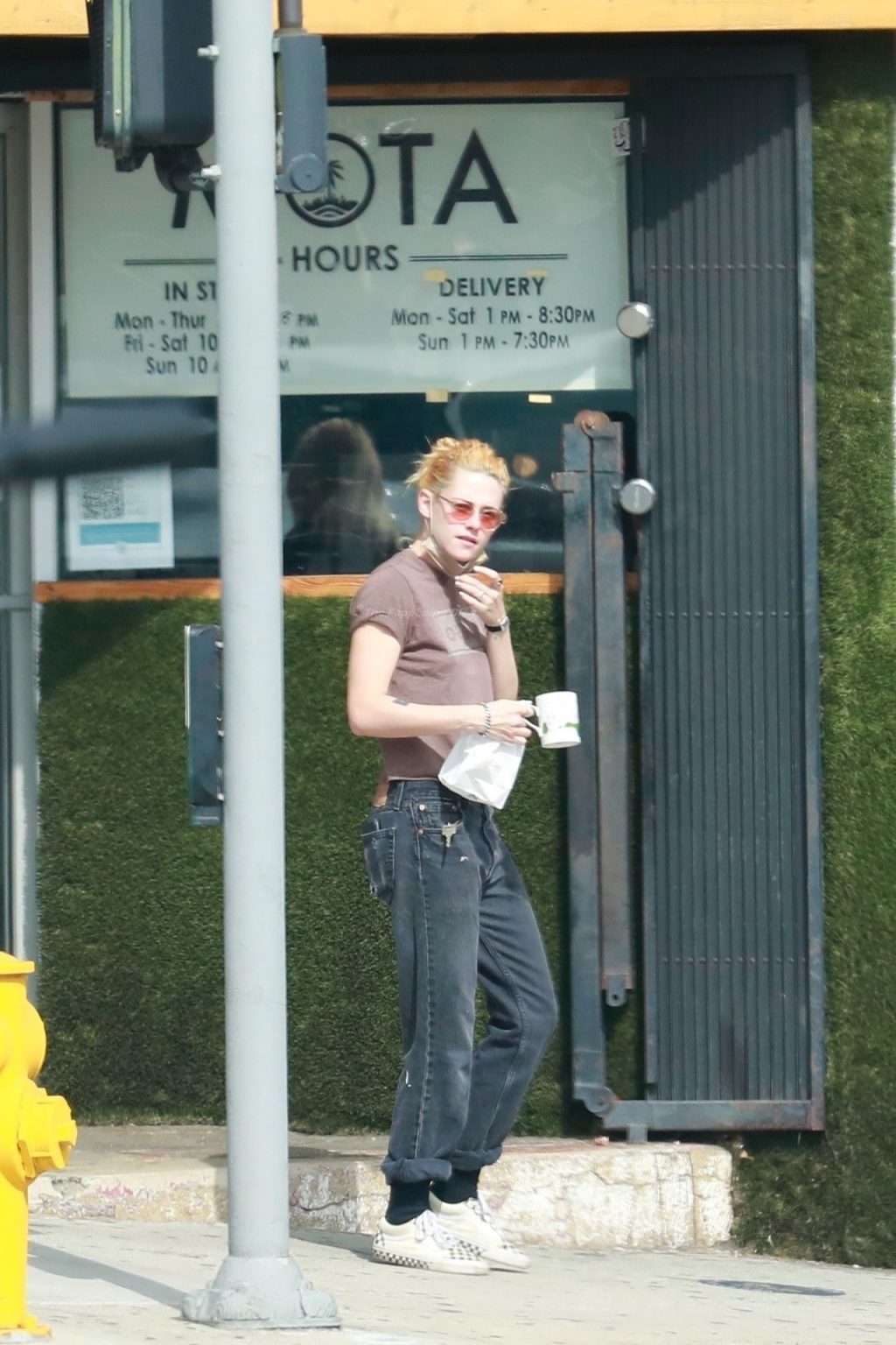 La star di The Fappening Kristen Stewart e Dylan Meyer fanno tappa da MOTA – Medicine Of The Angels, 18/09/2021. K-Stew indossava una maglietta cool della band Oasis con jeans scuri e sneakers bianche.