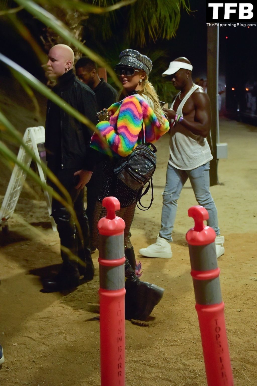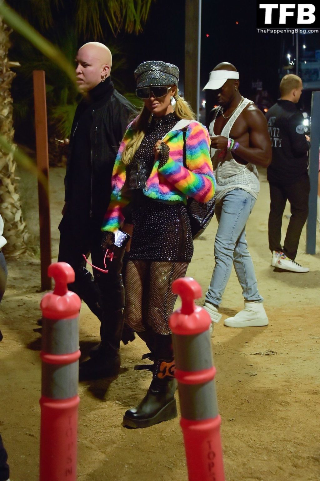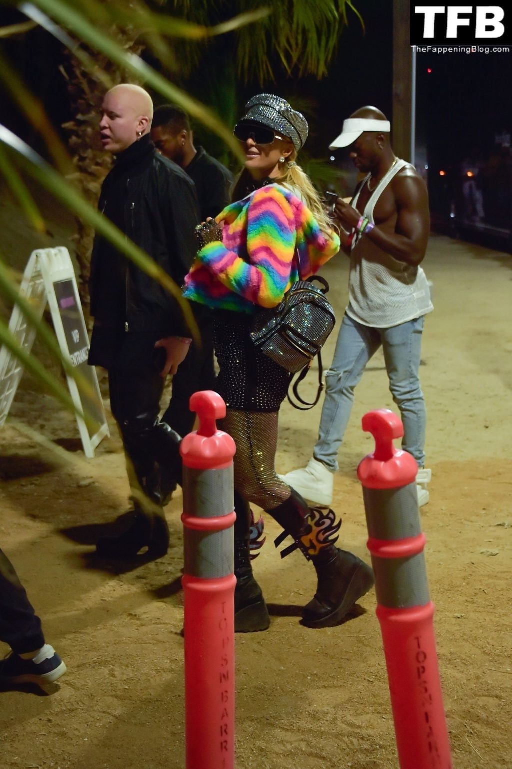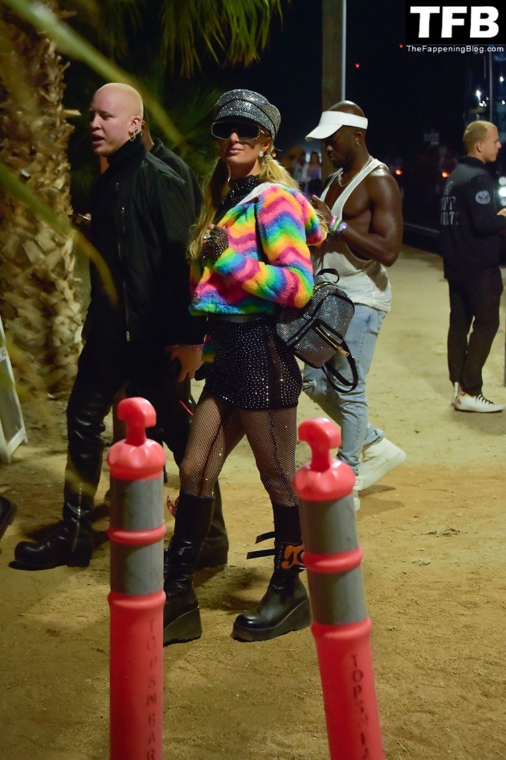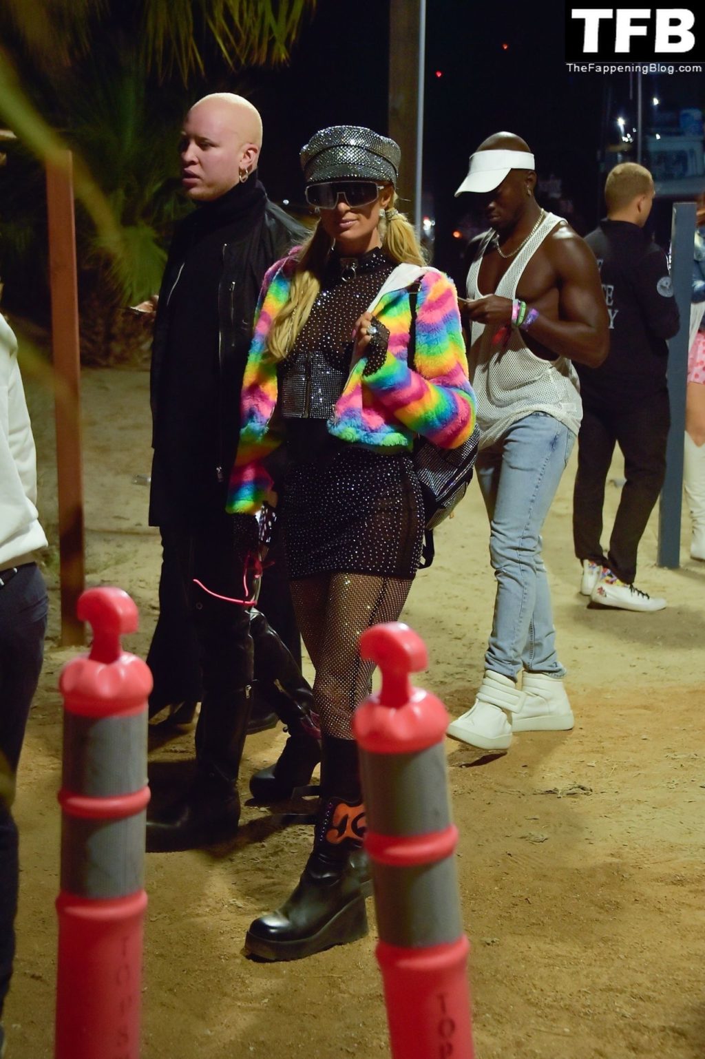 La star di The Fappening Paris Hilton e il suo entourage arrivano alla festa Neon Carnival durante il Coachella e la socialite è completamente vestita per l’occasione, sfoggiando un maglione color arcobaleno abbinato a un vestito scintillante – Indio, 17/04/2022.