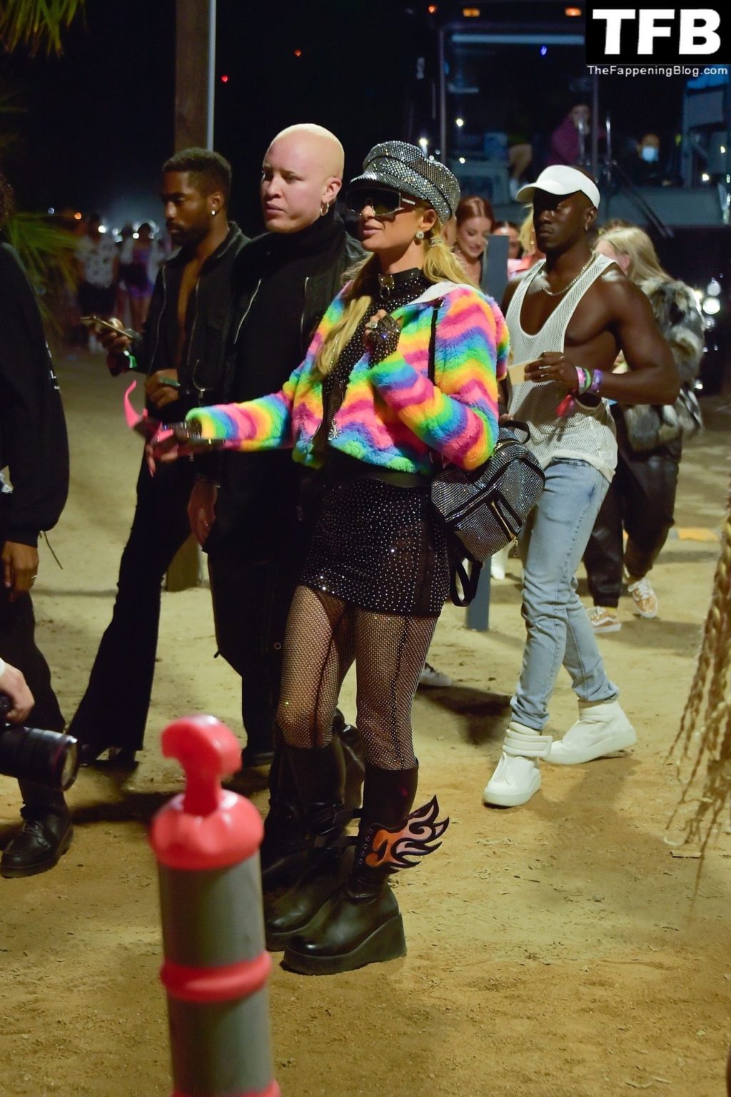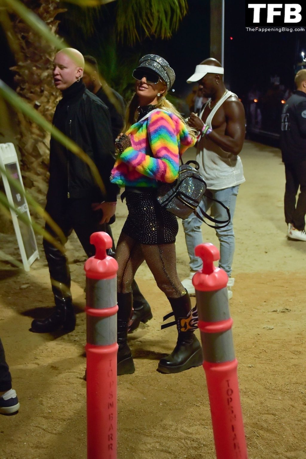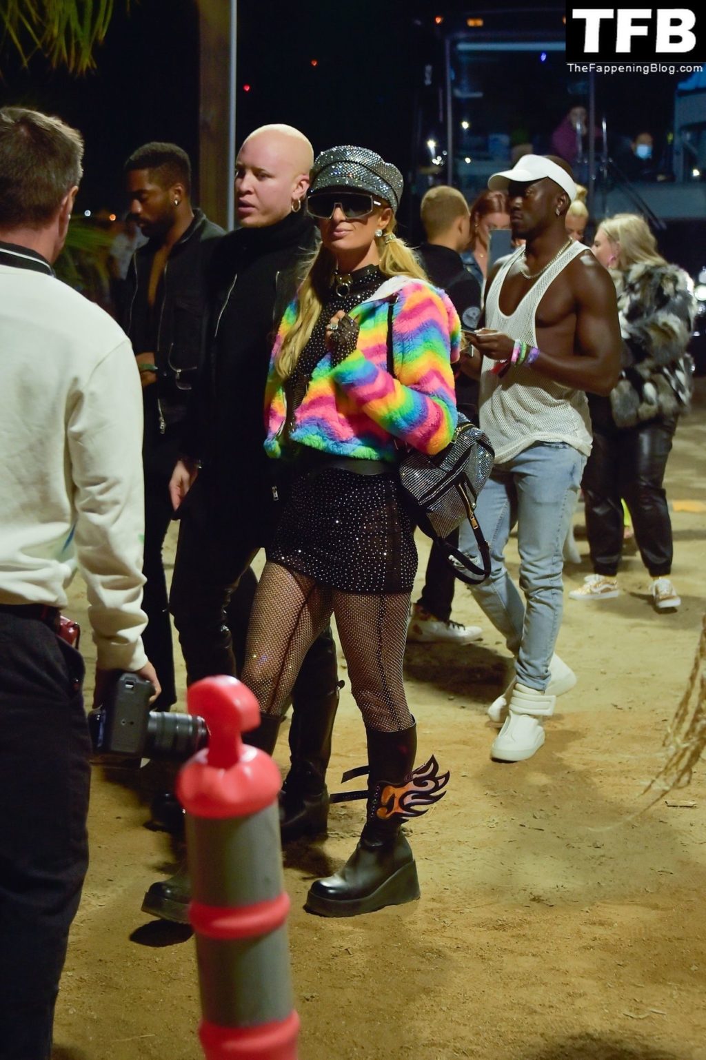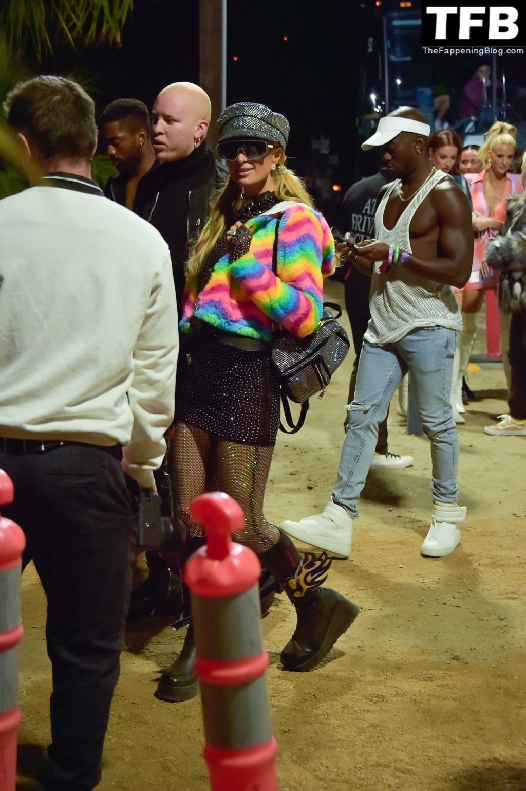 La star di The Fappening Paris Hilton e il suo entourage arrivano alla festa Neon Carnival durante il Coachella e la socialite è completamente vestita per l’occasione, sfoggiando un maglione color arcobaleno abbinato a un vestito scintillante – Indio, 17/04/2022.