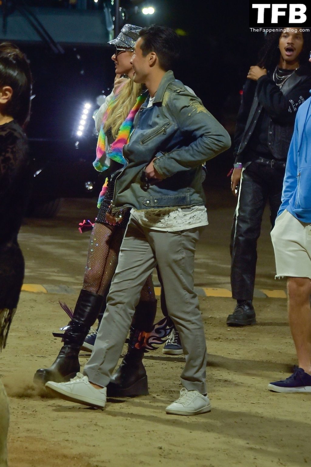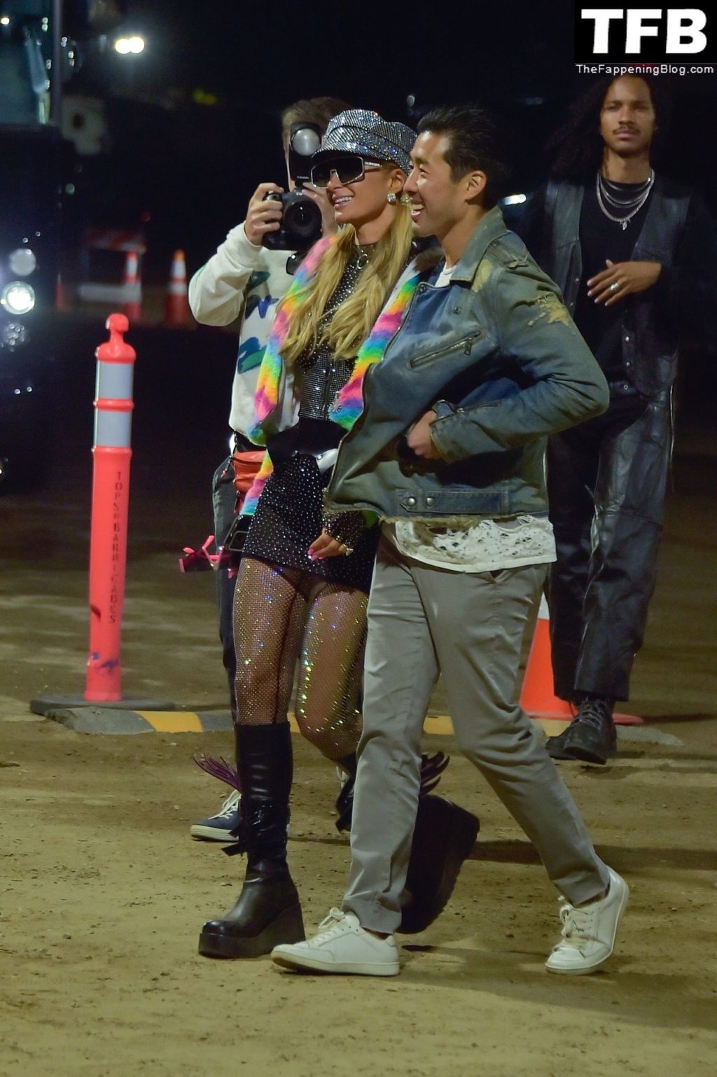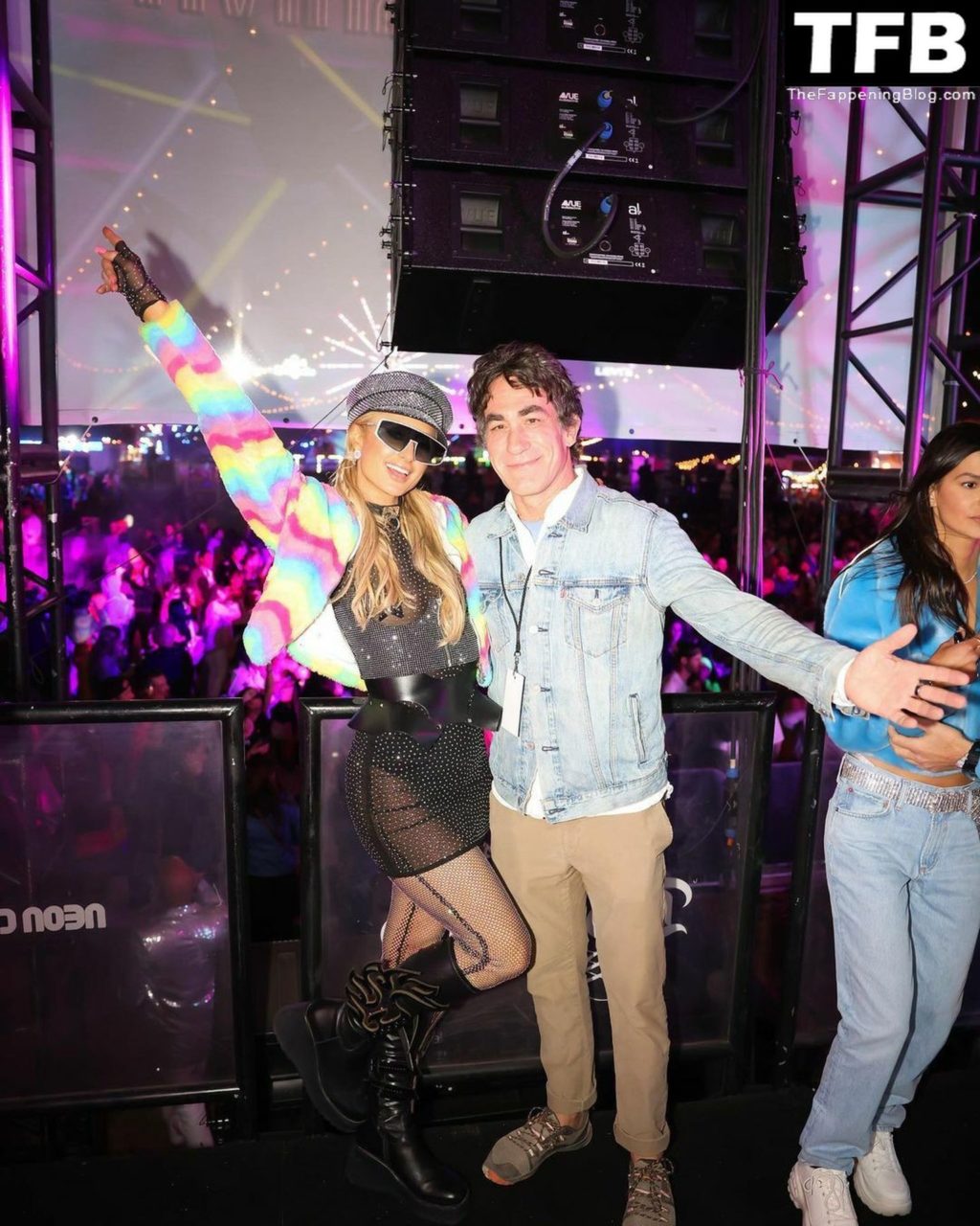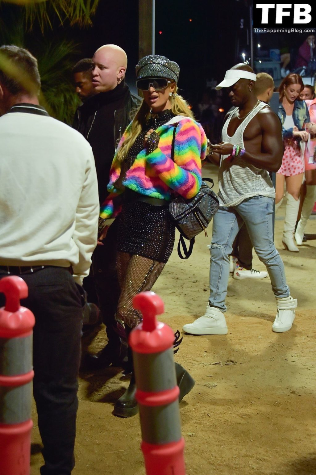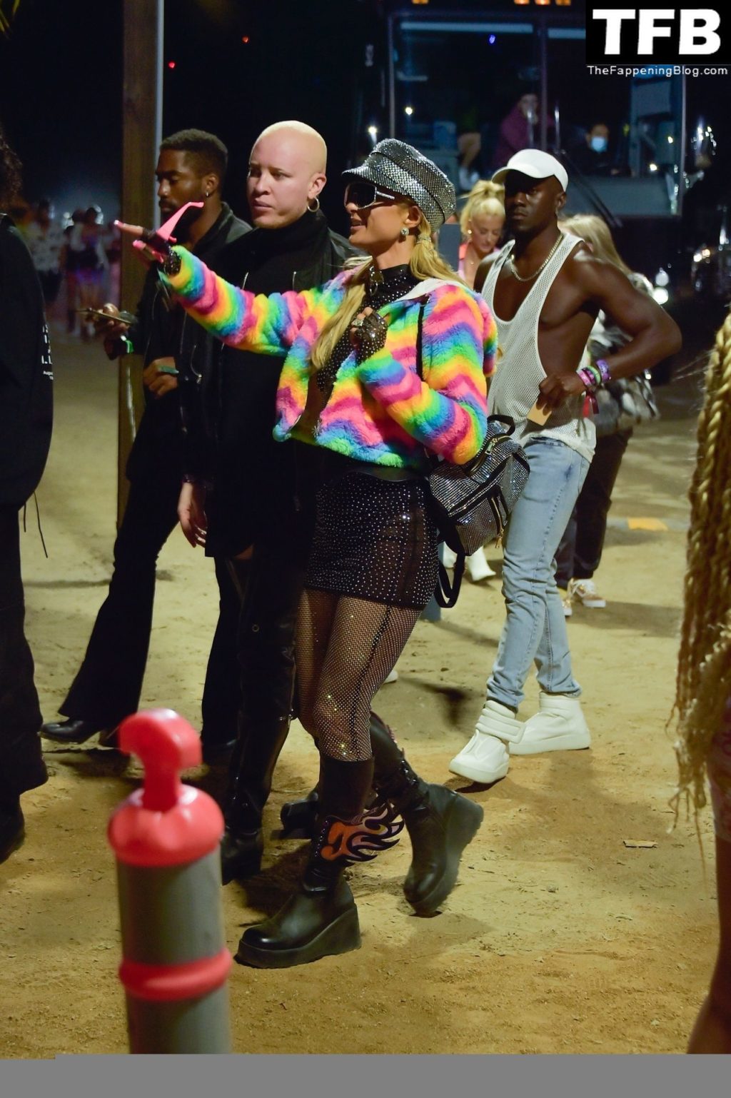 La star di The Fappening Paris Hilton e il suo entourage arrivano alla festa Neon Carnival durante il Coachella e la socialite è completamente vestita per l’occasione, sfoggiando un maglione color arcobaleno abbinato a un vestito scintillante – Indio, 17/04/2022.