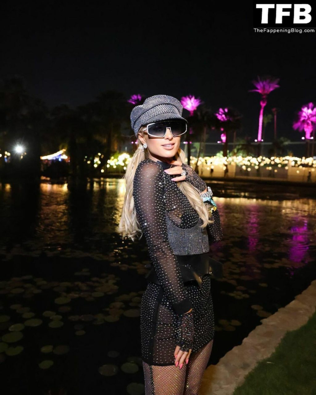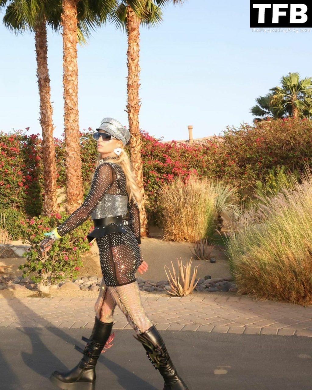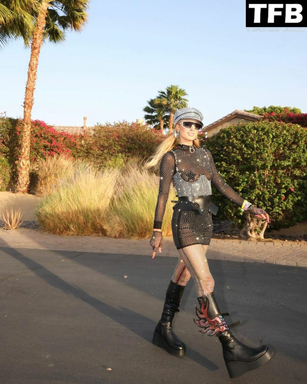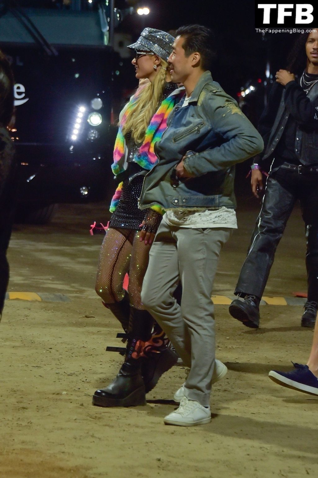 La star di The Fappening Paris Hilton e il suo entourage arrivano alla festa Neon Carnival durante il Coachella e la socialite è completamente vestita per l’occasione, sfoggiando un maglione color arcobaleno abbinato a un vestito scintillante – Indio, 17/04/2022.