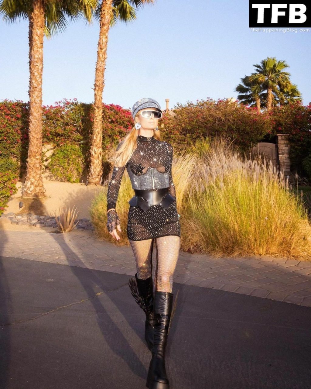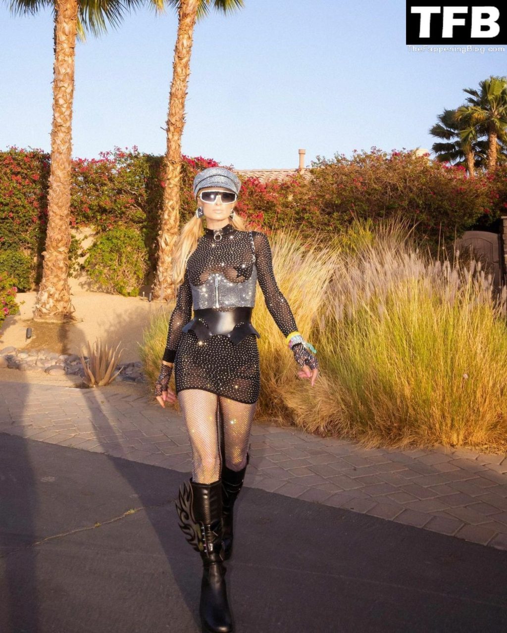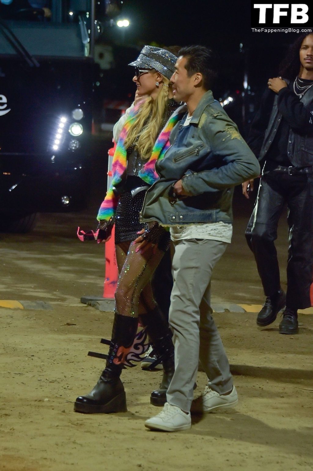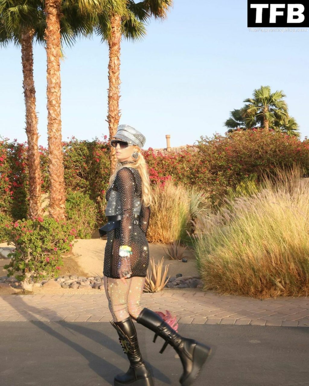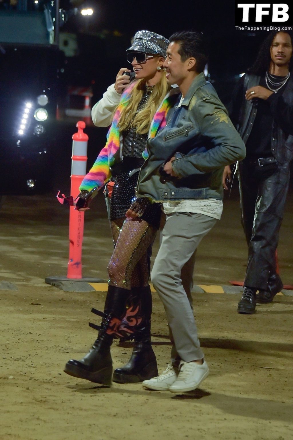 La star di The Fappening Paris Hilton e il suo entourage arrivano alla festa Neon Carnival durante il Coachella e la socialite è completamente vestita per l’occasione, sfoggiando un maglione color arcobaleno abbinato a un vestito scintillante – Indio, 17/04/2022.