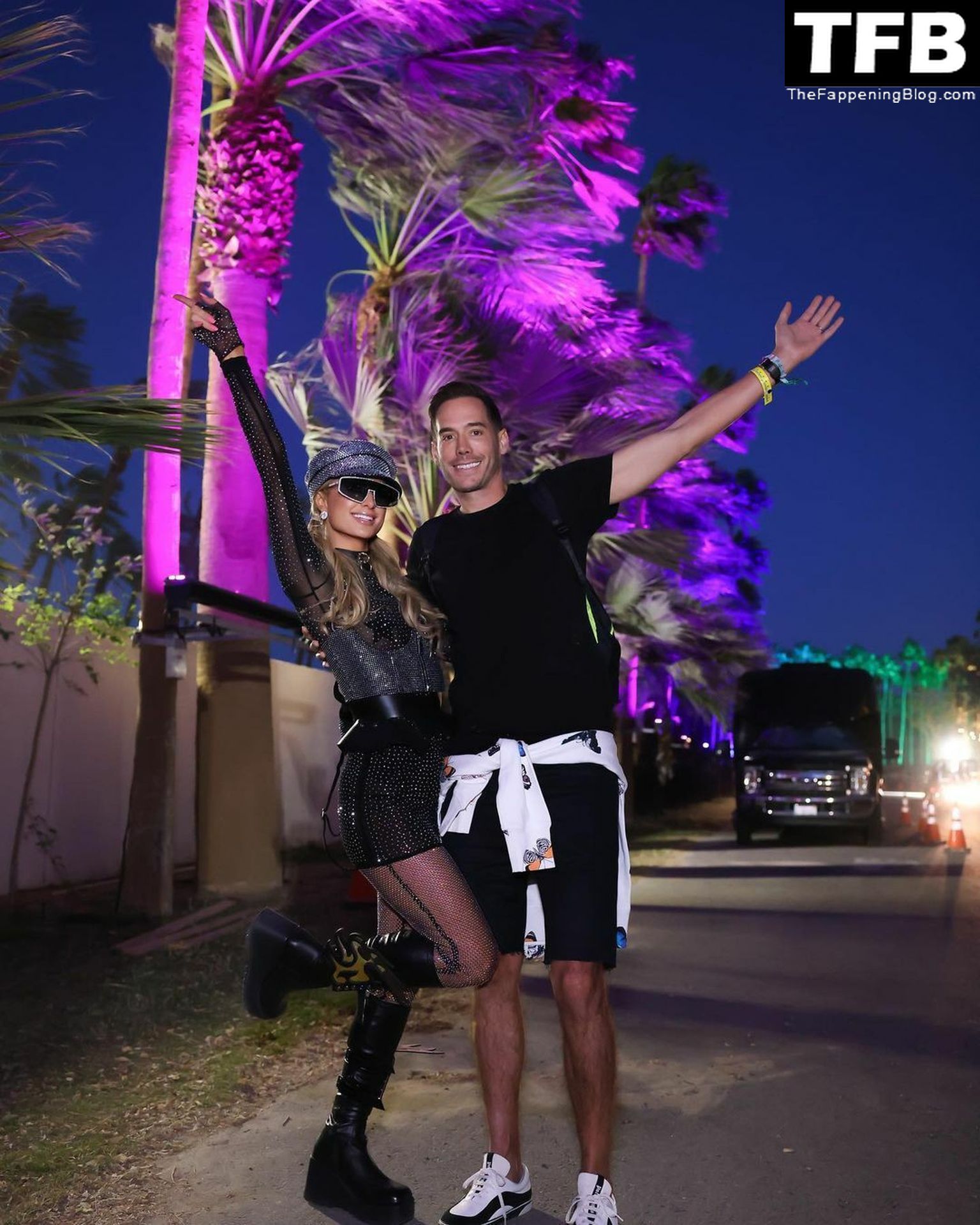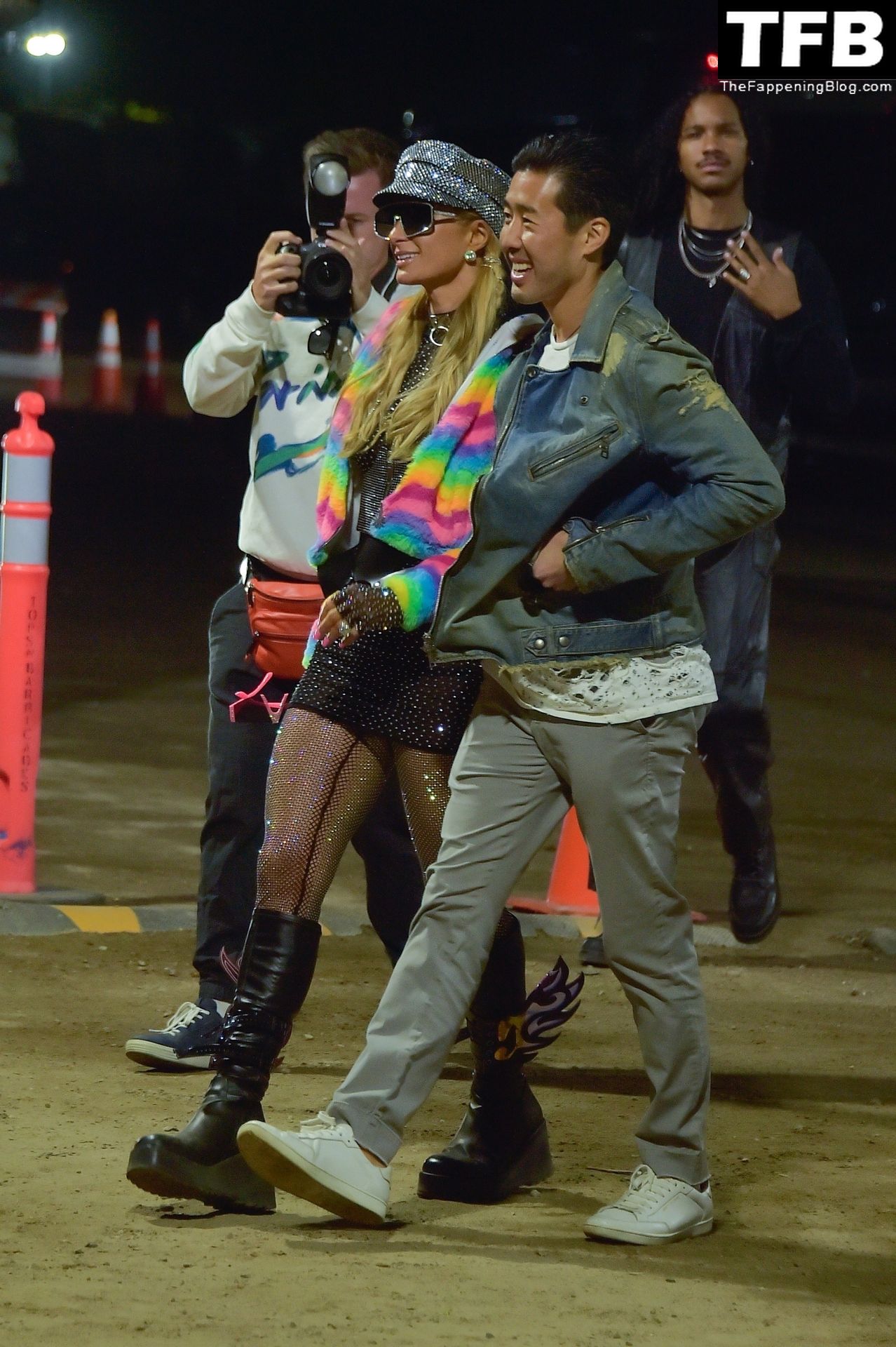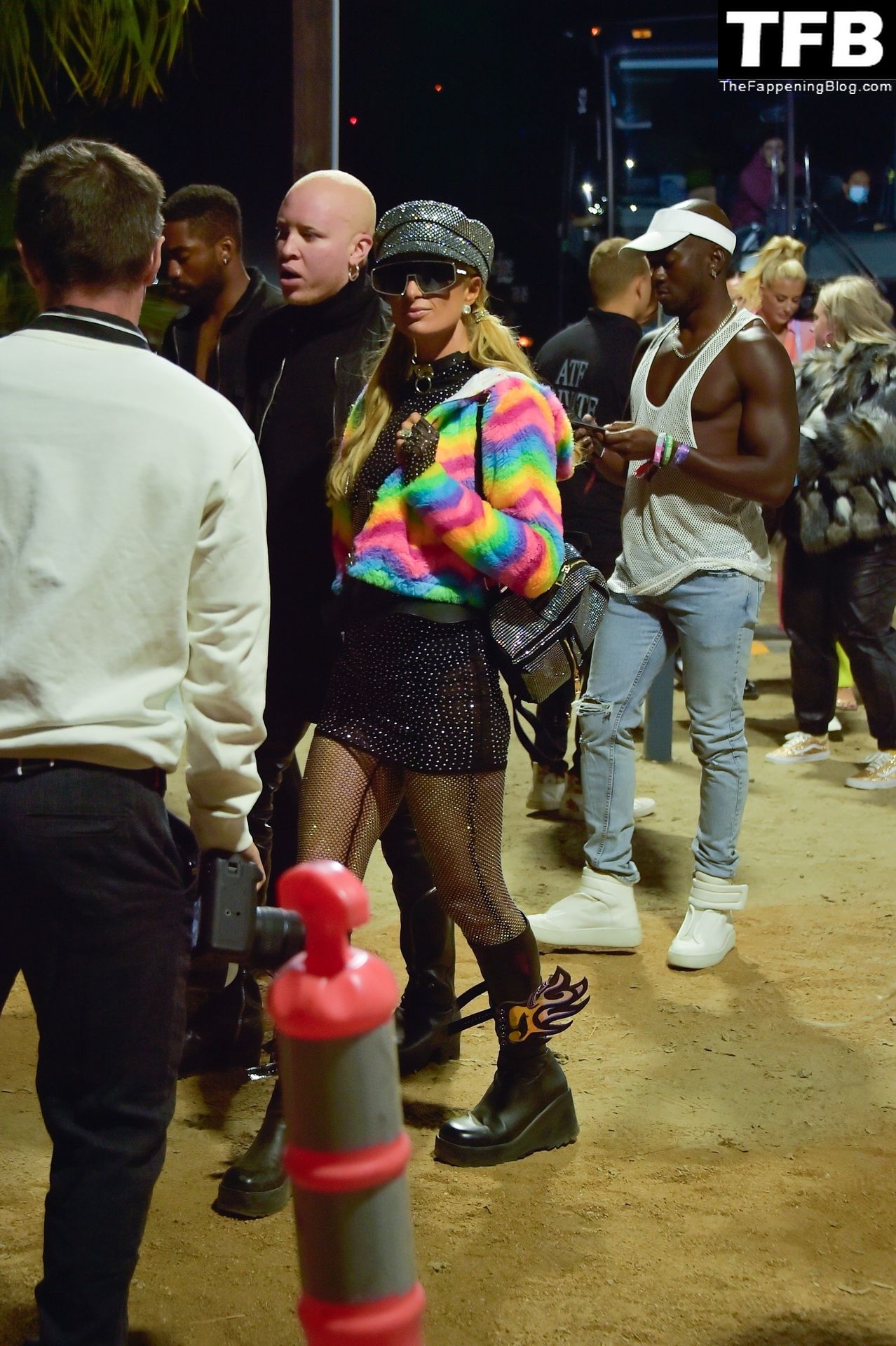 La star di The Fappening Paris Hilton e il suo entourage arrivano alla festa Neon Carnival durante il Coachella e la socialite è completamente vestita per l’occasione, sfoggiando un maglione color arcobaleno abbinato a un vestito scintillante – Indio, 17/04/2022.
