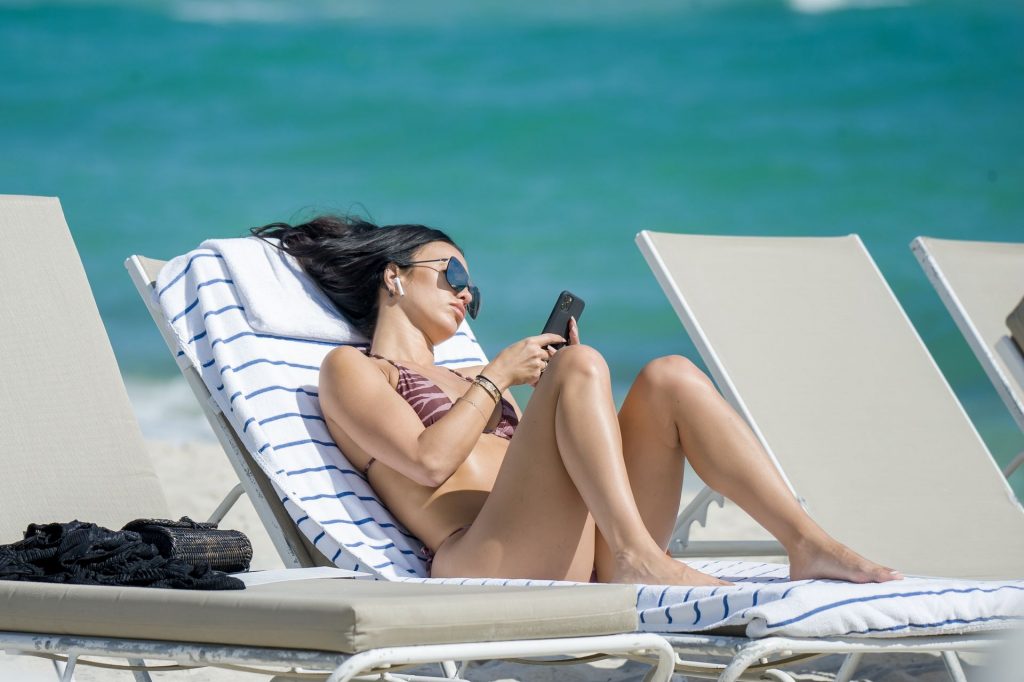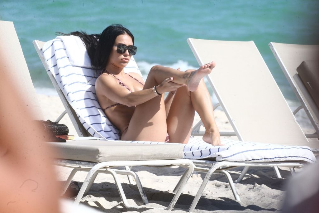 Breana (Bre) Tiesi mostra la sua figura tonica mentre si gode una giornata in spiaggia a Miami, 11/04/2019. Breana appare splendida mentre indossa un bikini minuscolo per l’uscita.