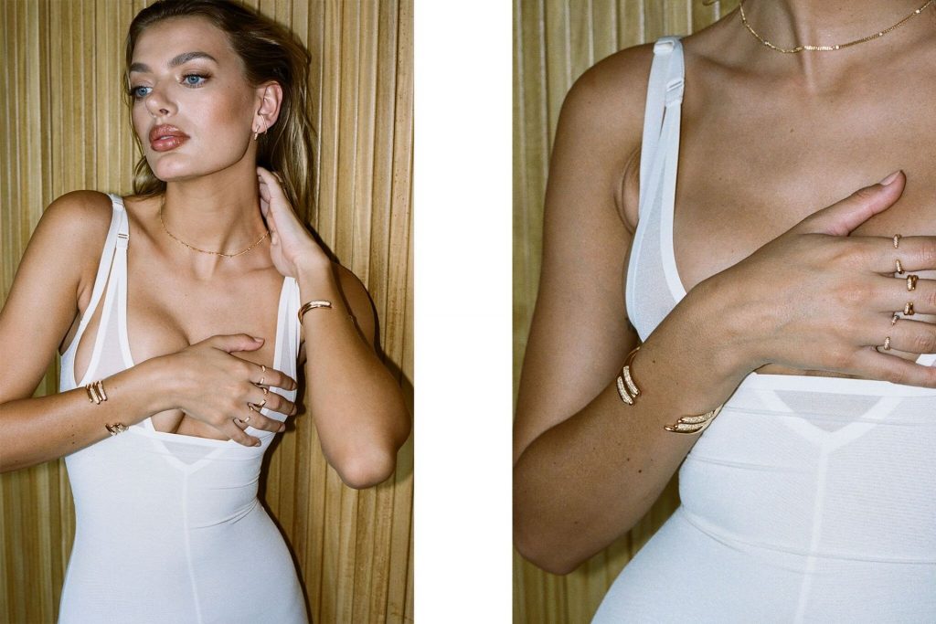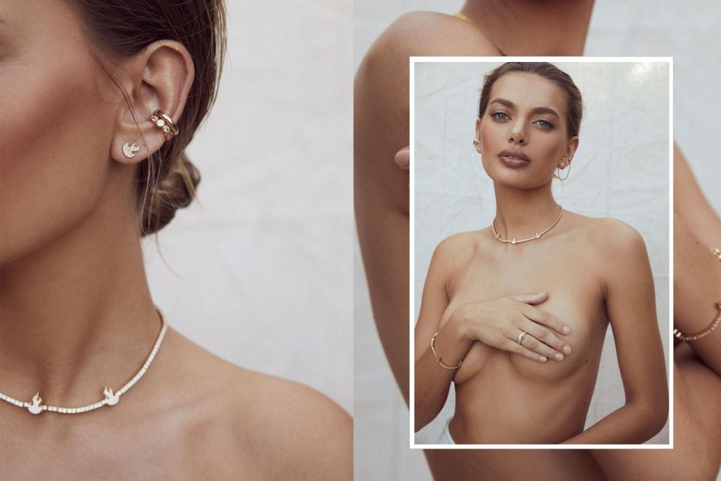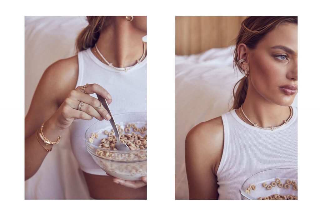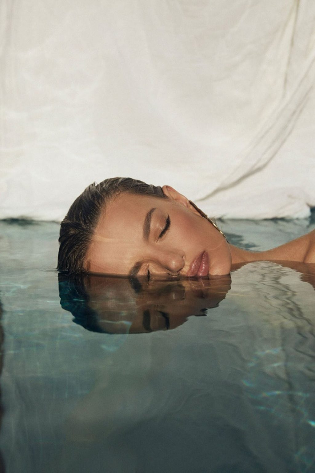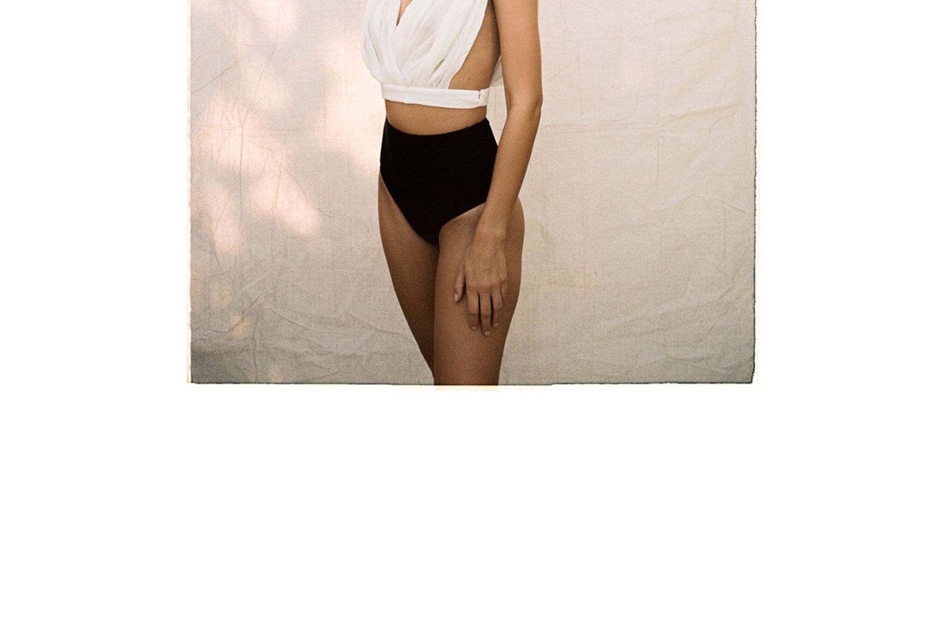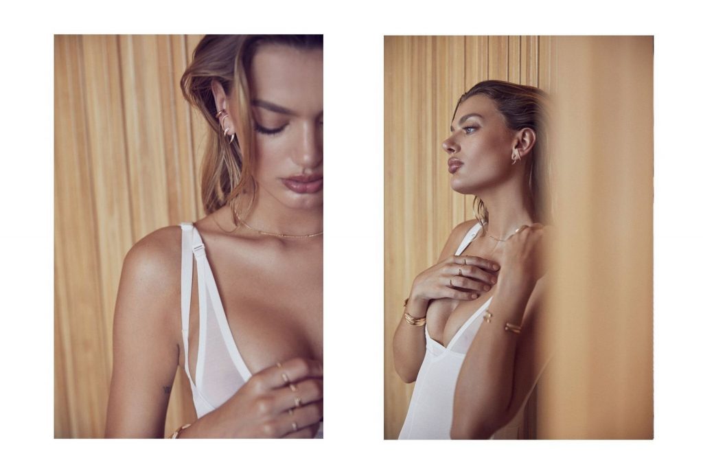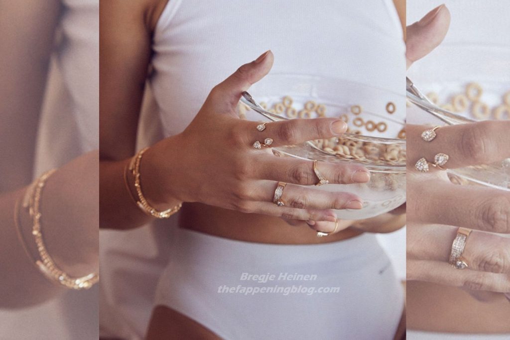 Bregje Heinen posa in un servizio fotografico di Trevor Hoehne per la collezione Lili Claspe Estate 2020. La modella sfoggia il suo corpo sexy, coprendo i suoi piccoli seni con le mani.