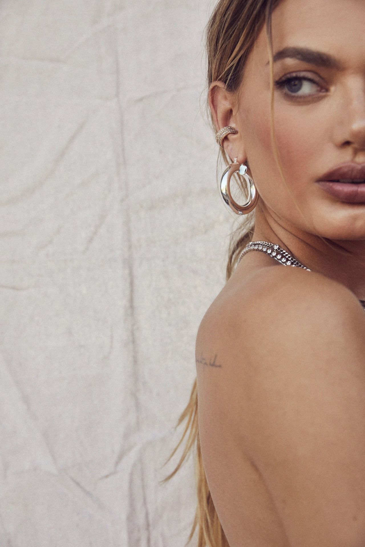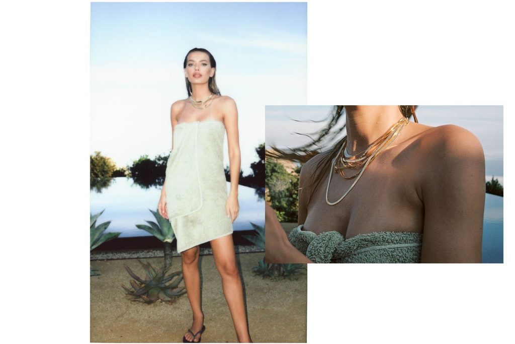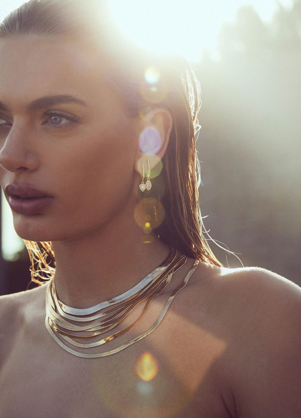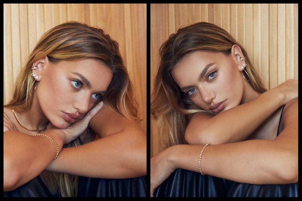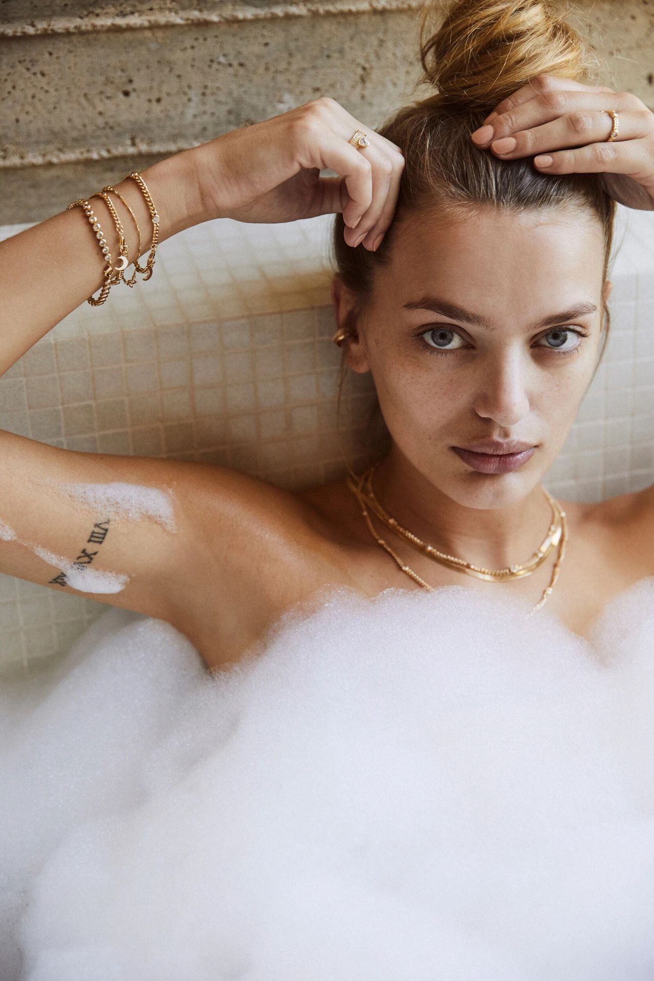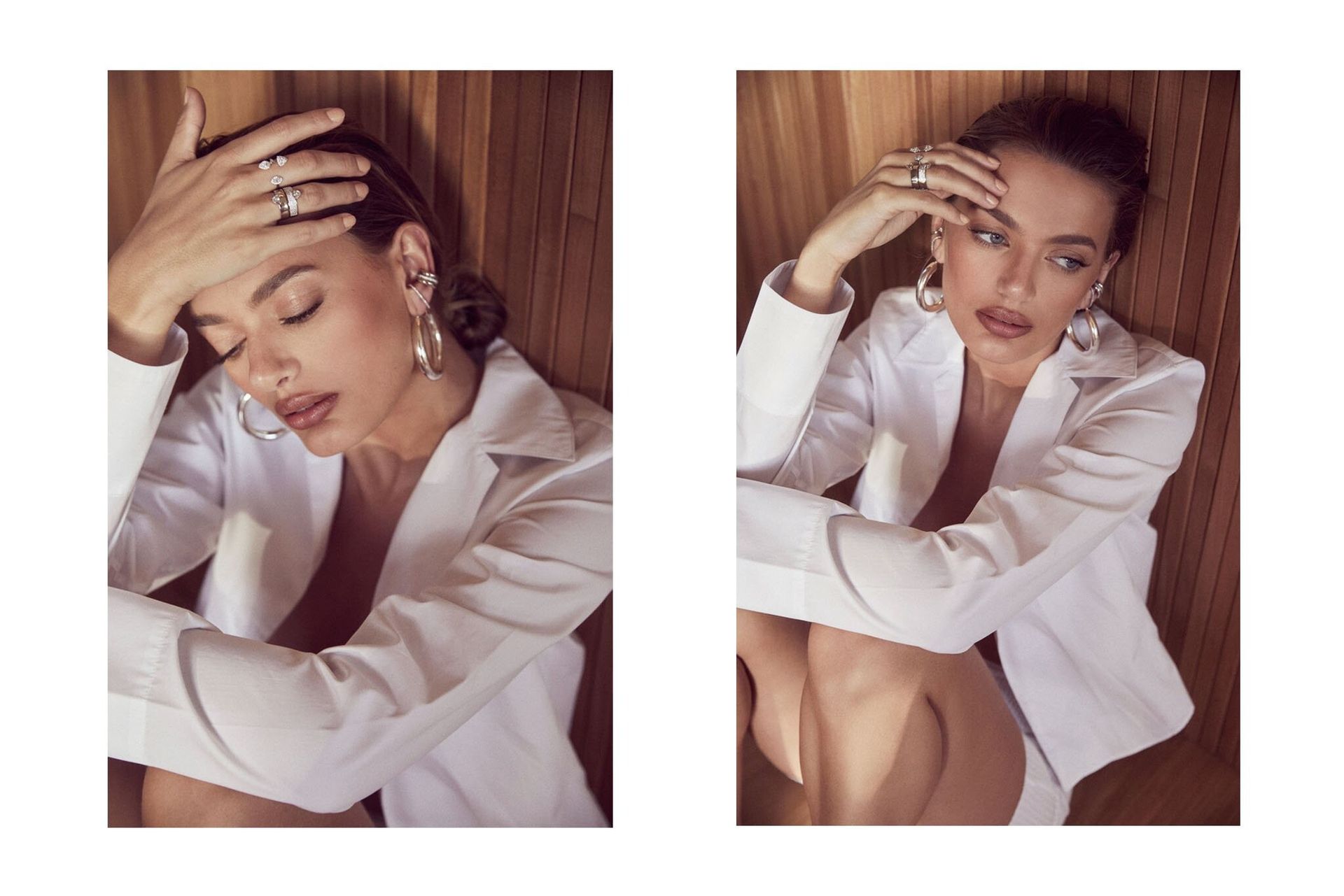 Bregje Heinen posa in un servizio fotografico di Trevor Hoehne per la collezione Lili Claspe Estate 2020. La modella sfoggia il suo corpo sexy, coprendo i suoi piccoli seni con le mani.