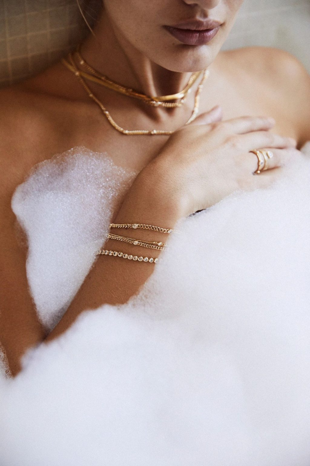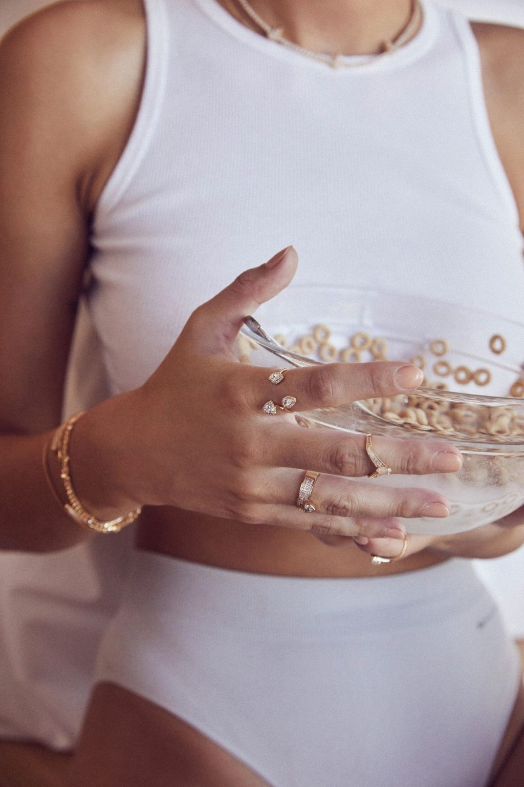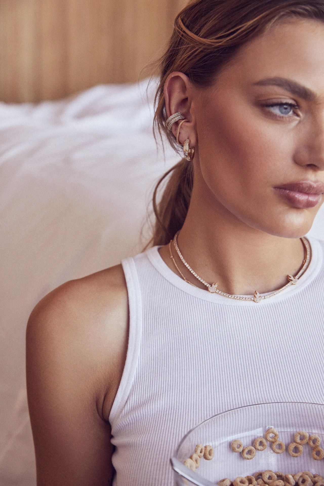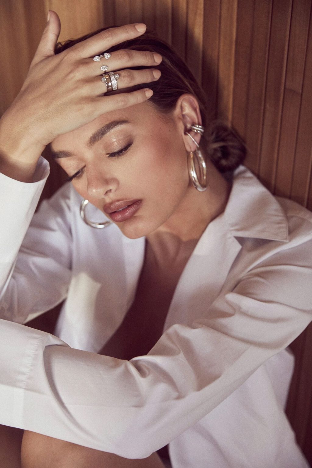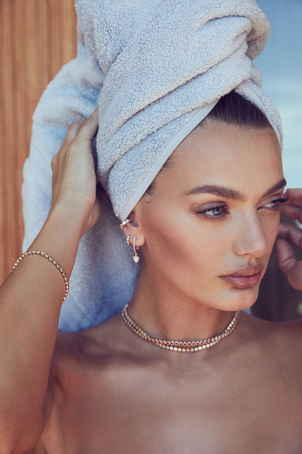 Bregje Heinen posa in un servizio fotografico di Trevor Hoehne per la collezione Lili Claspe Estate 2020. La modella sfoggia il suo corpo sexy, coprendo i suoi piccoli seni con le mani.