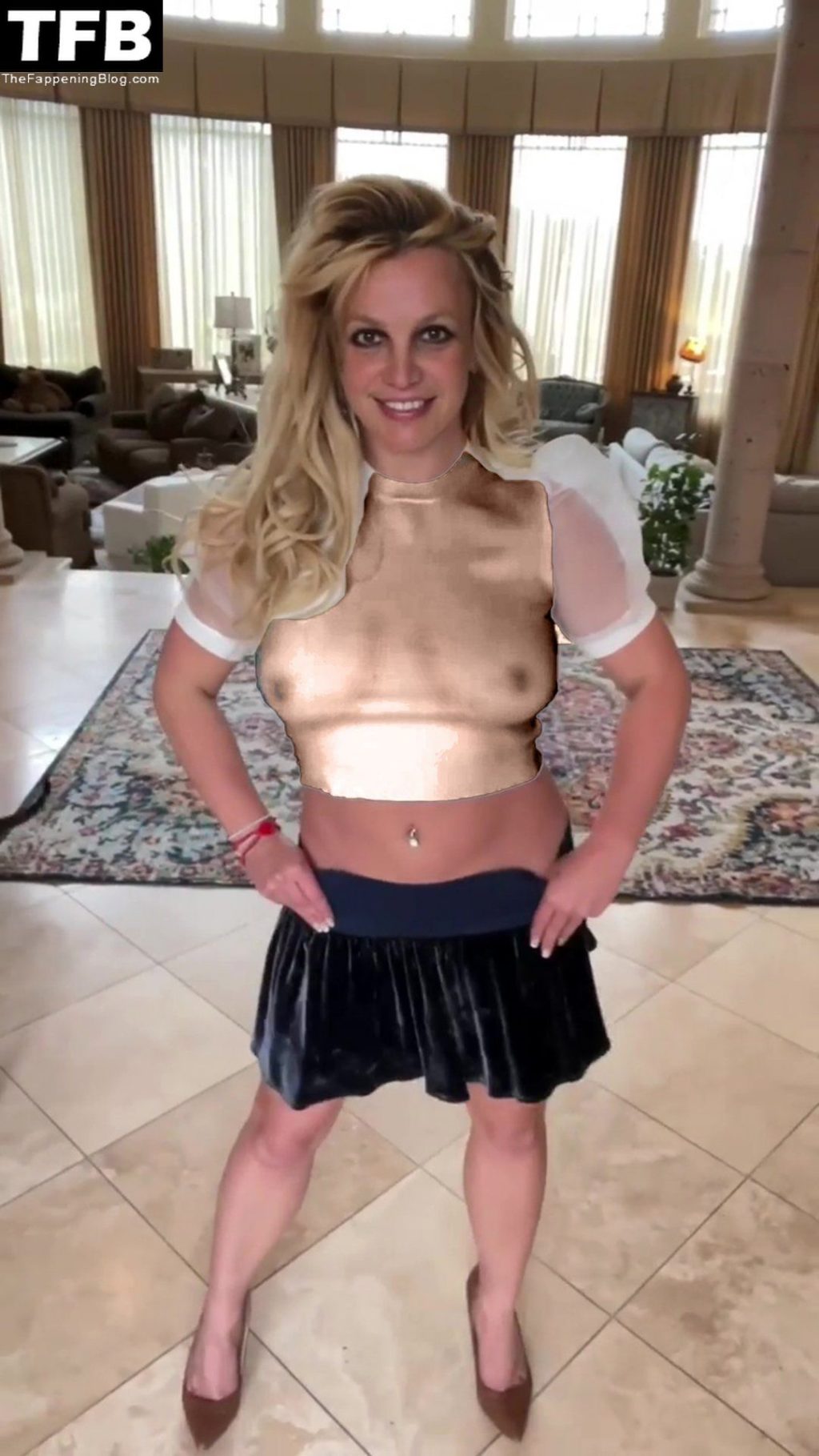 Qualcuno può rispondere a questa semplice domanda? C'è questa compulsione costante di scattare foto più o meno uguali. È il suo portico, il suo giardino o la sua casa. È lei, di solito senza maglietta, che si copre il petto con le mani, o che fa qualche gesto civettuolo come quello sopra. Ma non c'è alcuna creatività, le foto sono scattate con l'abilità di una nonna con una macchina fotografica economica, e Britney non sta davvero posando, sta solo lì a guardare stupida con un sorriso forzato.