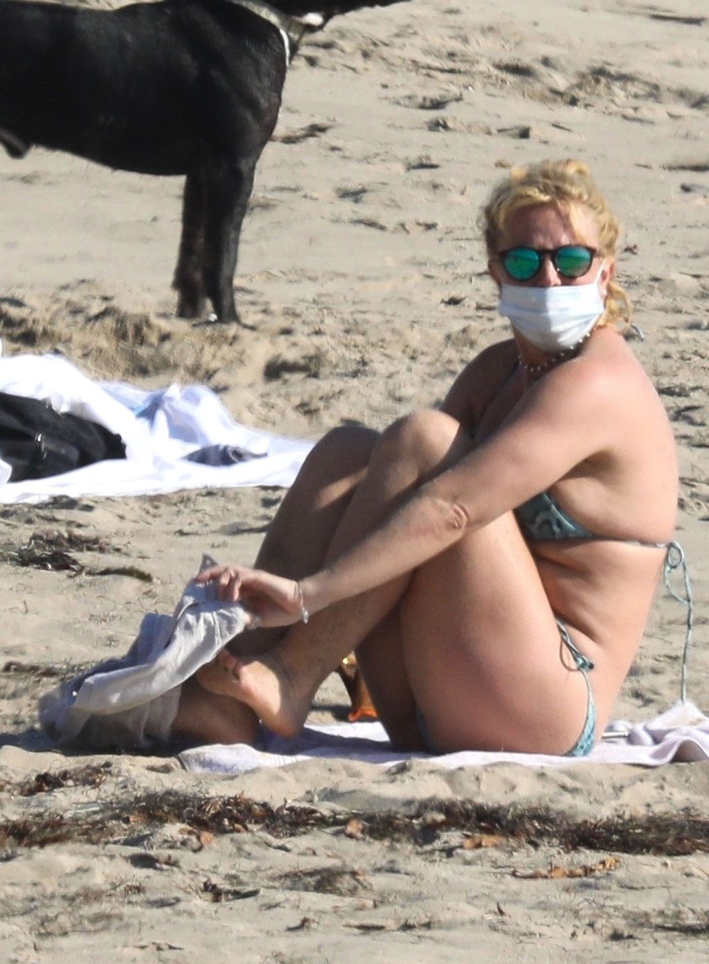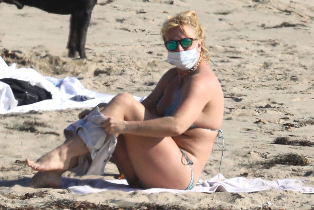 Britney Spears mostra il suo corpo in bikini mentre prende il sole sulla spiaggia di Malibu (84 foto)