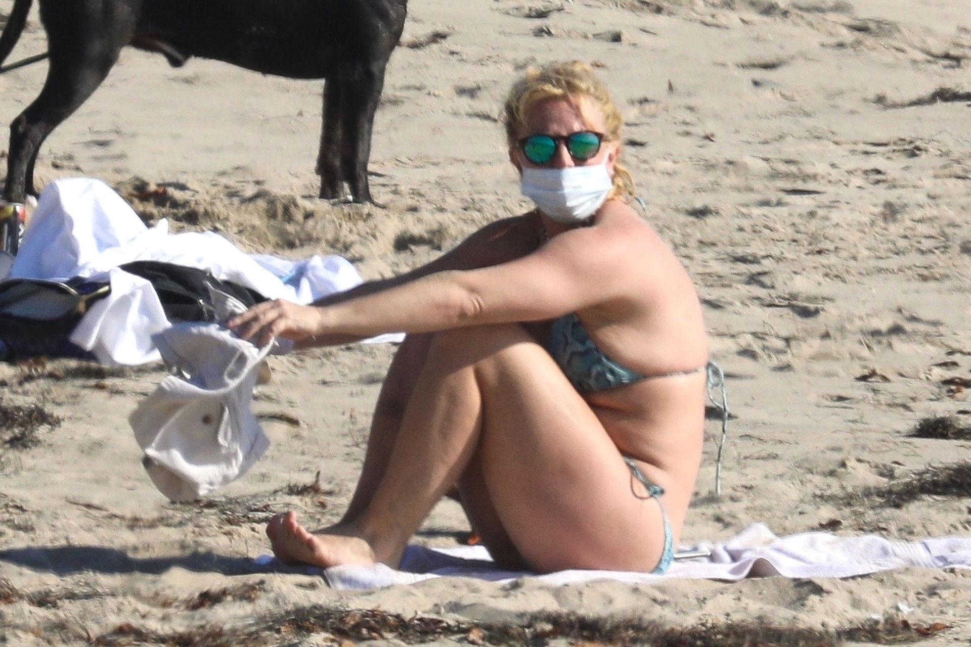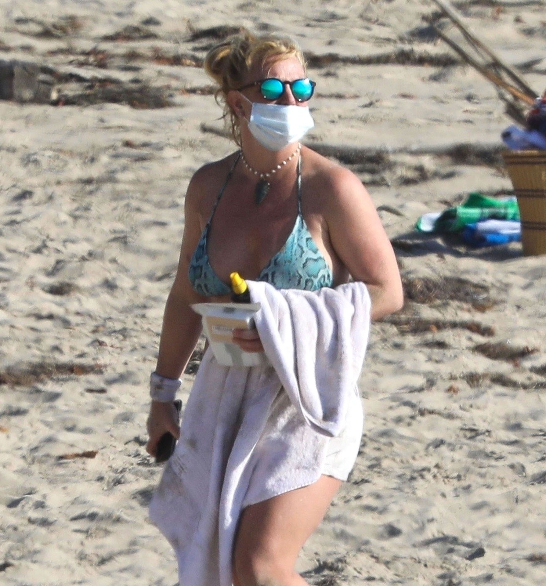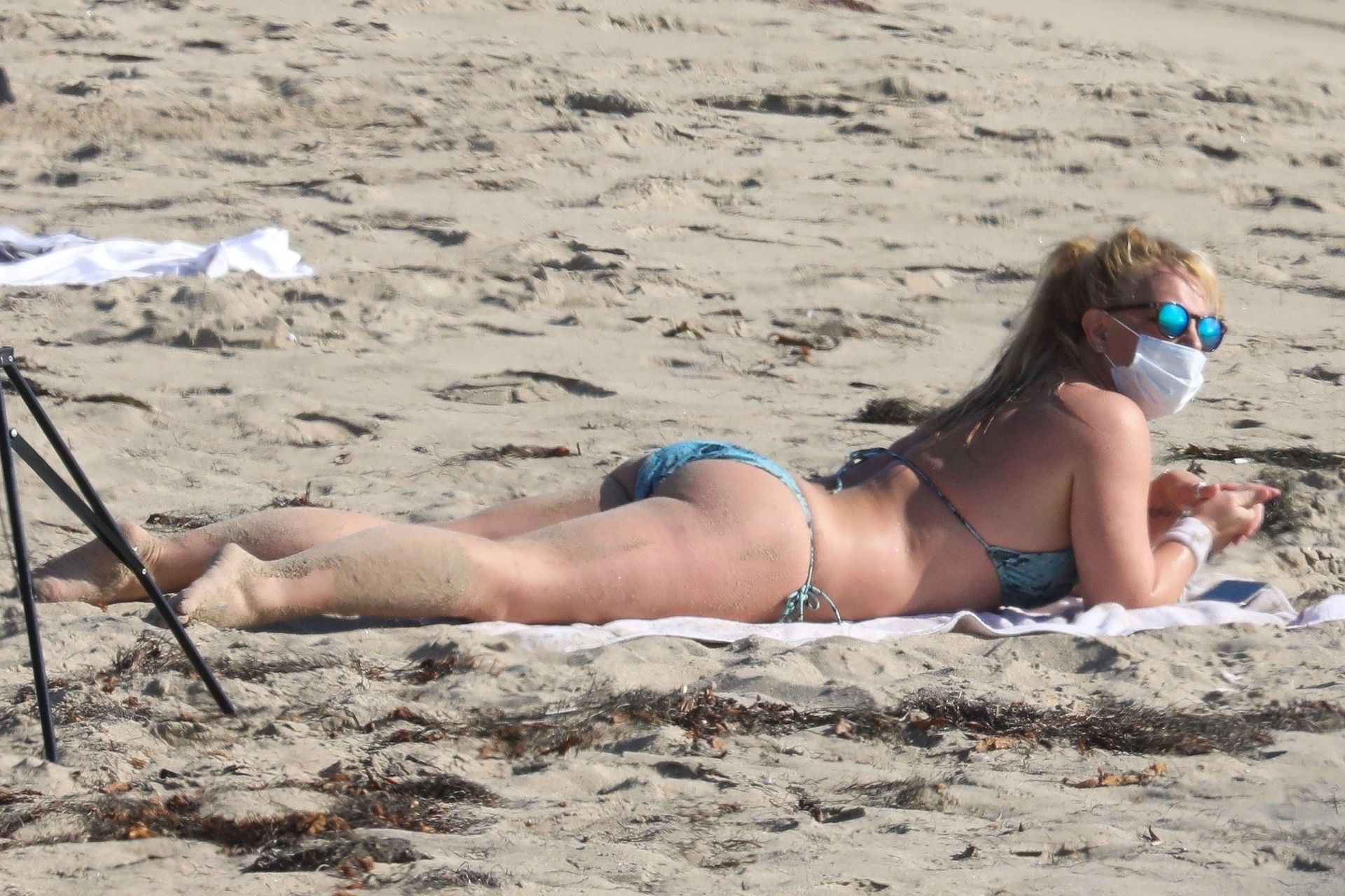 Britney Spears mostra il suo corpo in bikini mentre prende il sole sulla spiaggia di Malibu (84 foto)