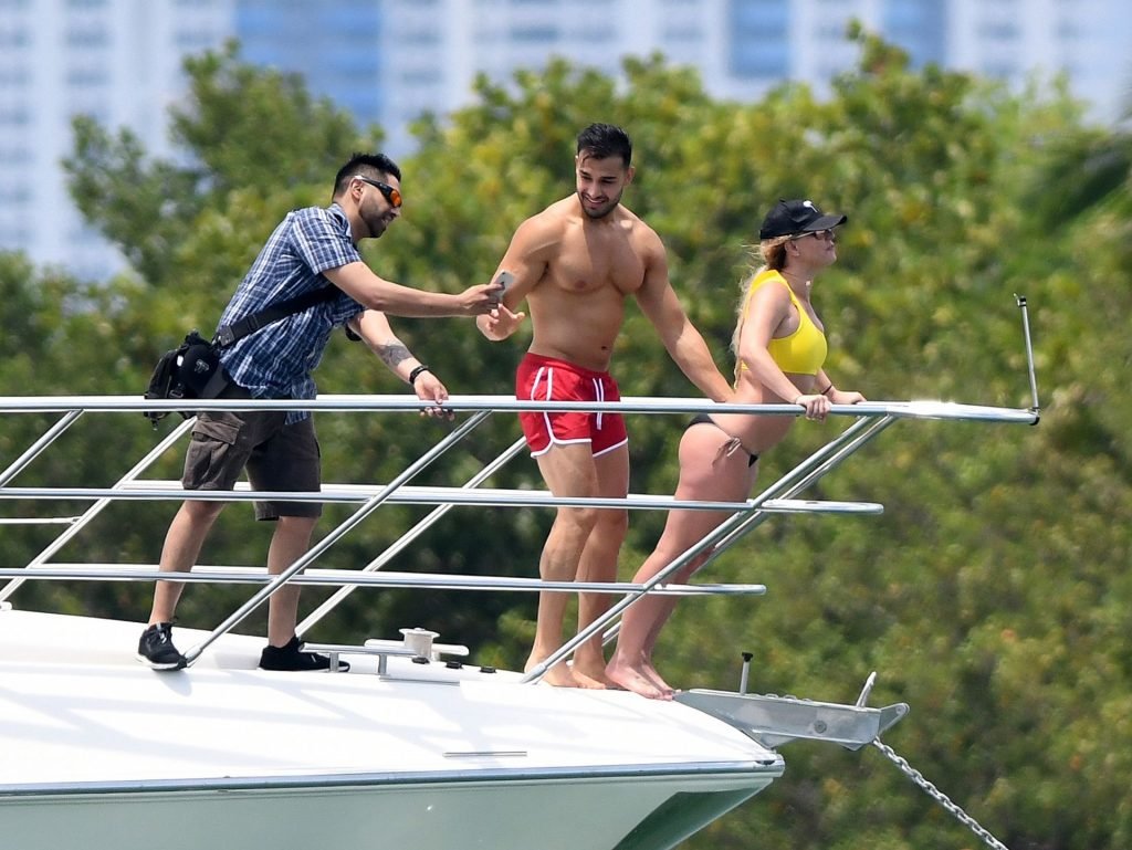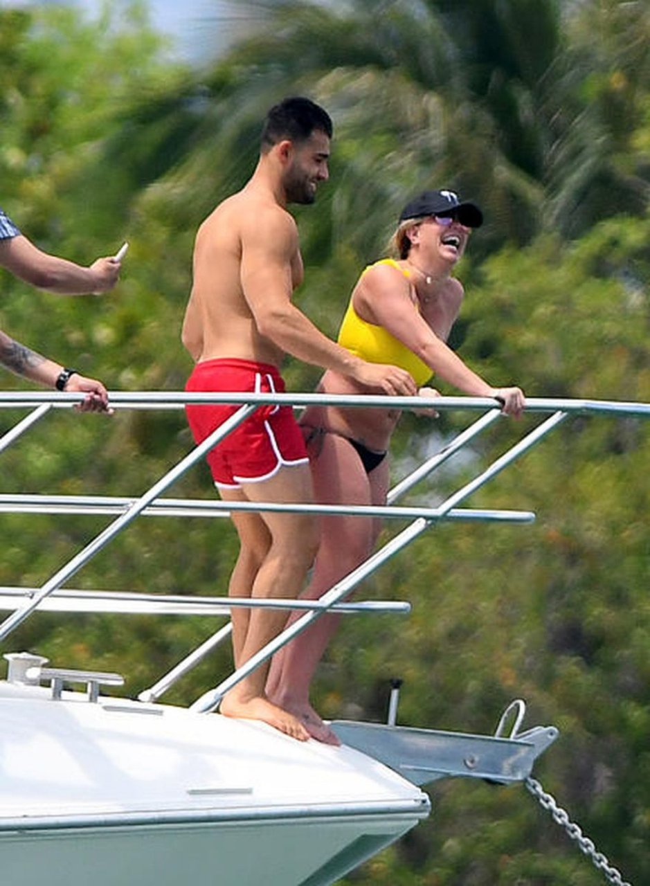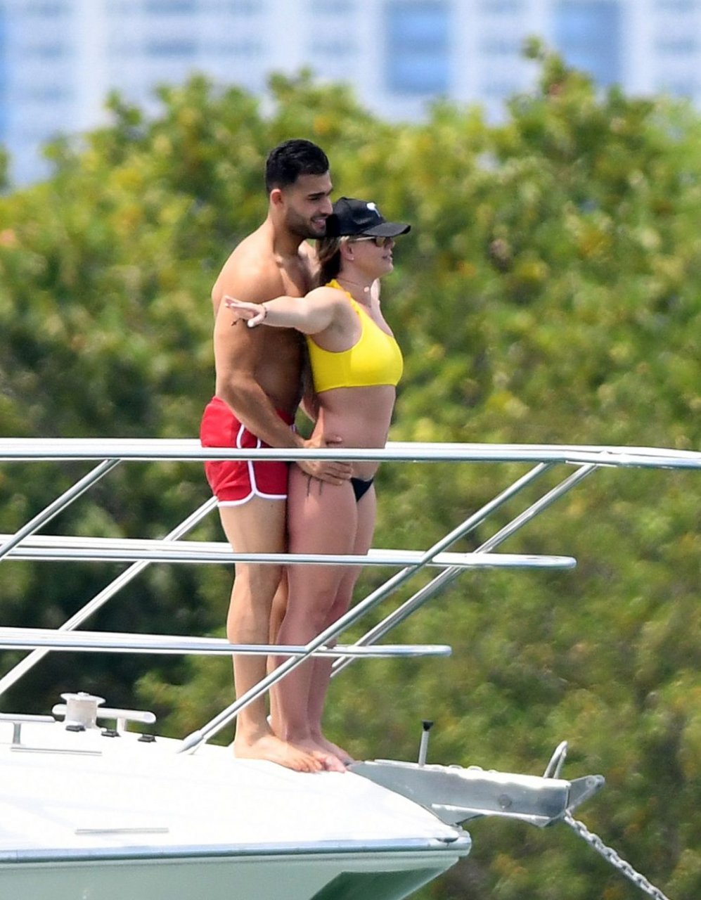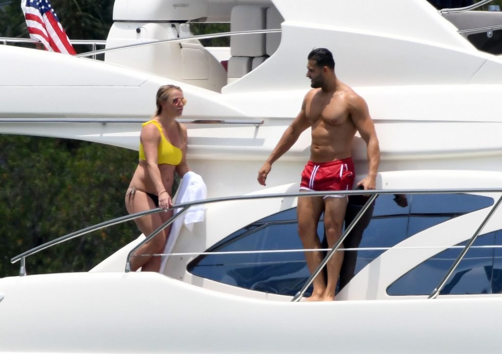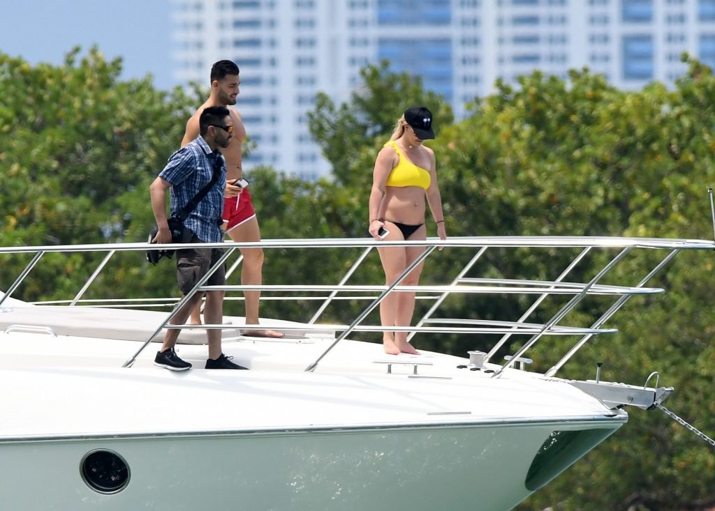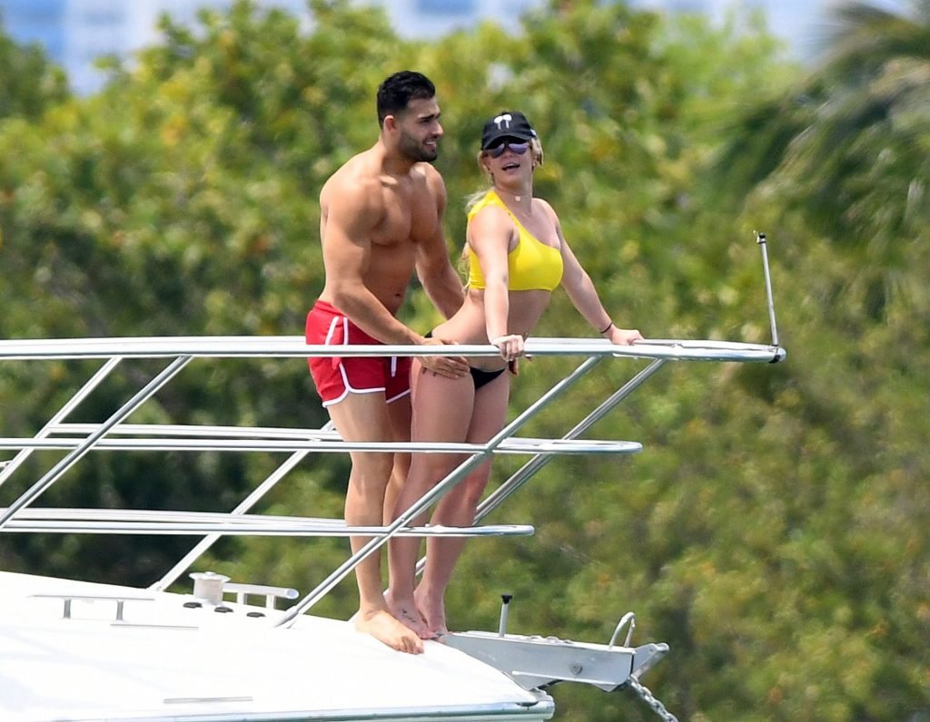 Britney Spears indossa un bikini giallo mentre trascorre un pomeriggio ricco di azione su uno yacht con il fidanzato Sam Asghari a Miami, 08/06/2019.