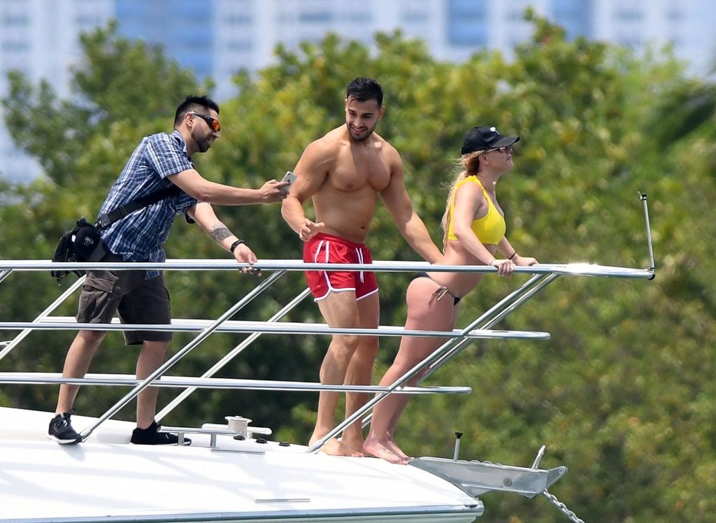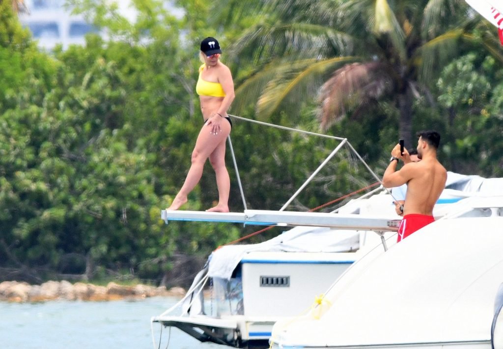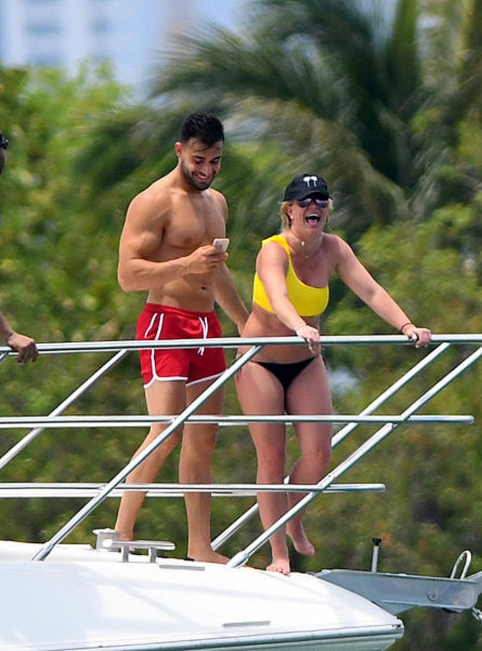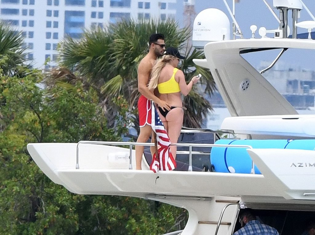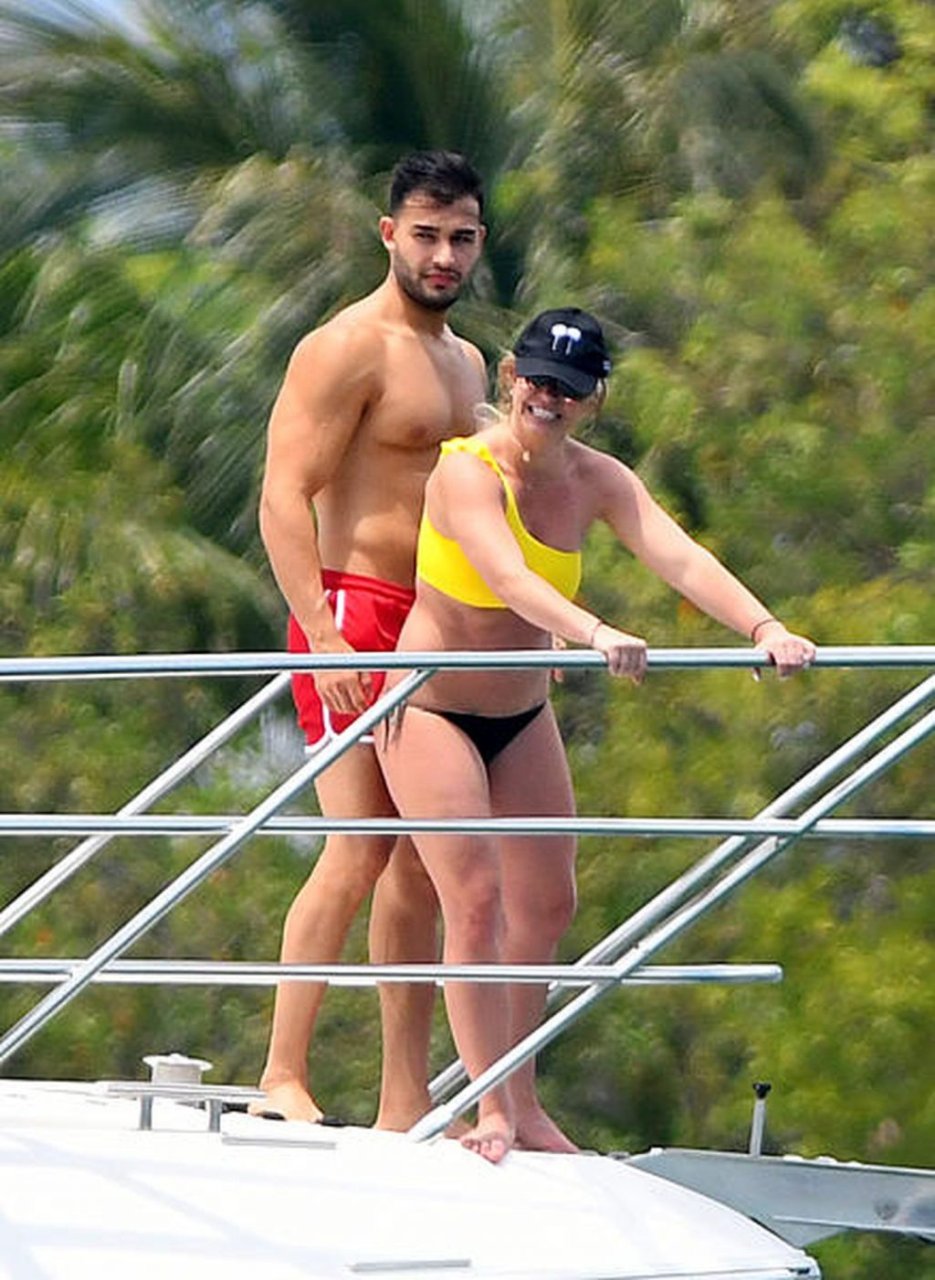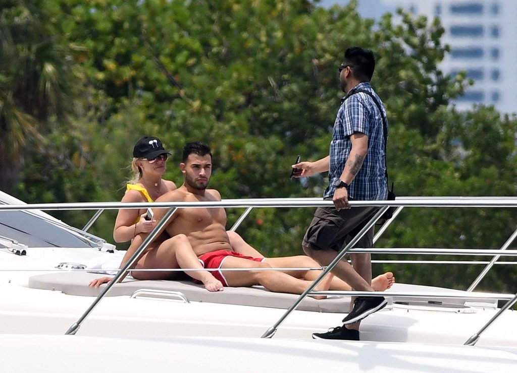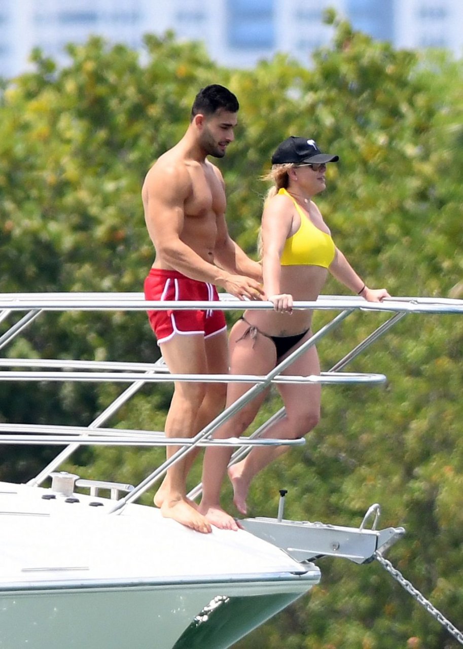 Britney Spears indossa un bikini giallo mentre trascorre un pomeriggio ricco di azione su uno yacht con il fidanzato Sam Asghari a Miami, 08/06/2019.