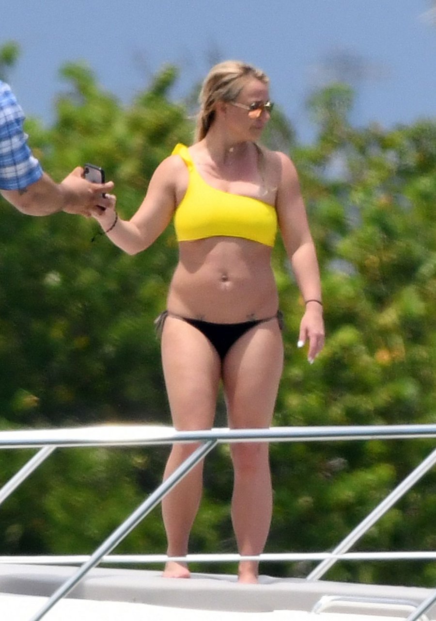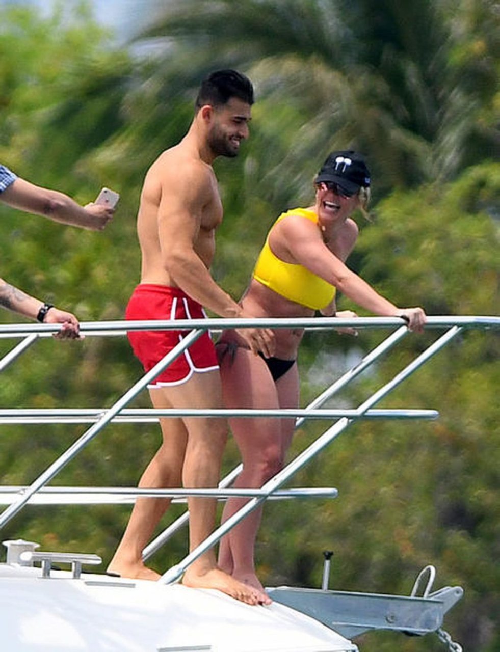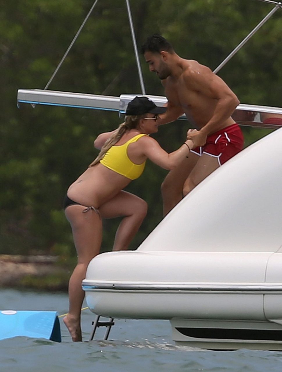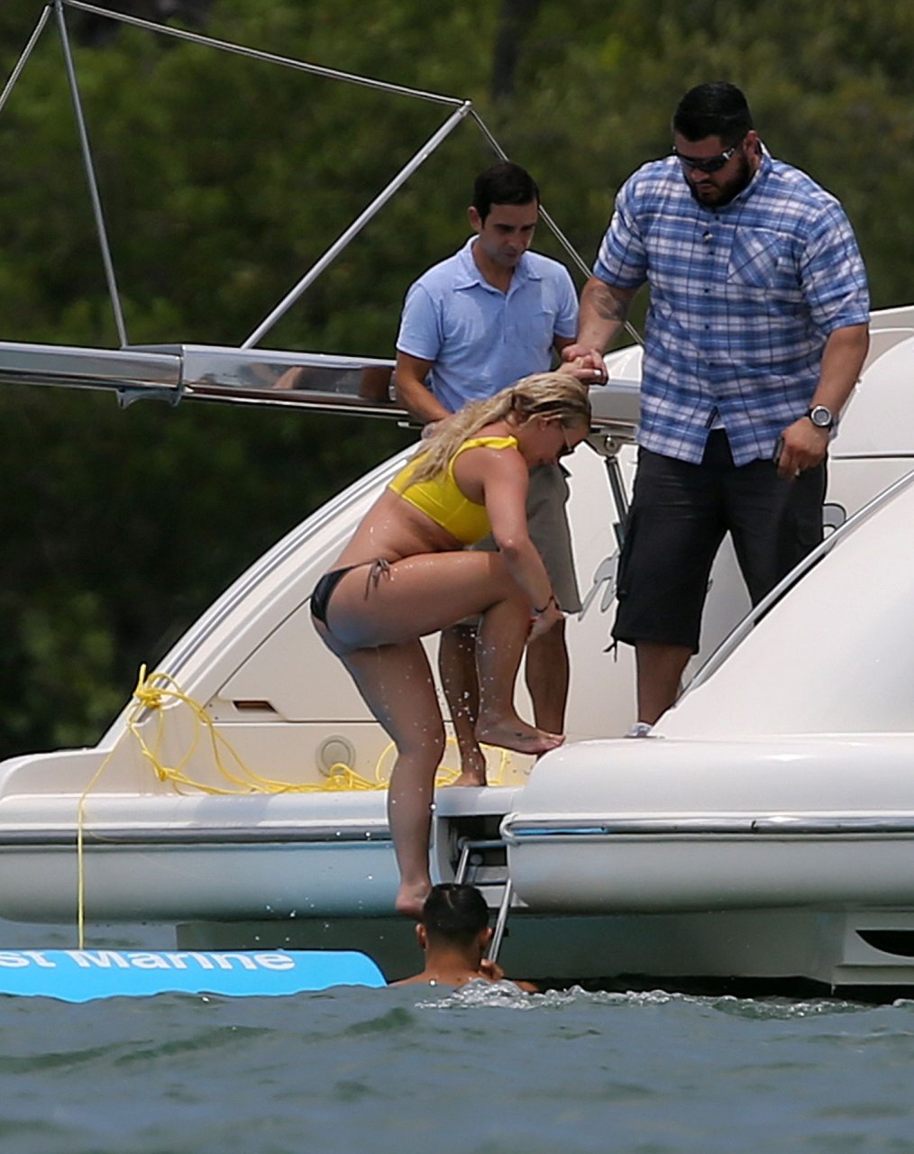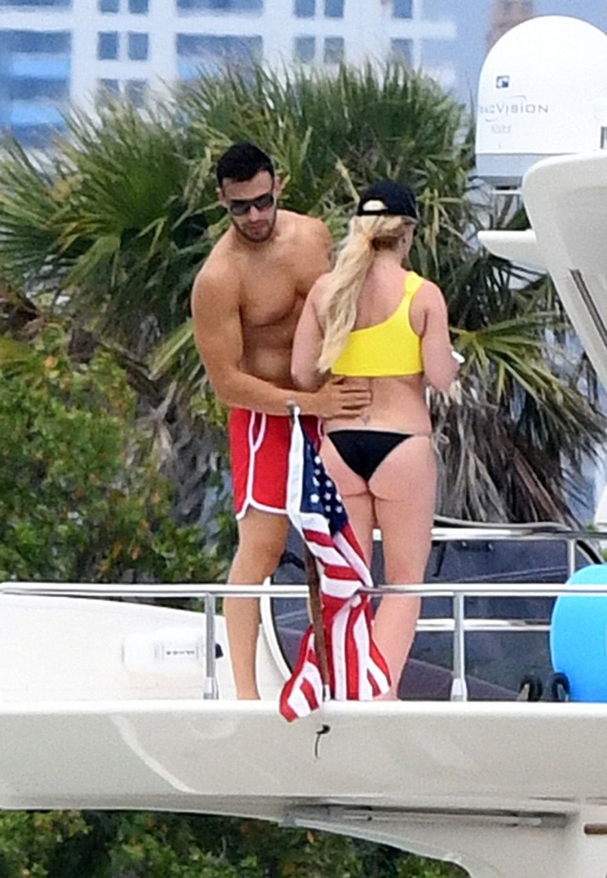 Britney Spears indossa un bikini giallo mentre trascorre un pomeriggio ricco di azione su uno yacht con il fidanzato Sam Asghari a Miami, 08/06/2019.