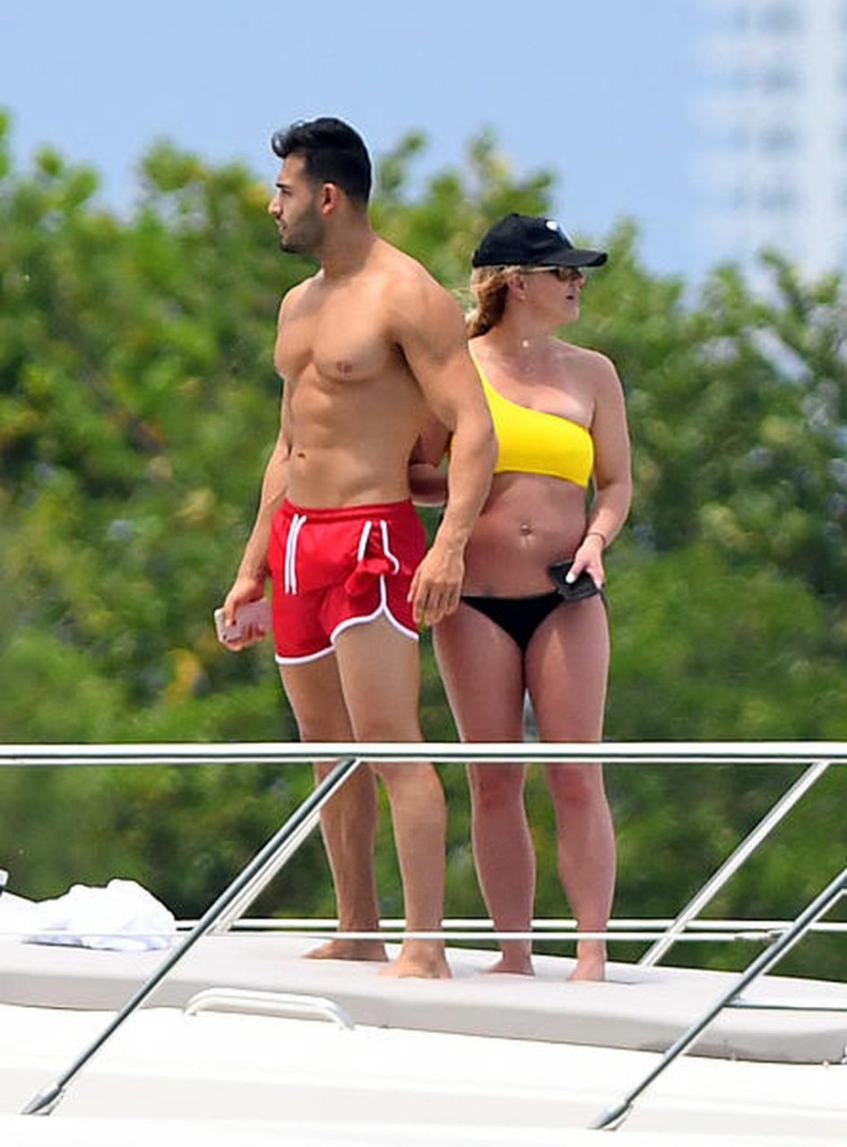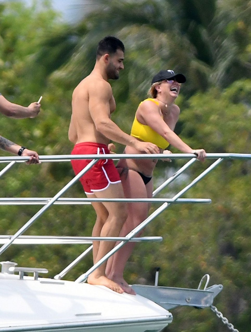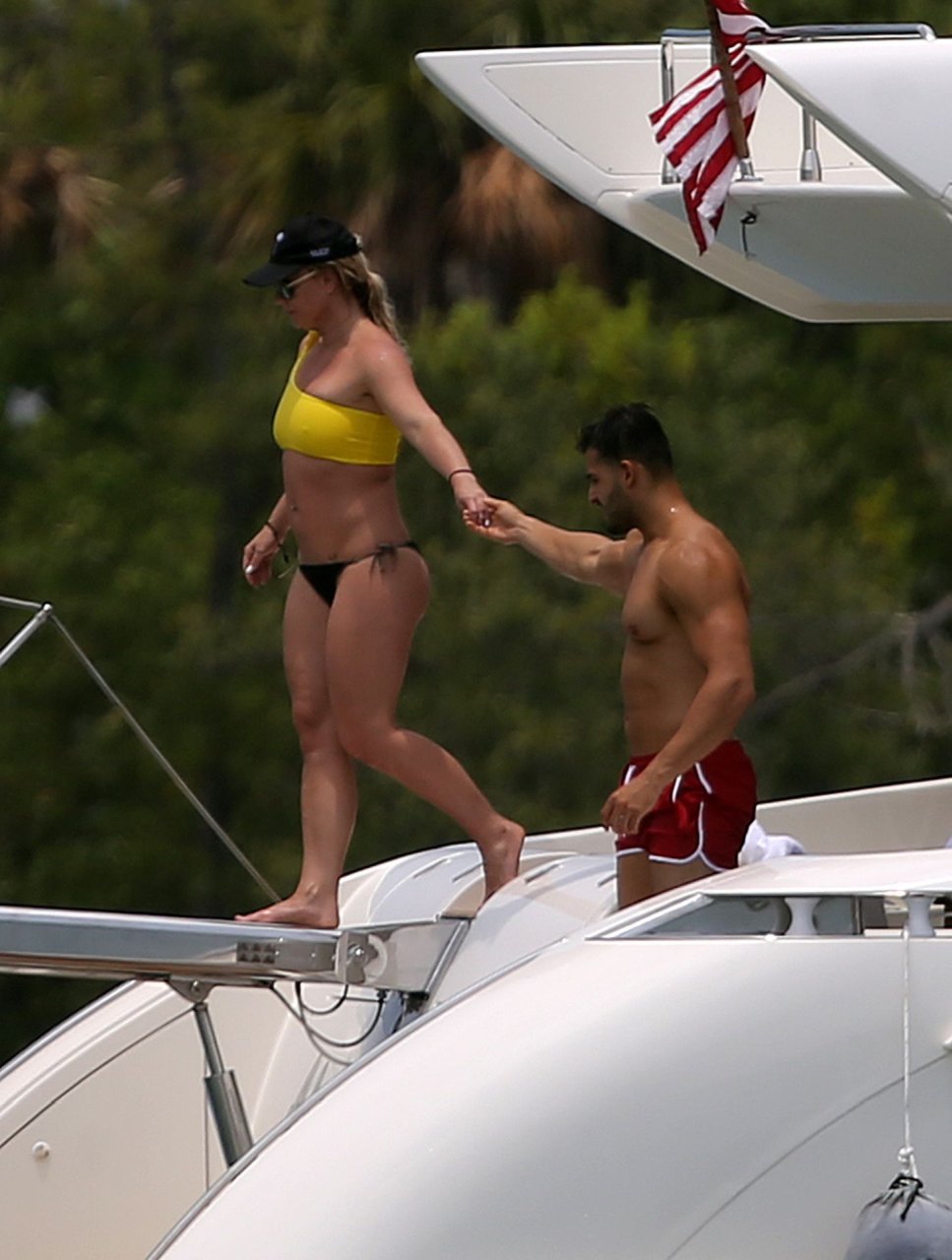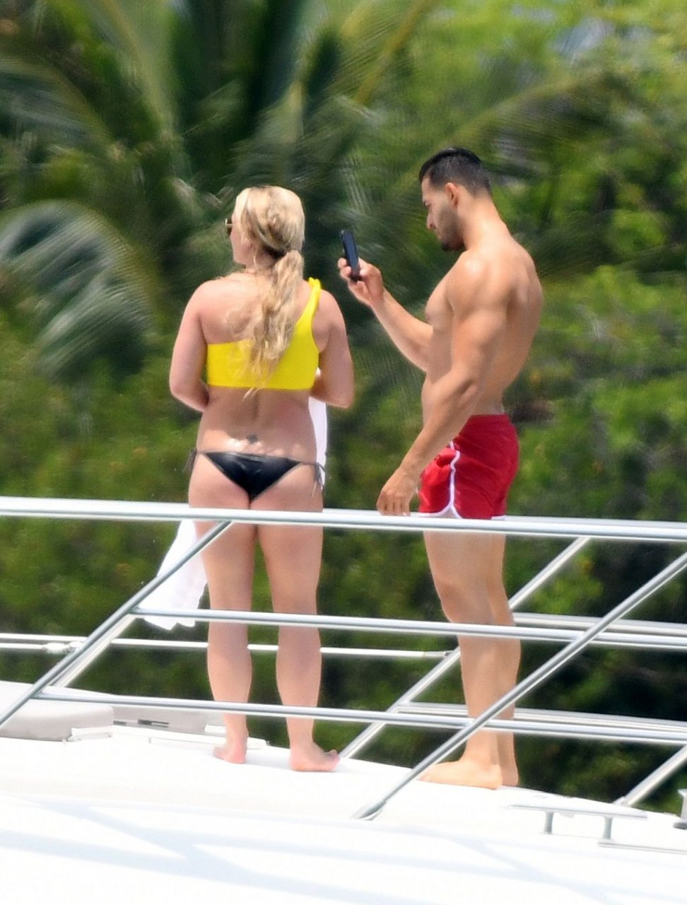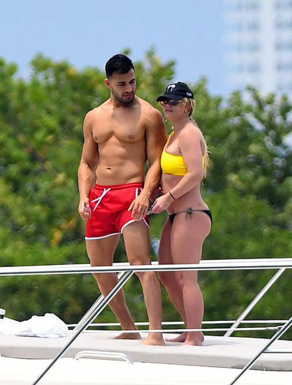 Britney Spears indossa un bikini giallo mentre trascorre un pomeriggio ricco di azione su uno yacht con il fidanzato Sam Asghari a Miami, 08/06/2019.