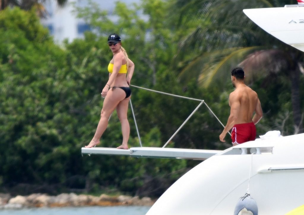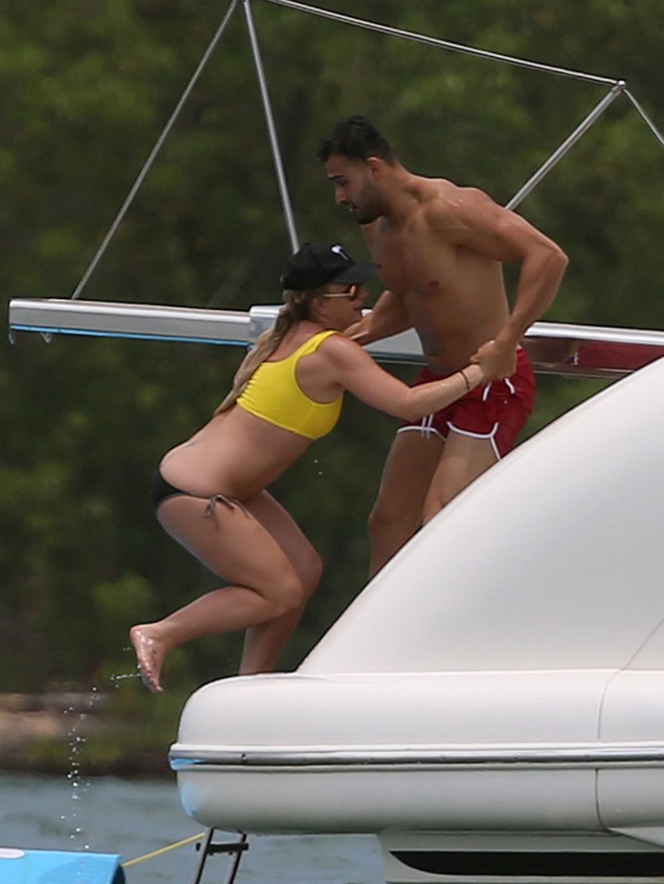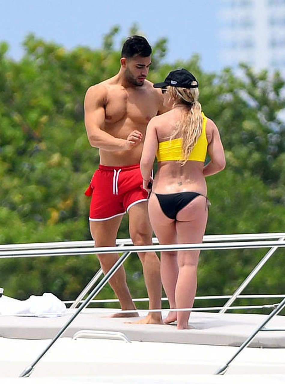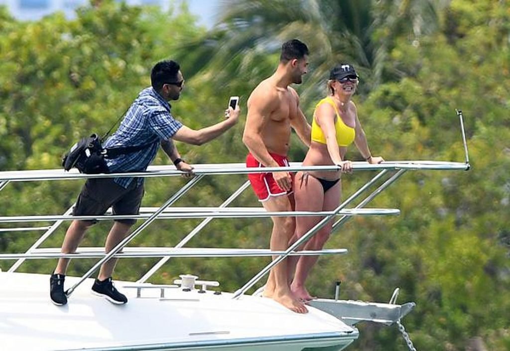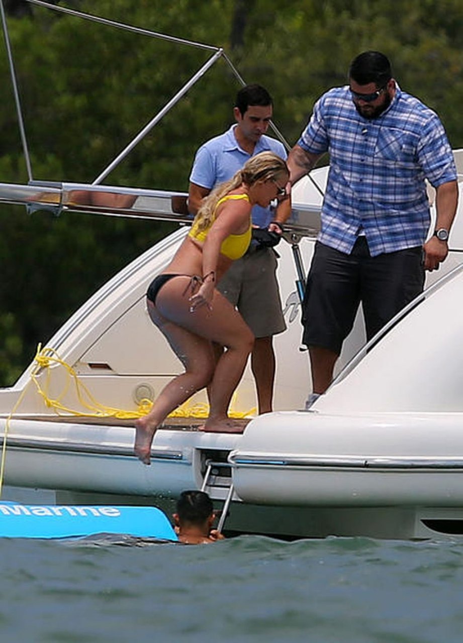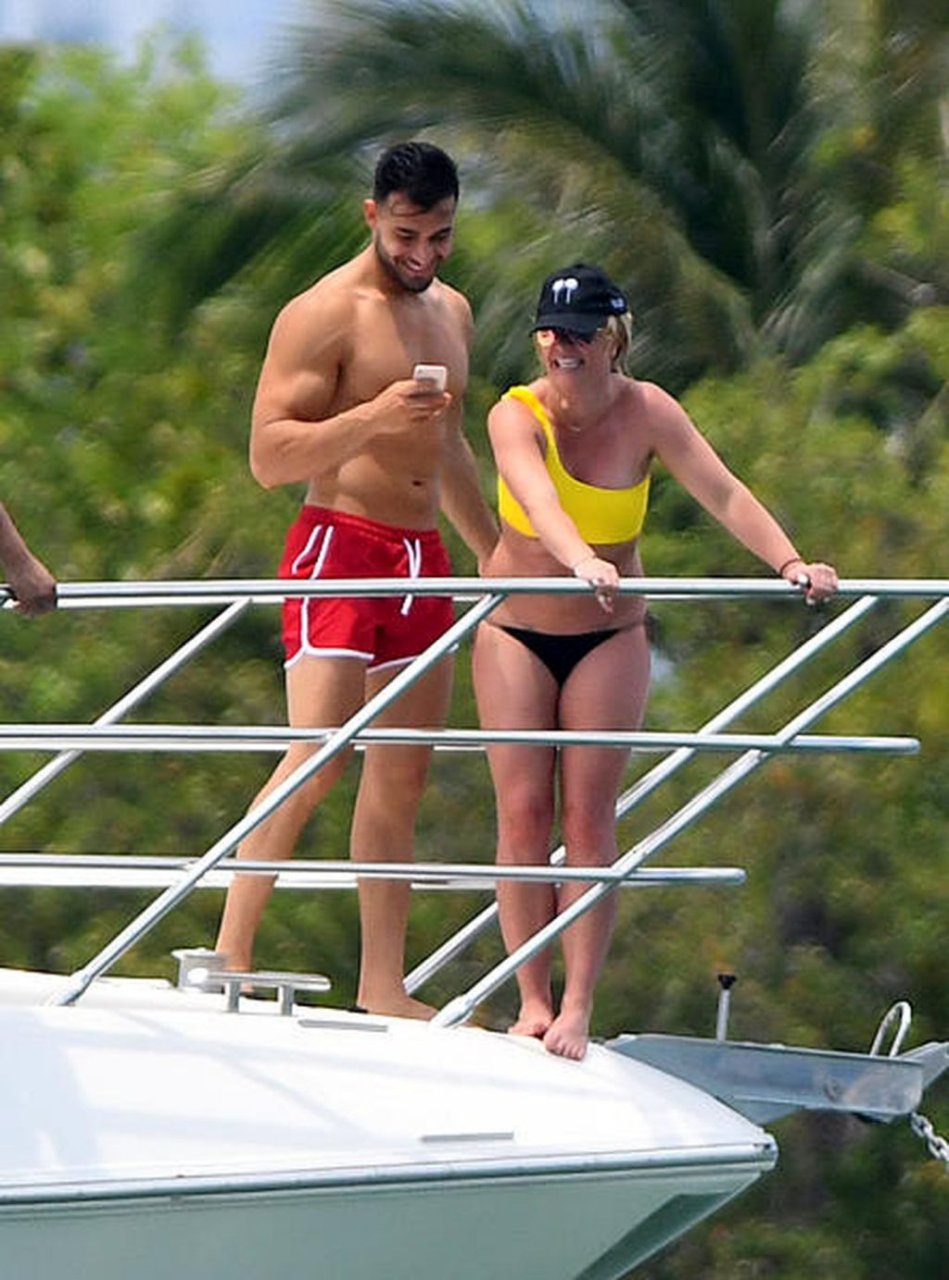 Britney Spears indossa un bikini giallo mentre trascorre un pomeriggio ricco di azione su uno yacht con il fidanzato Sam Asghari a Miami, 08/06/2019.