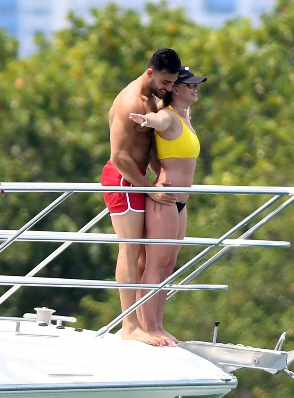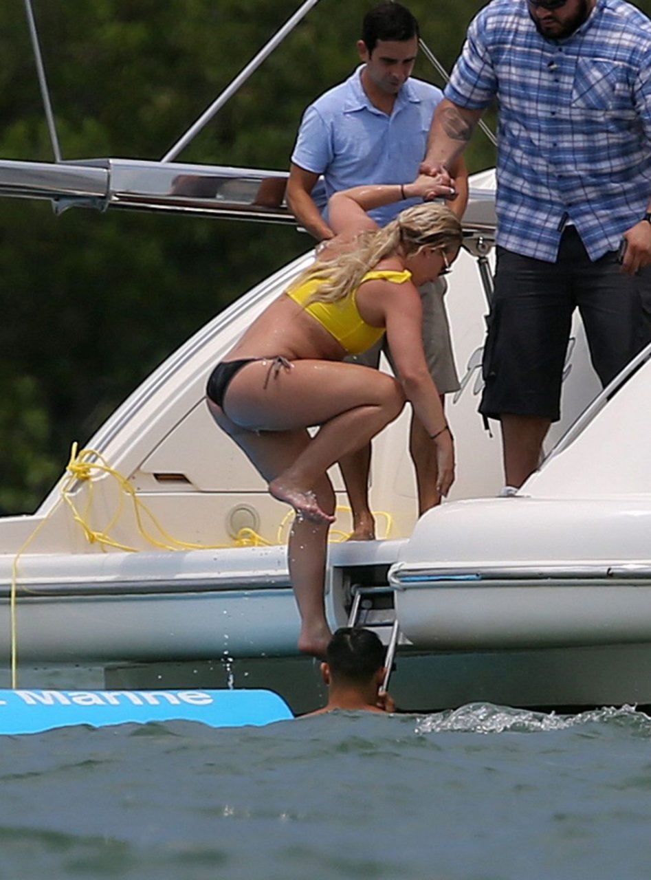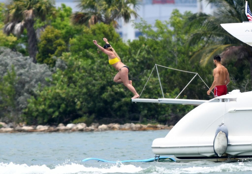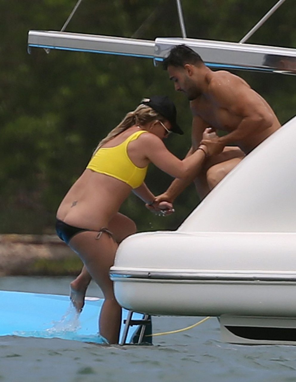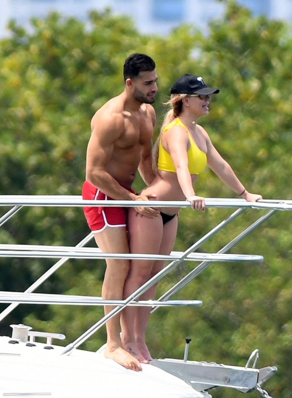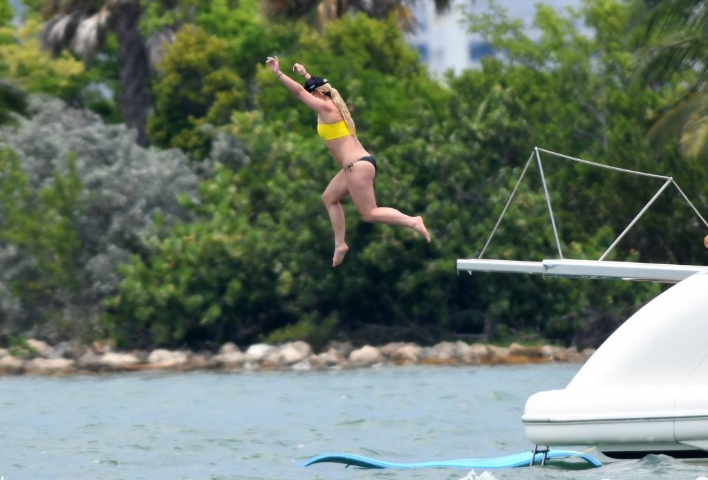 Britney Spears indossa un bikini giallo mentre trascorre un pomeriggio ricco di azione su uno yacht con il fidanzato Sam Asghari a Miami, 08/06/2019.