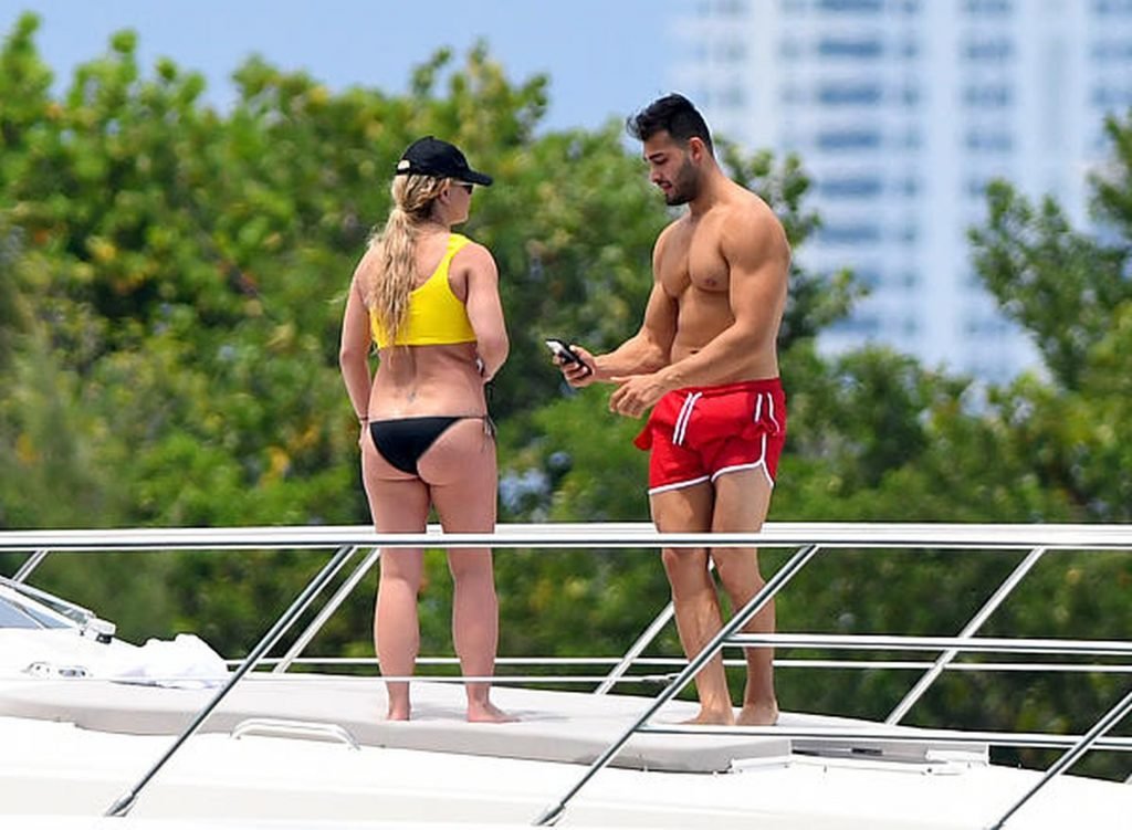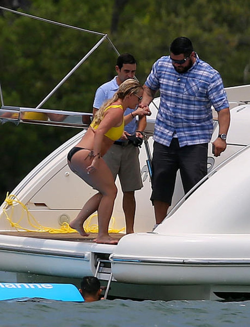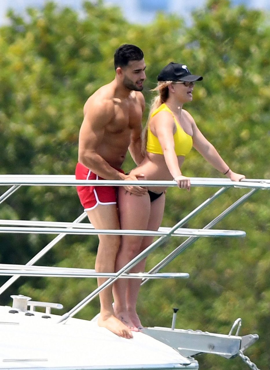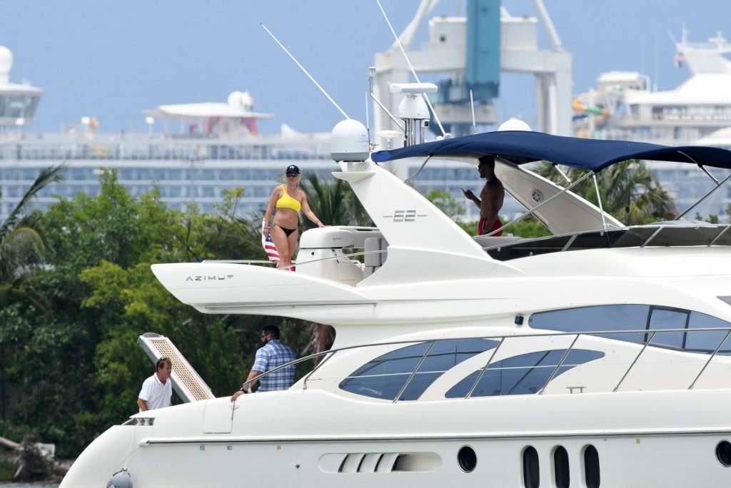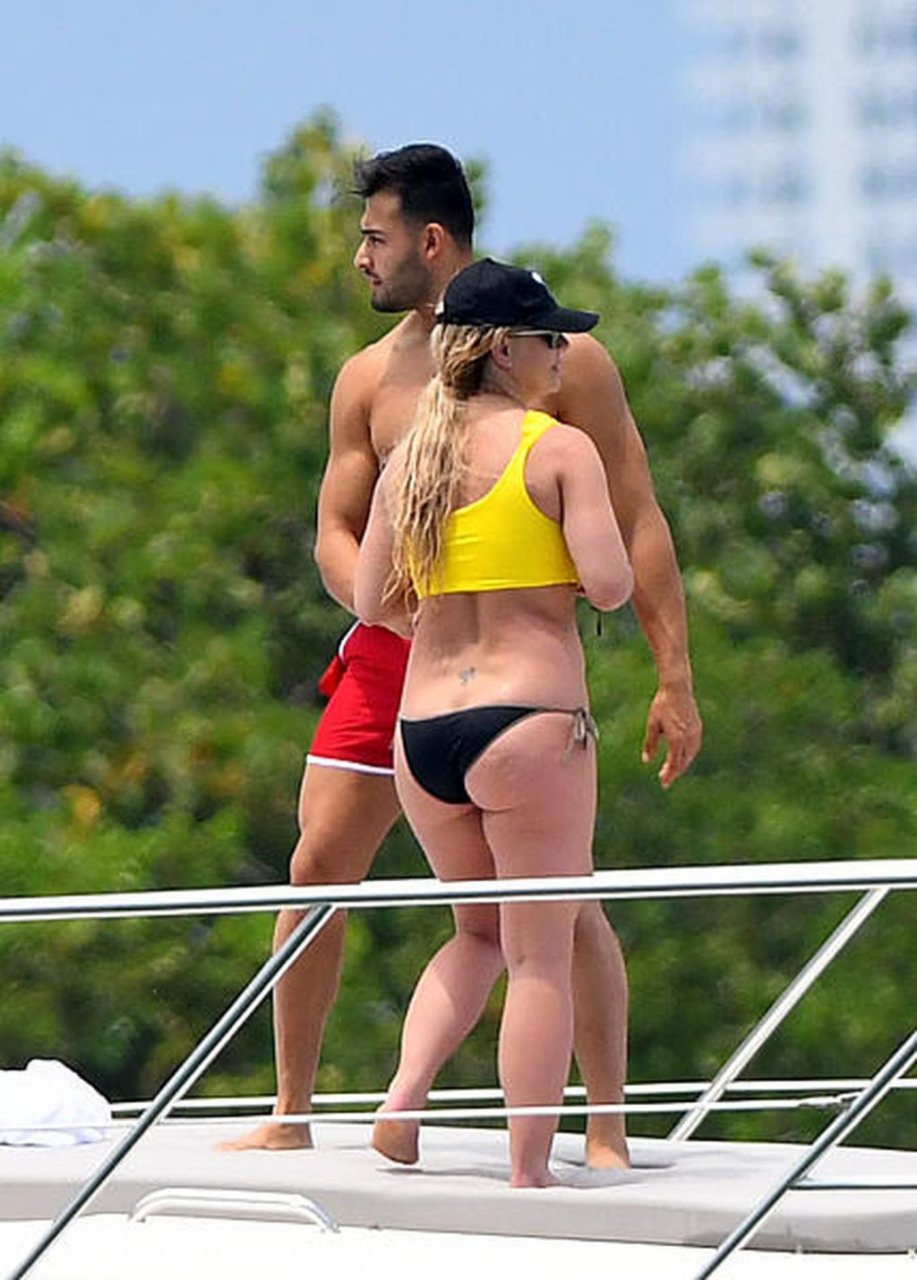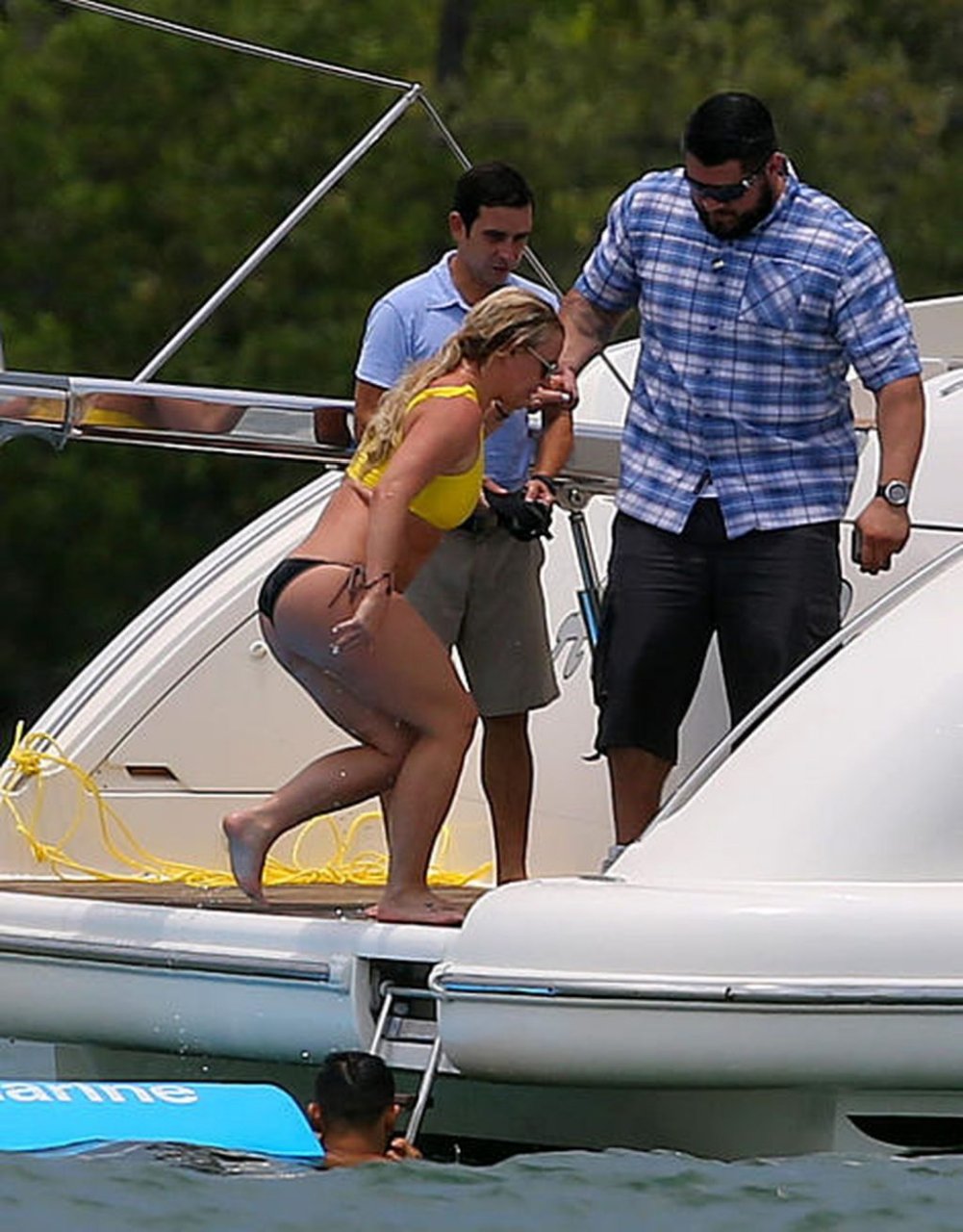 Britney Spears indossa un bikini giallo mentre trascorre un pomeriggio ricco di azione su uno yacht con il fidanzato Sam Asghari a Miami, 08/06/2019.
