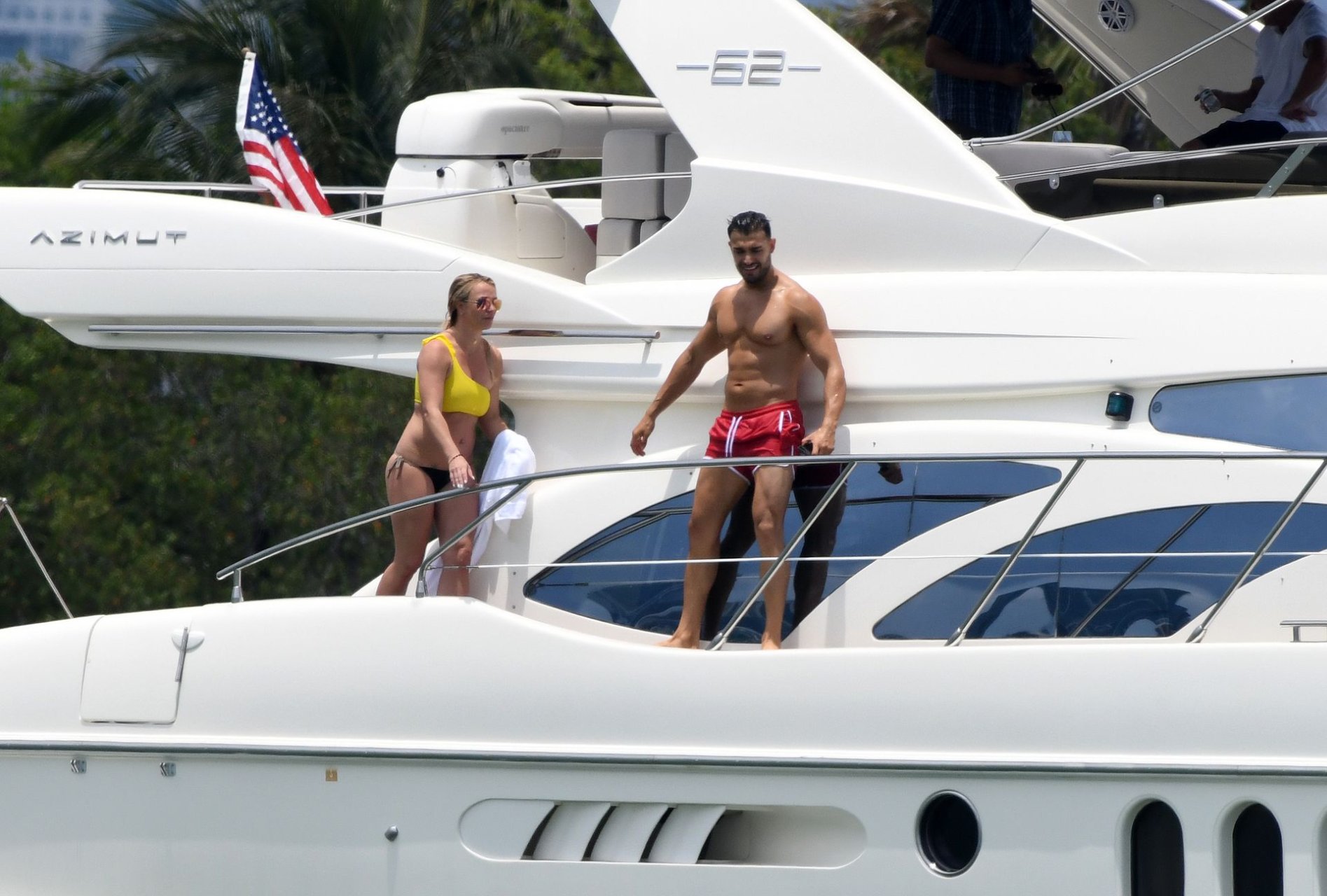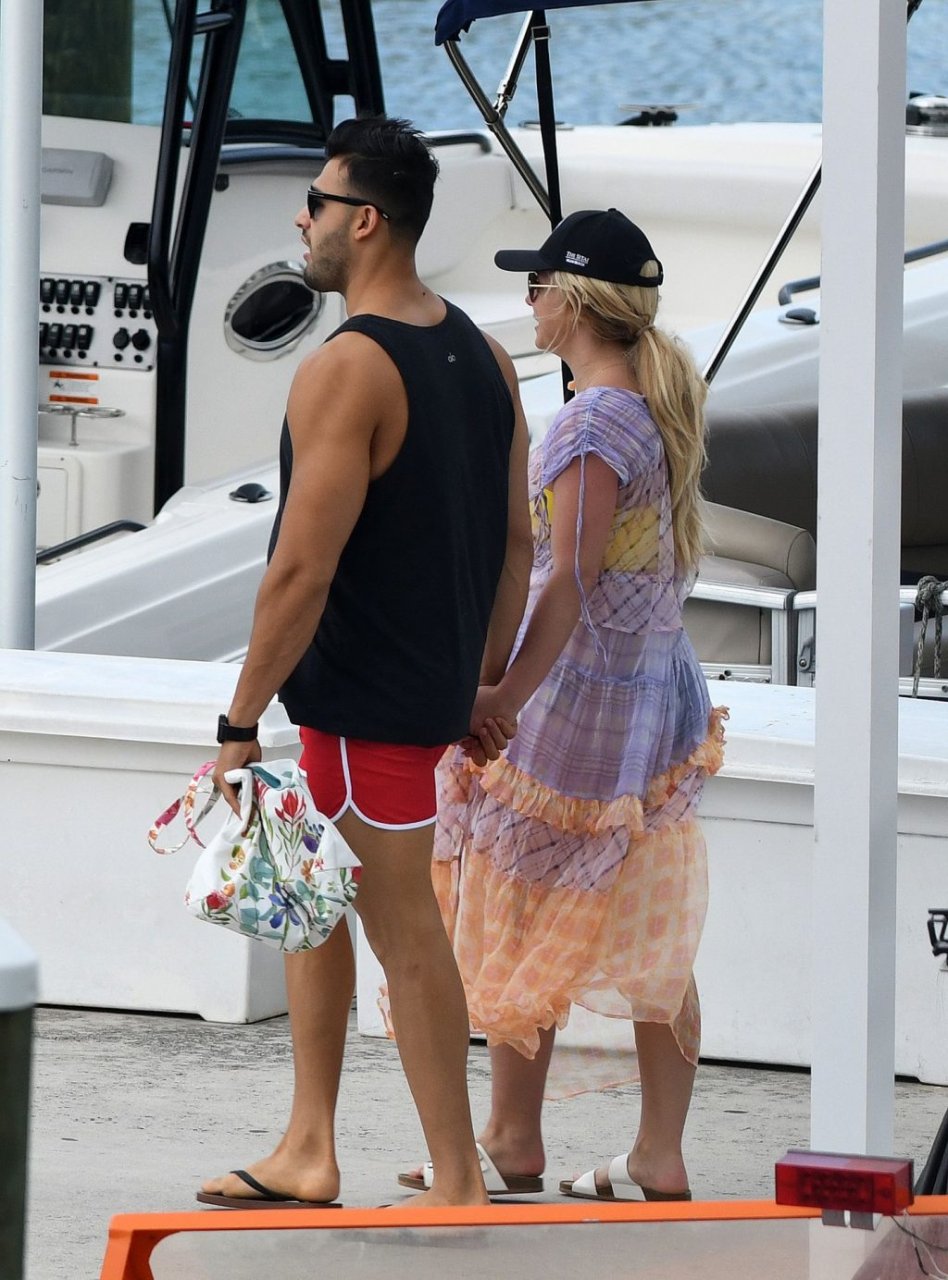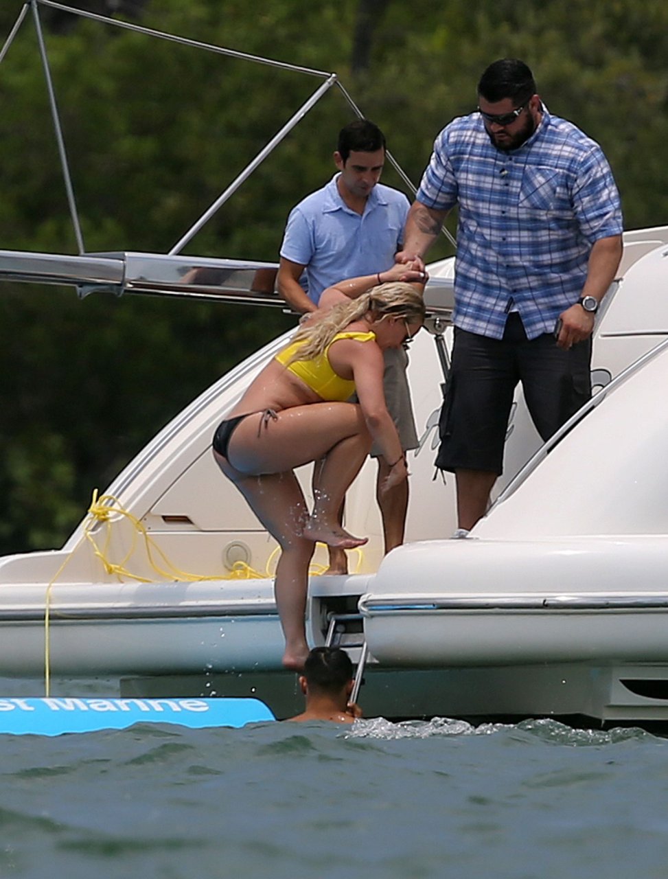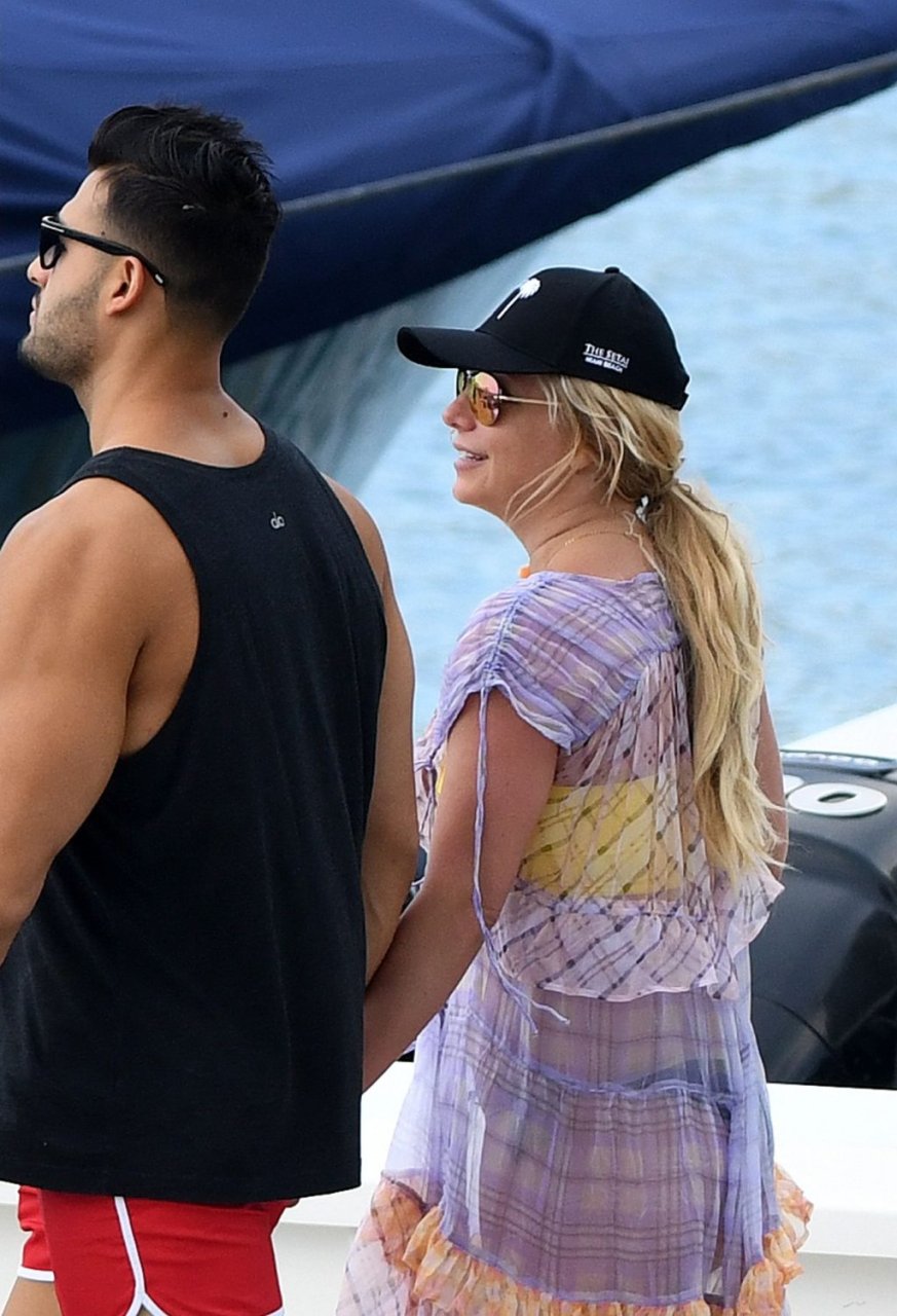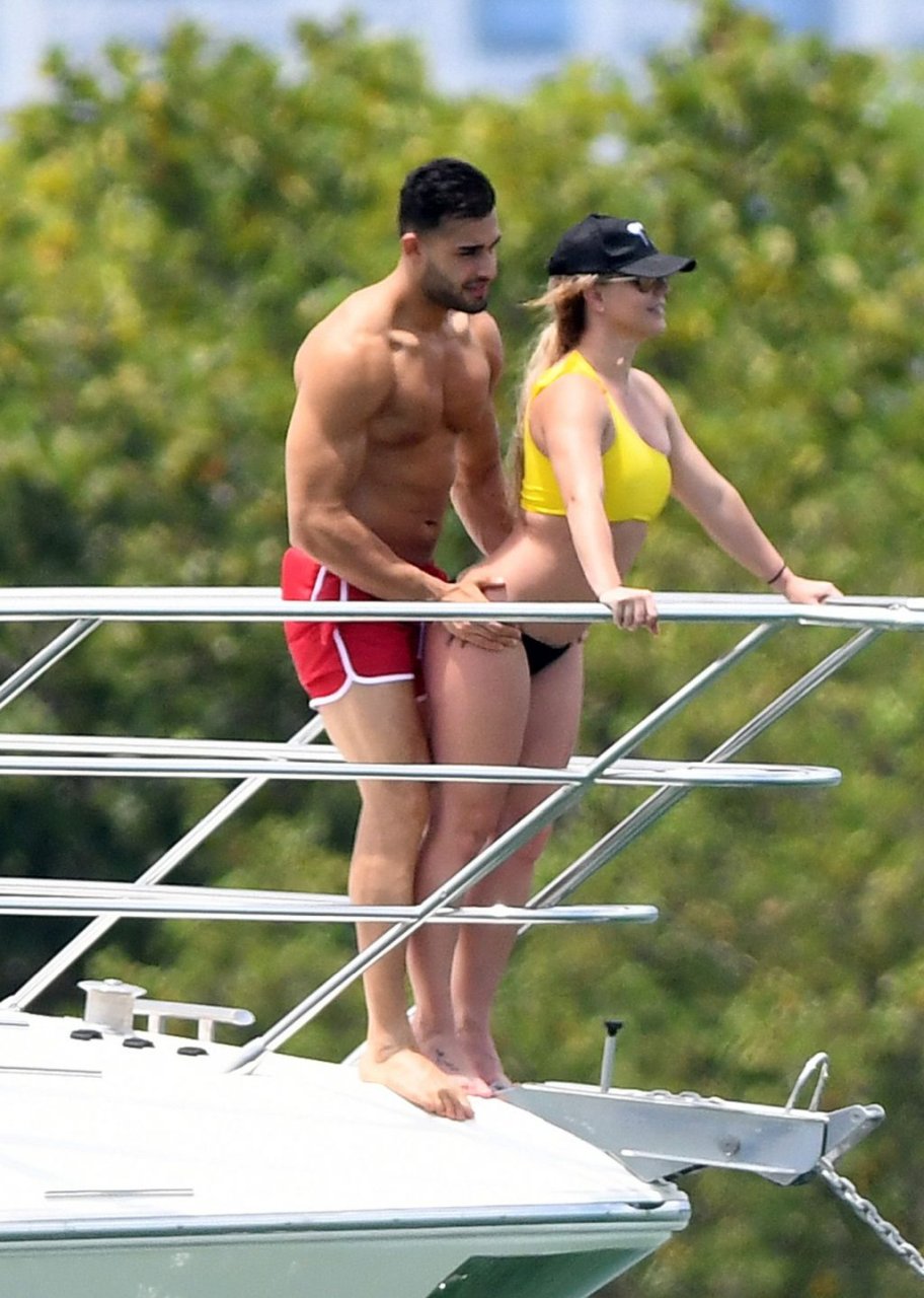 Britney Spears indossa un bikini giallo mentre trascorre un pomeriggio ricco di azione su uno yacht con il fidanzato Sam Asghari a Miami, 08/06/2019.