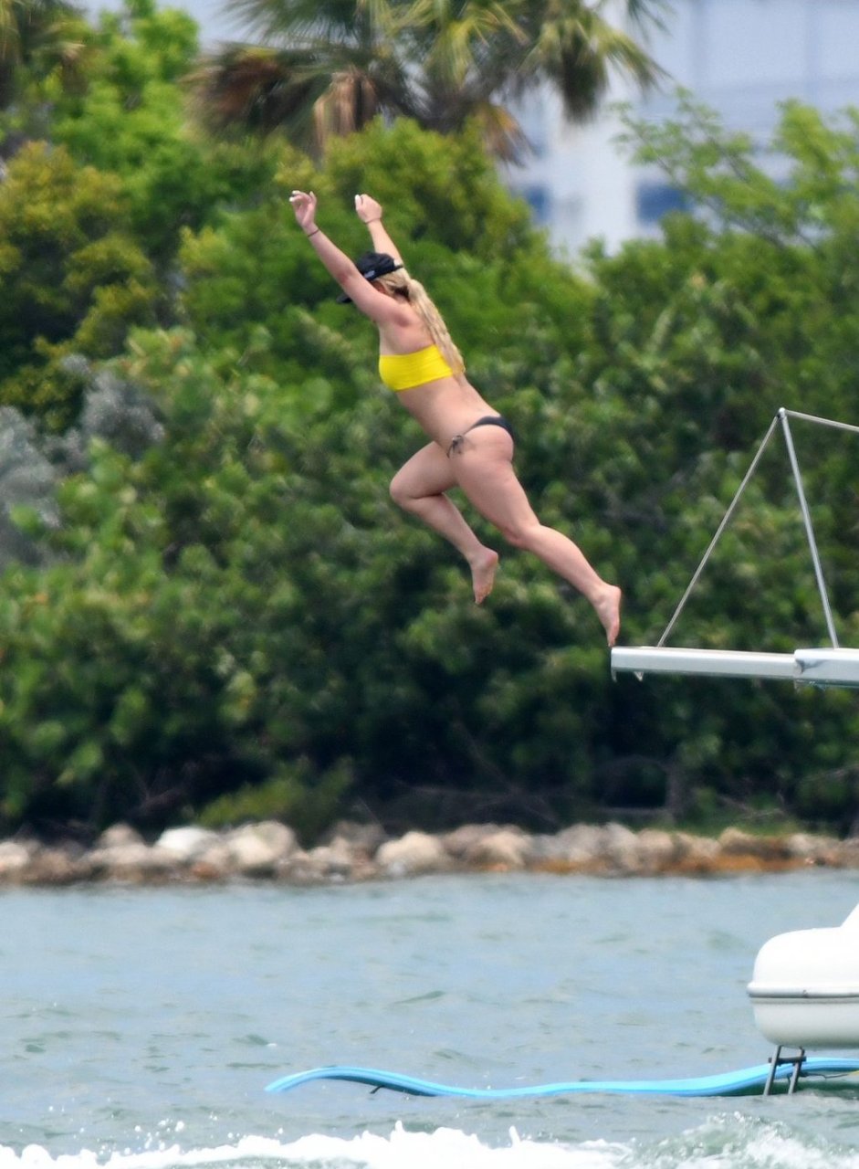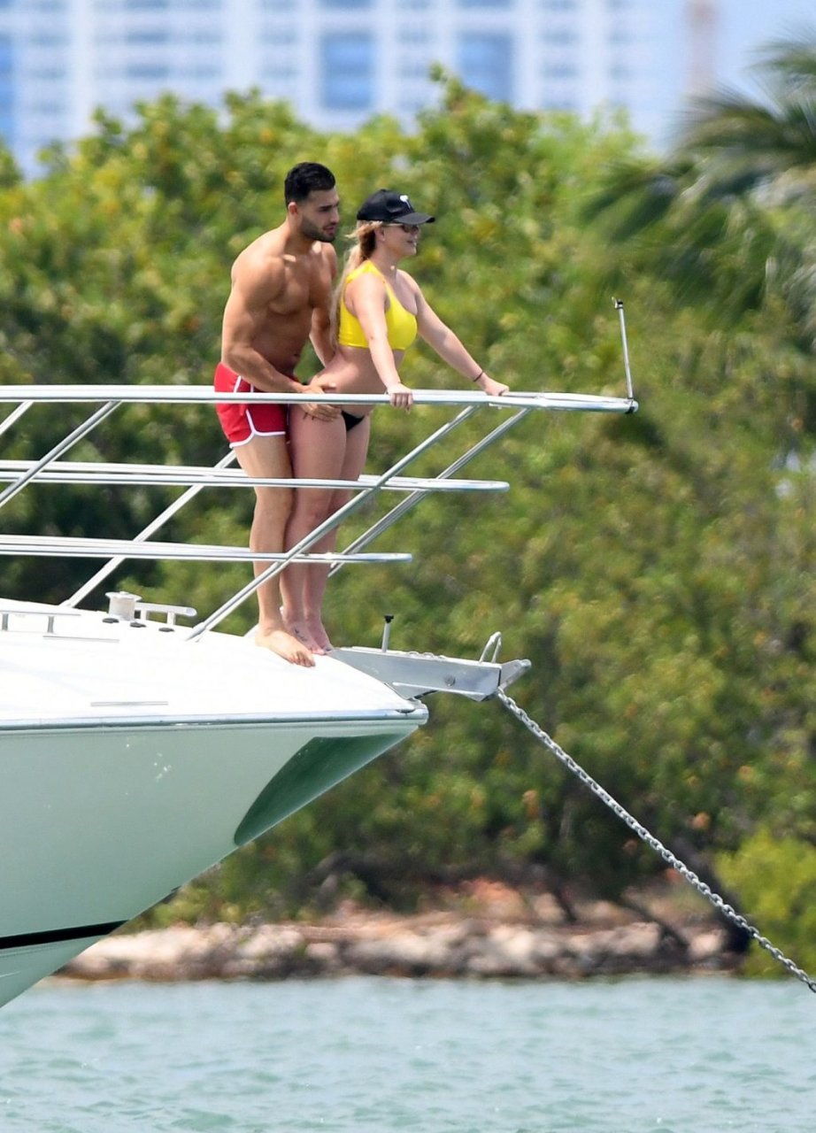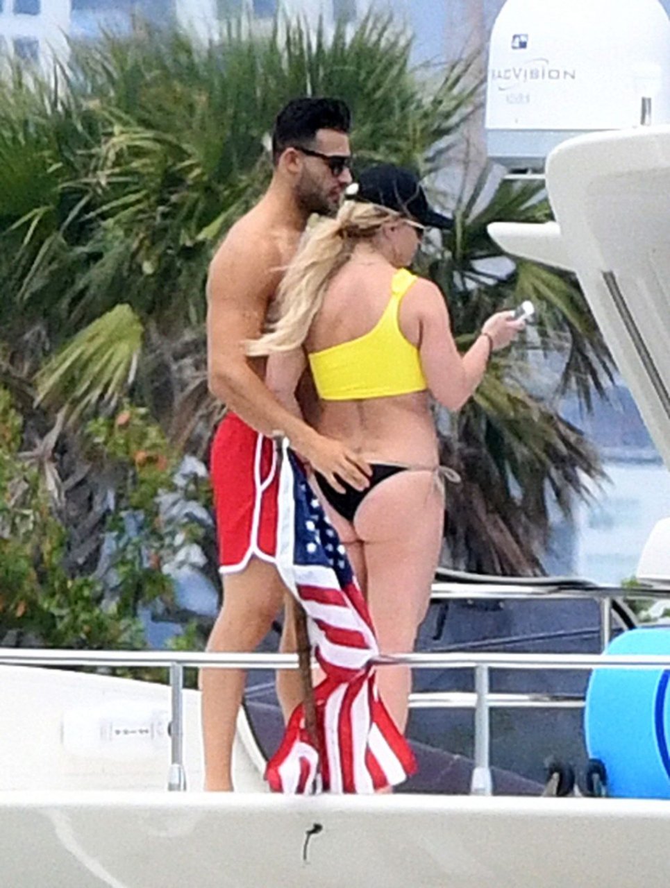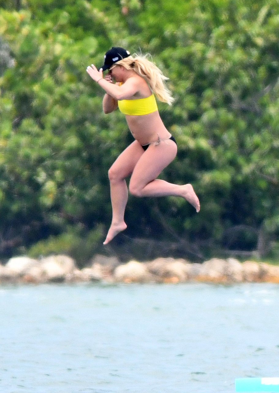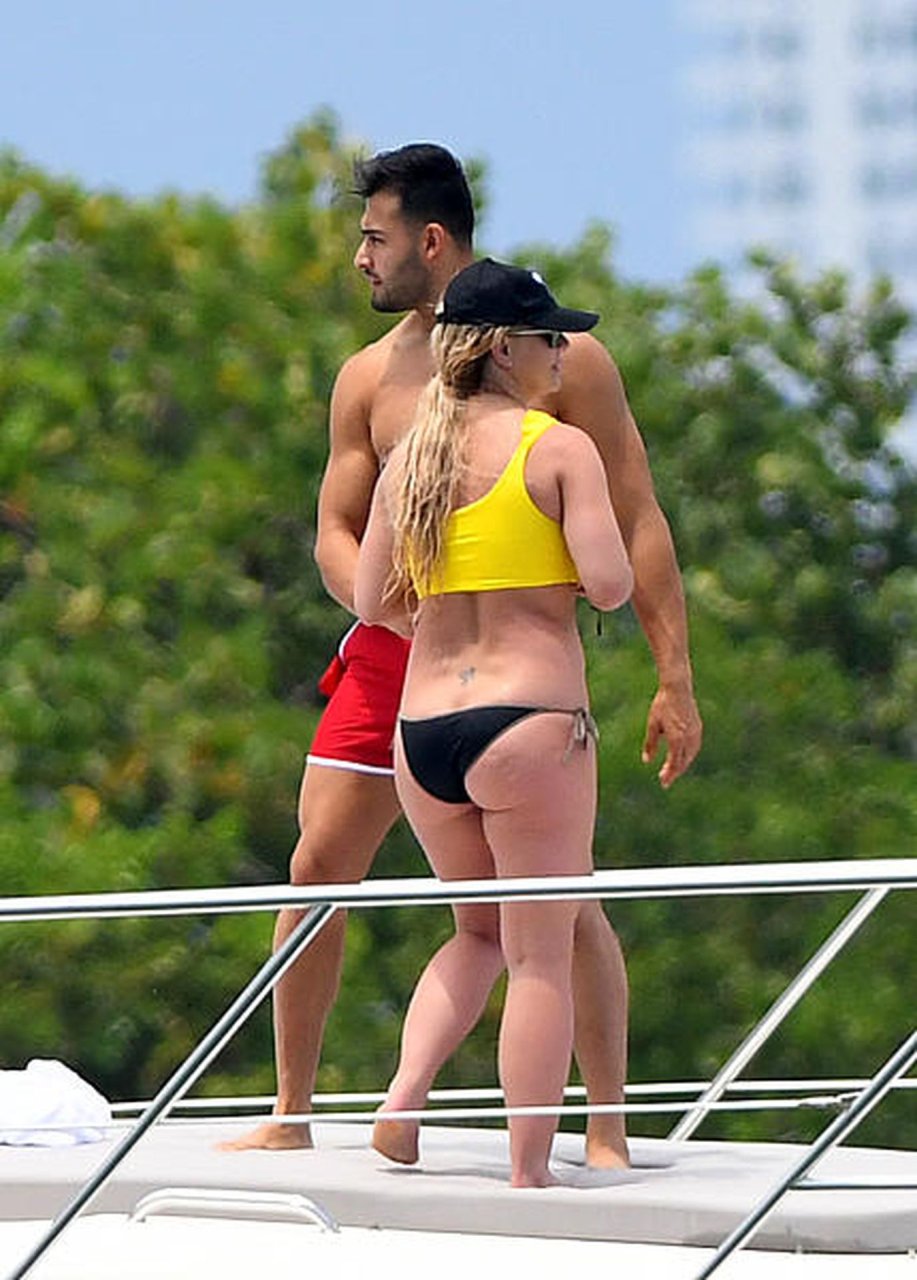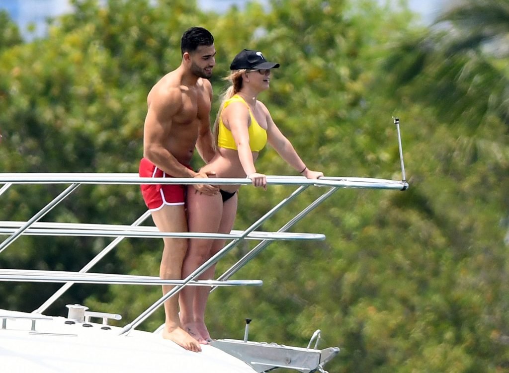 Britney Spears indossa un bikini giallo mentre trascorre un pomeriggio ricco di azione su uno yacht con il fidanzato Sam Asghari a Miami, 08/06/2019.
