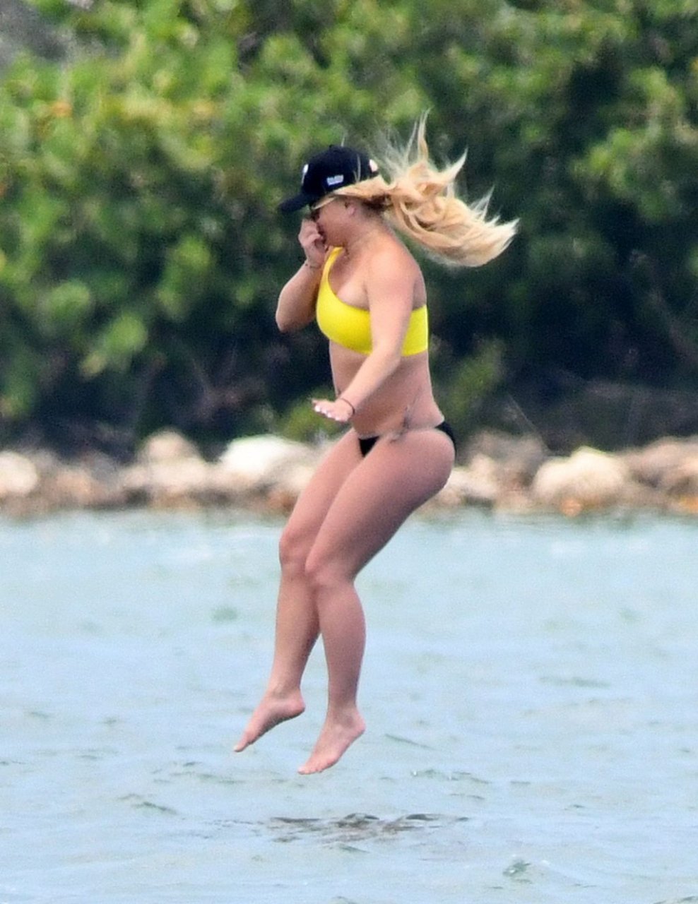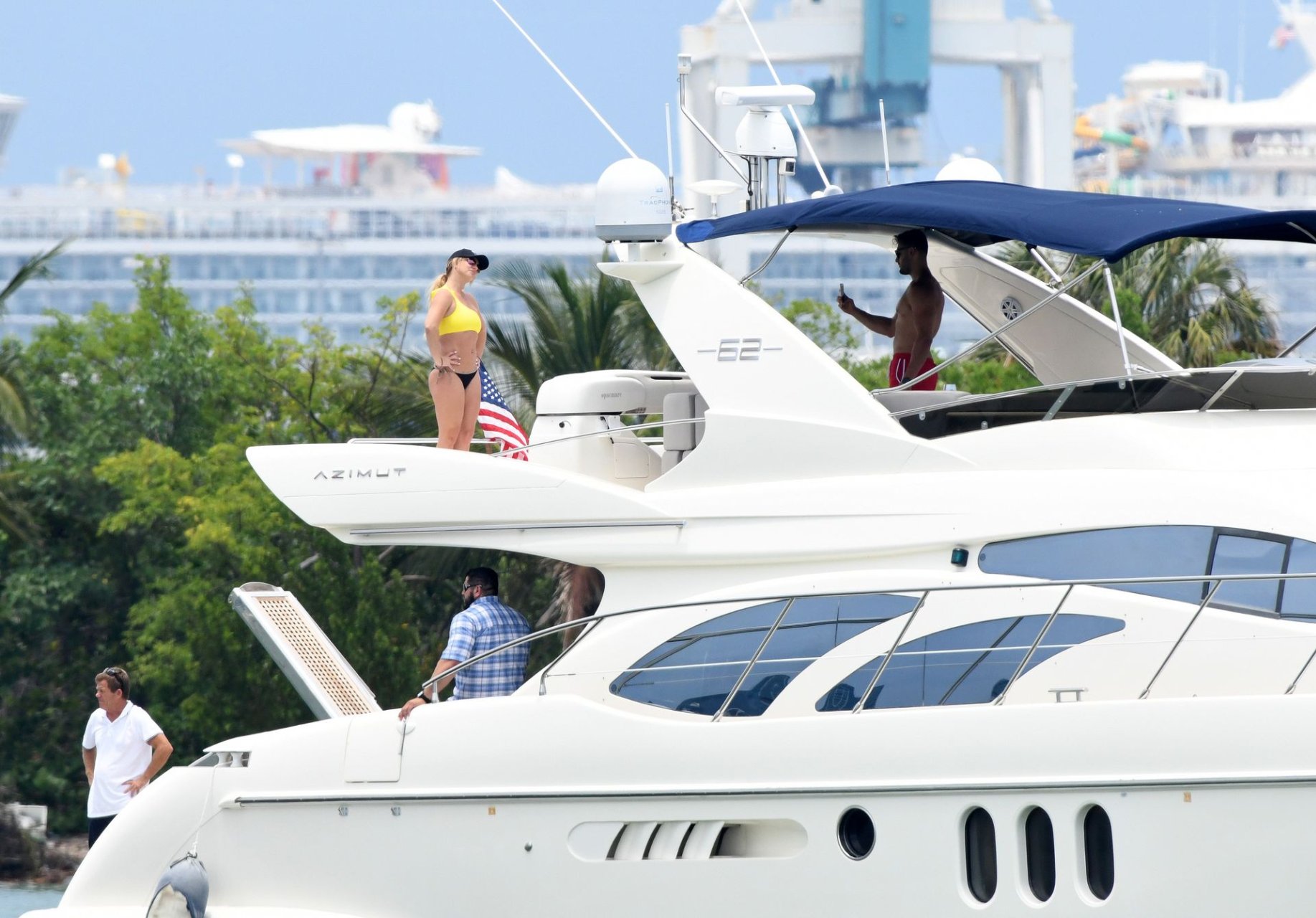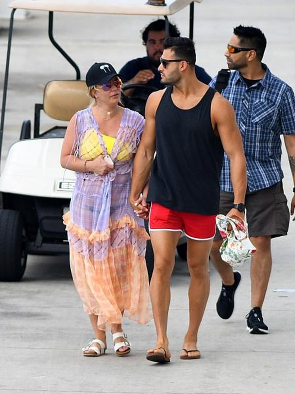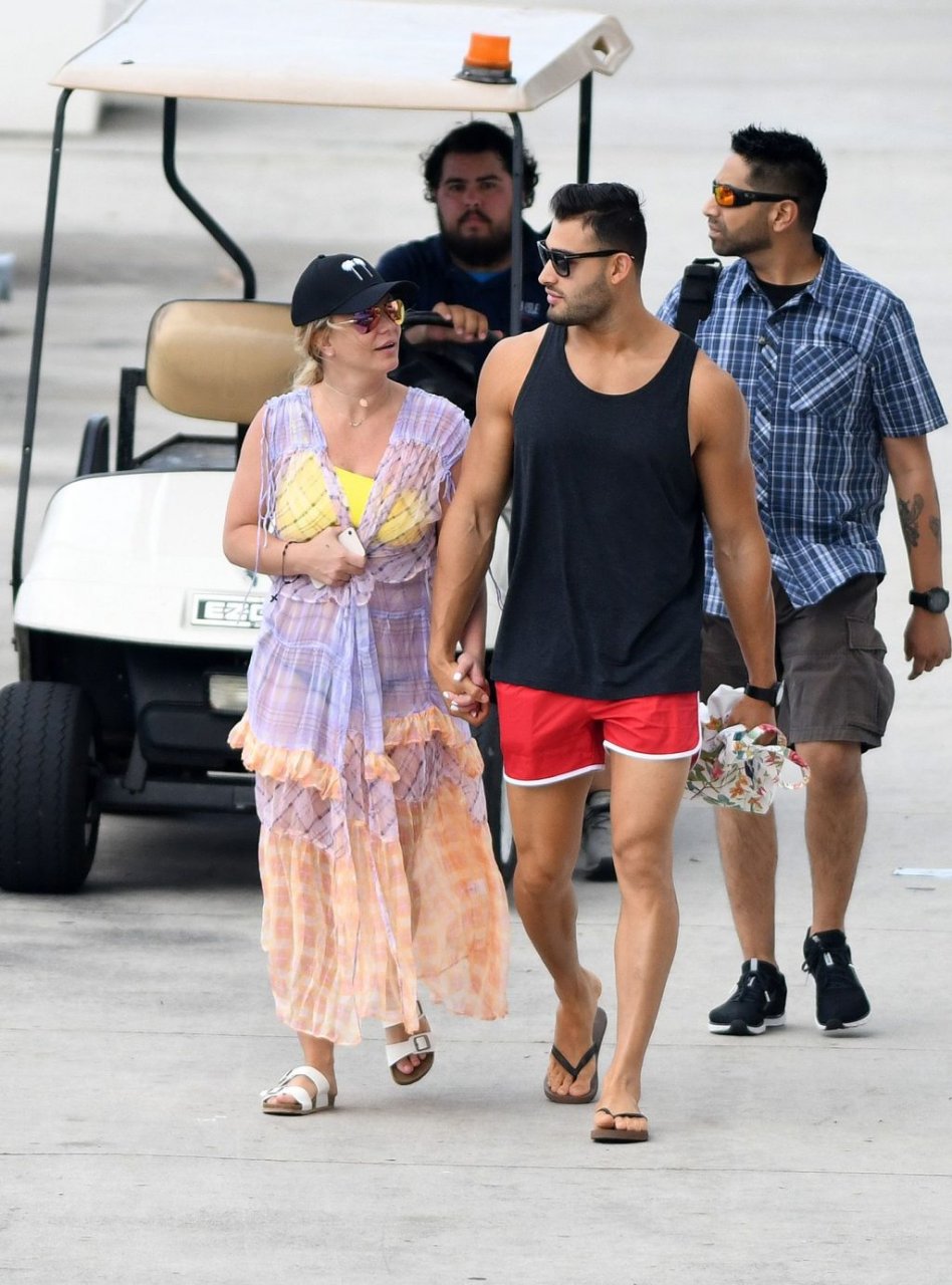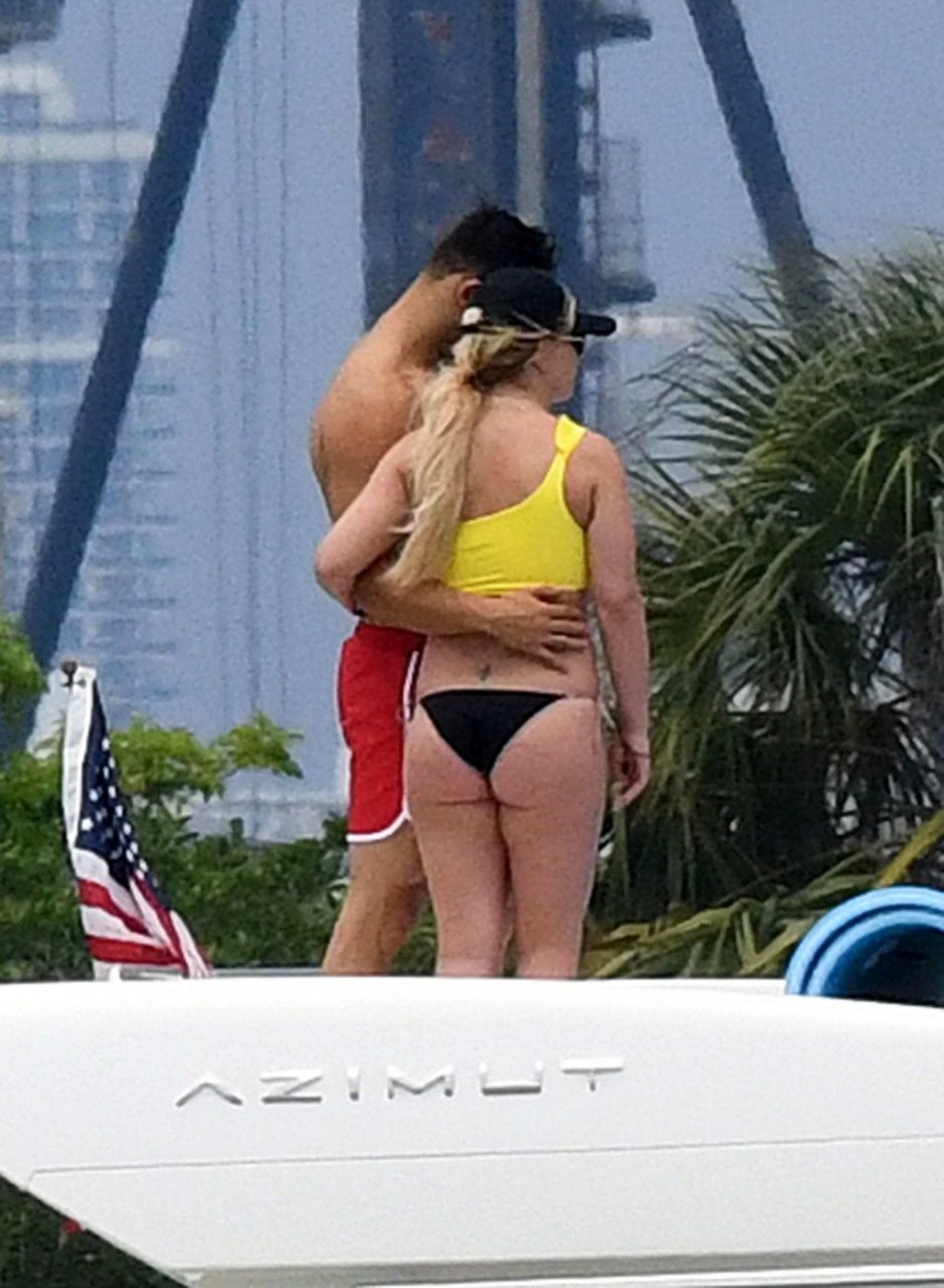 Britney Spears indossa un bikini giallo mentre trascorre un pomeriggio ricco di azione su uno yacht con il fidanzato Sam Asghari a Miami, 08/06/2019.