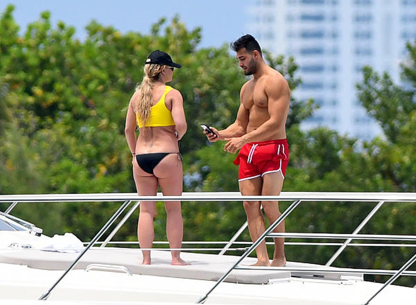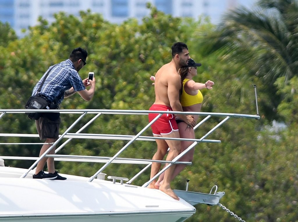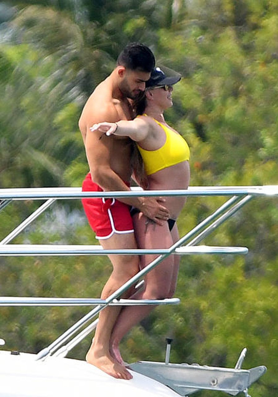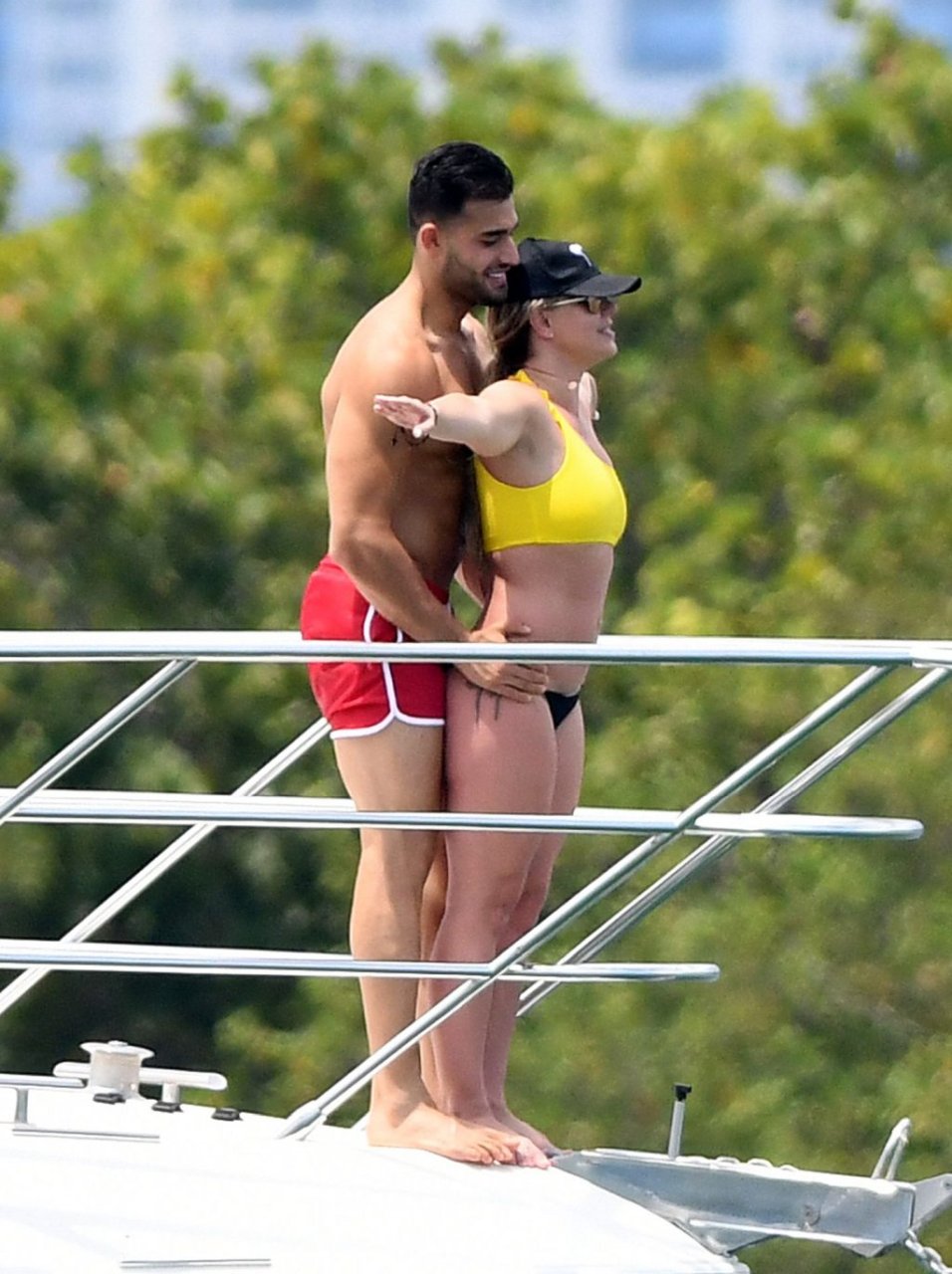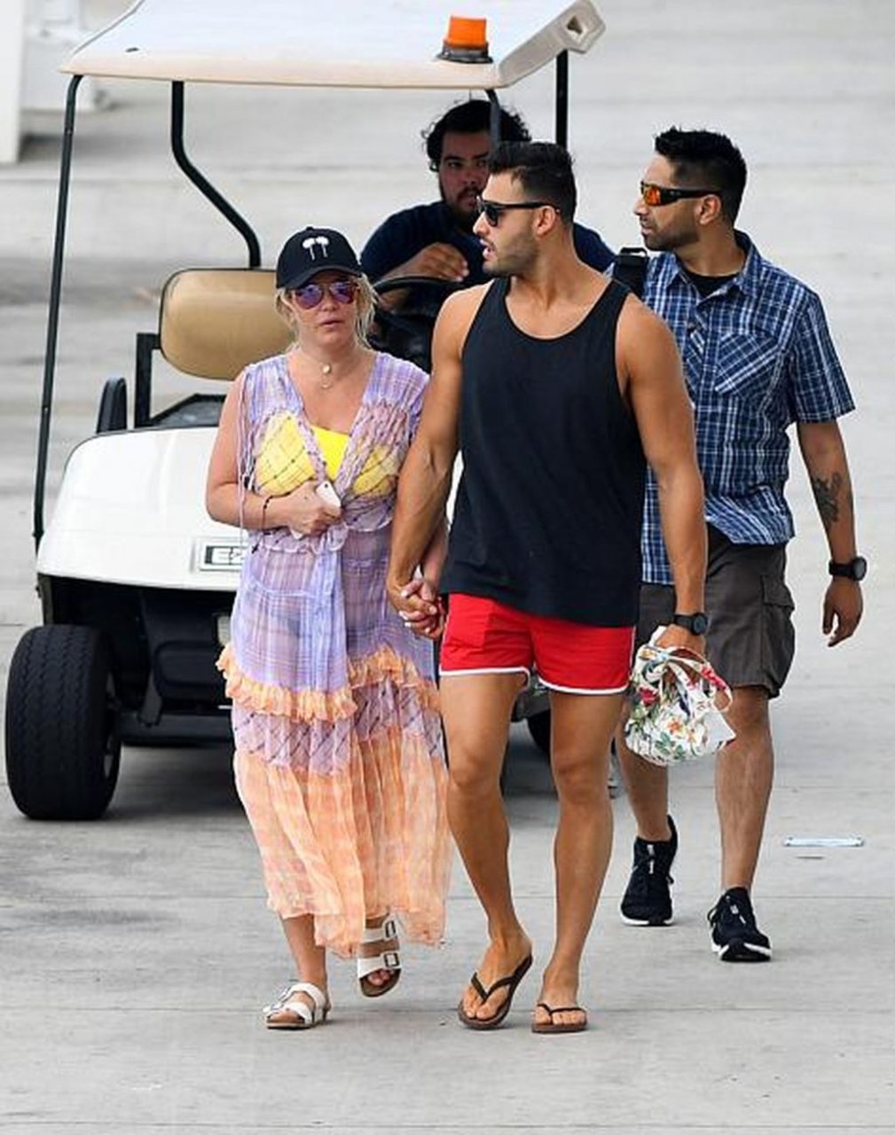 Britney Spears indossa un bikini giallo mentre trascorre un pomeriggio ricco di azione su uno yacht con il fidanzato Sam Asghari a Miami, 08/06/2019.