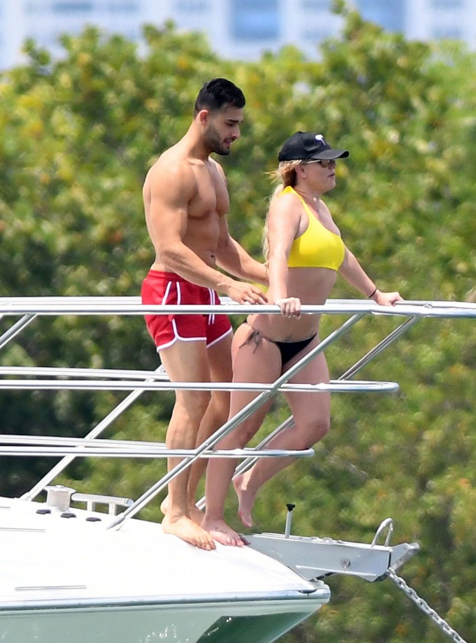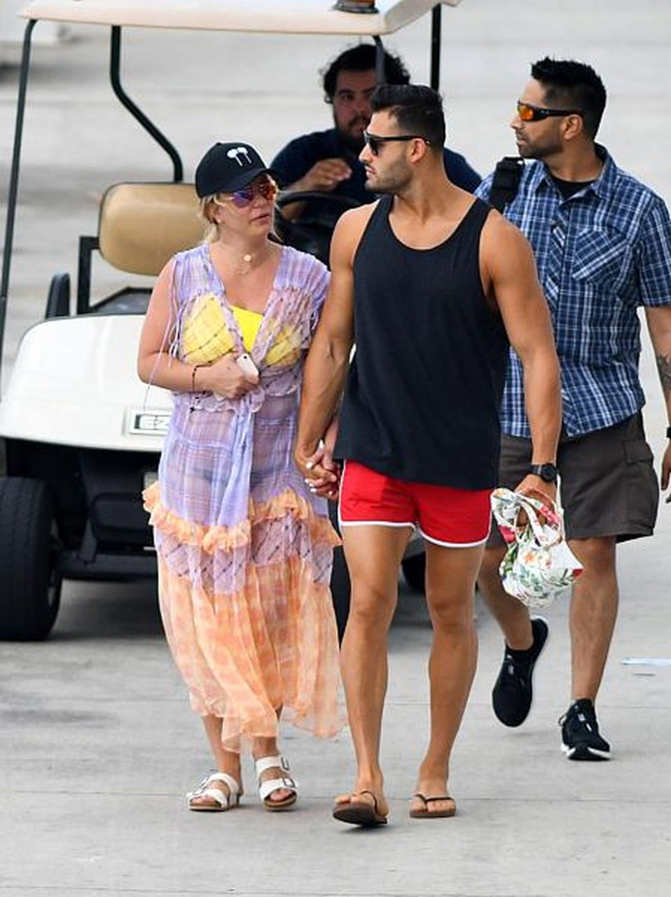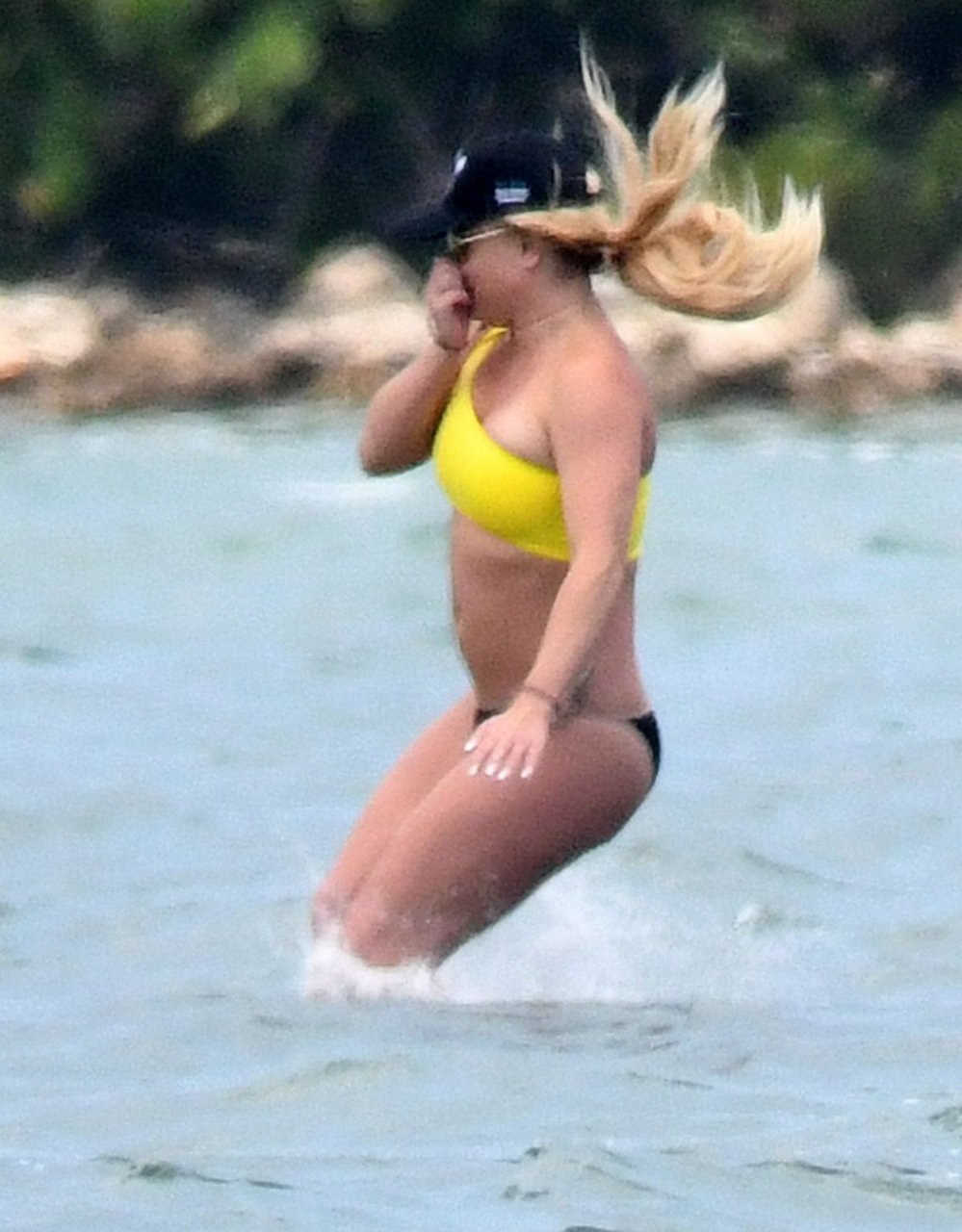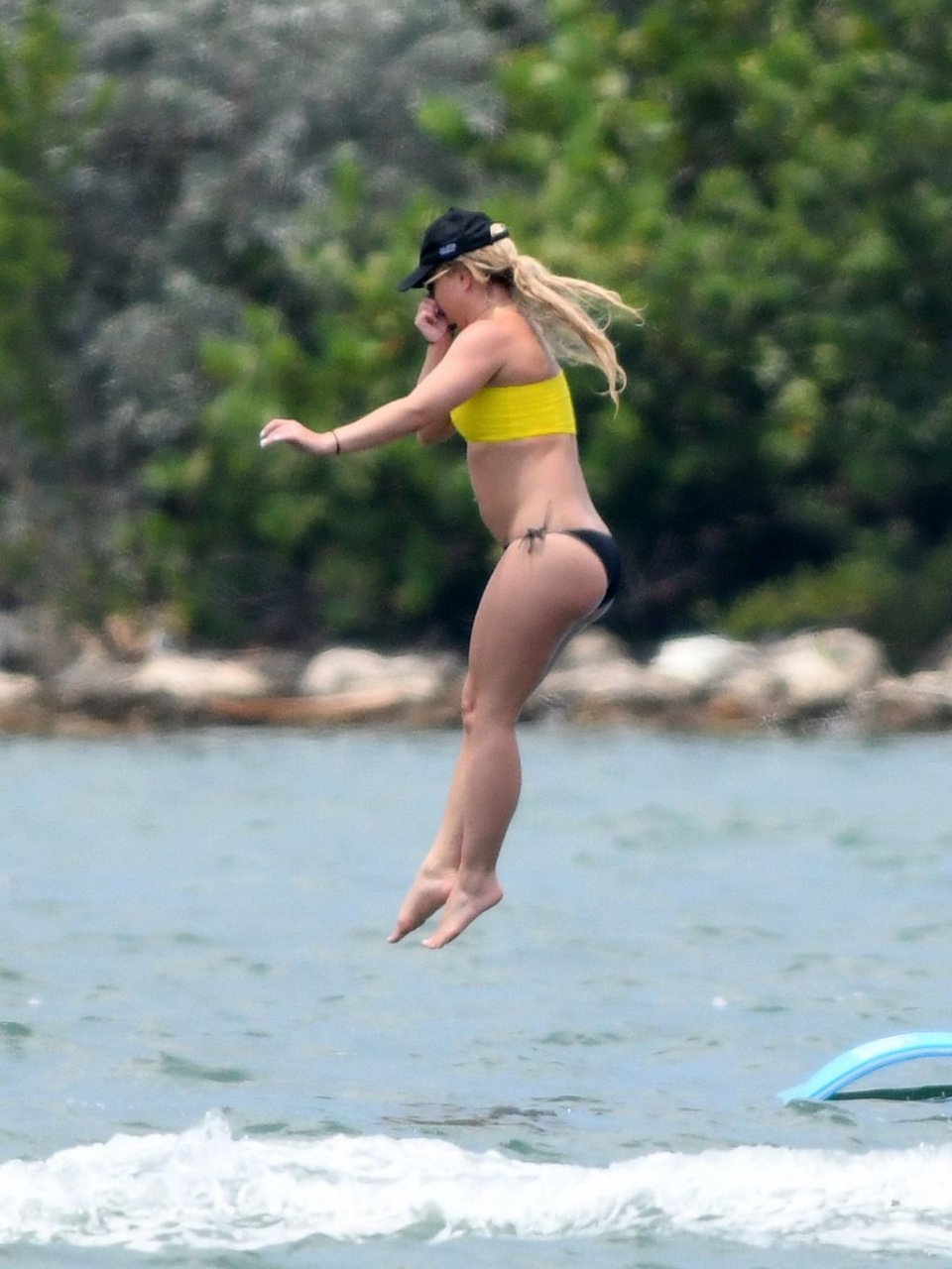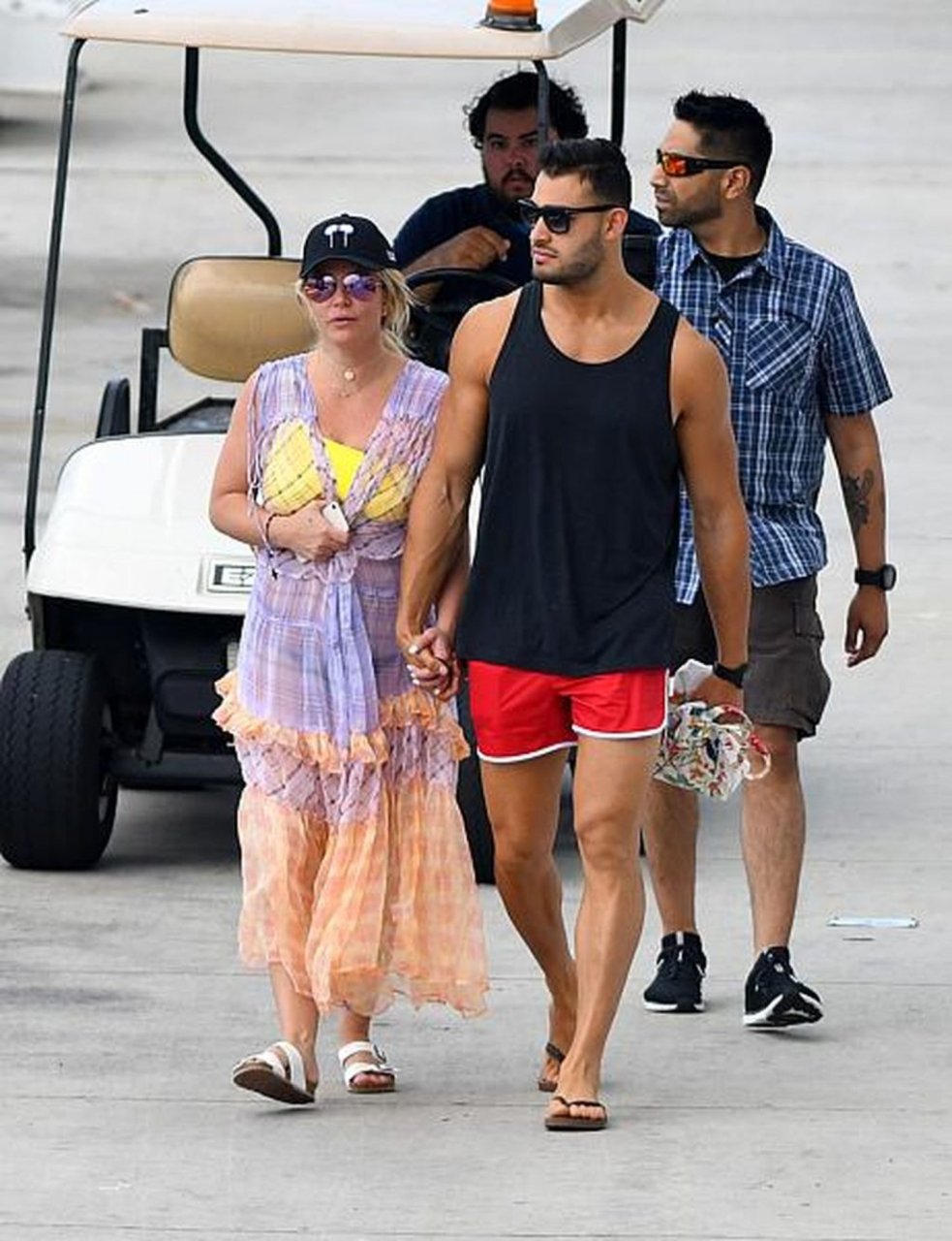 Britney Spears indossa un bikini giallo mentre trascorre un pomeriggio ricco di azione su uno yacht con il fidanzato Sam Asghari a Miami, 08/06/2019.