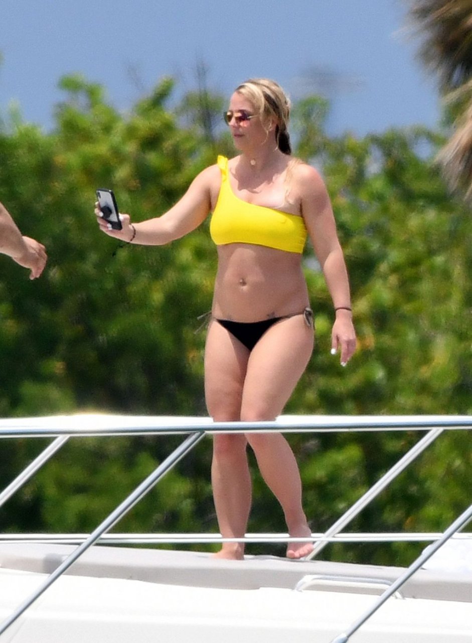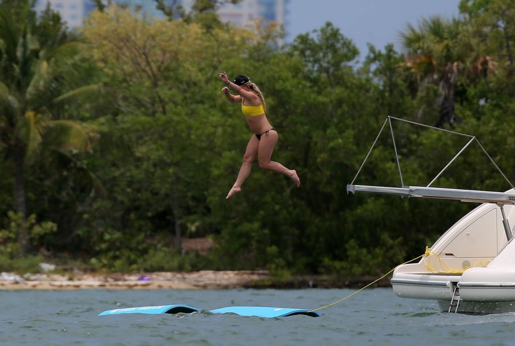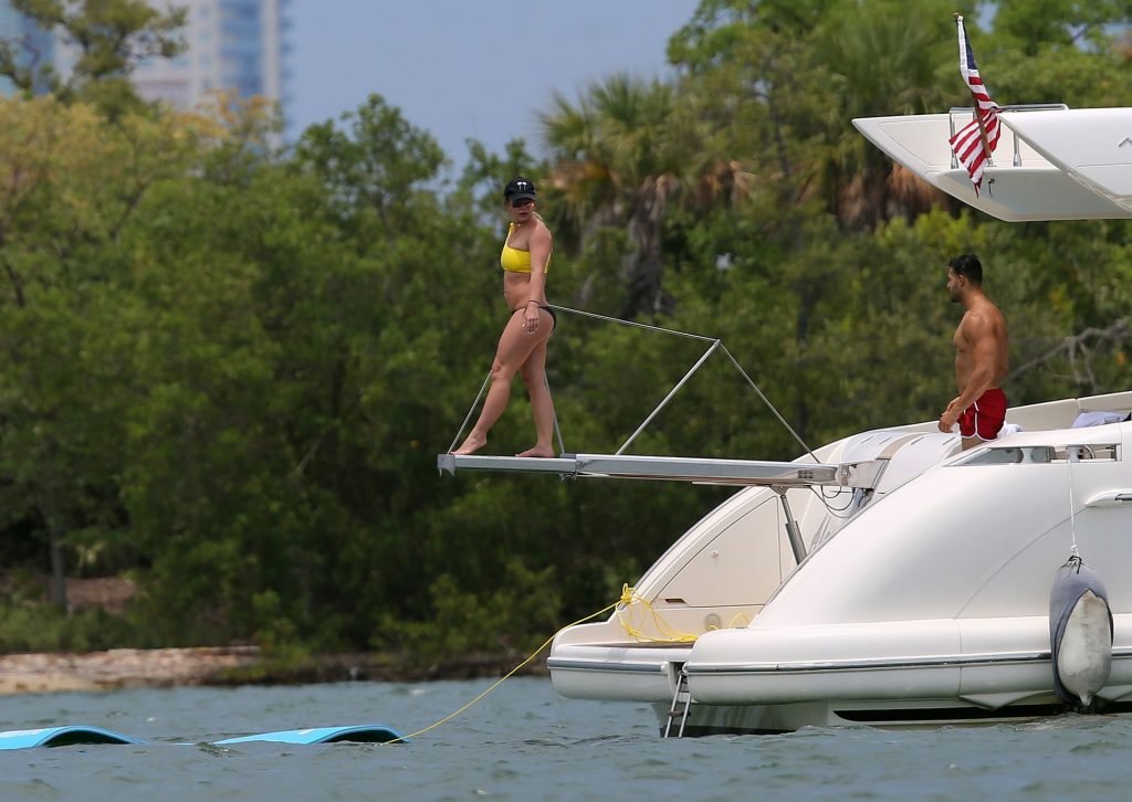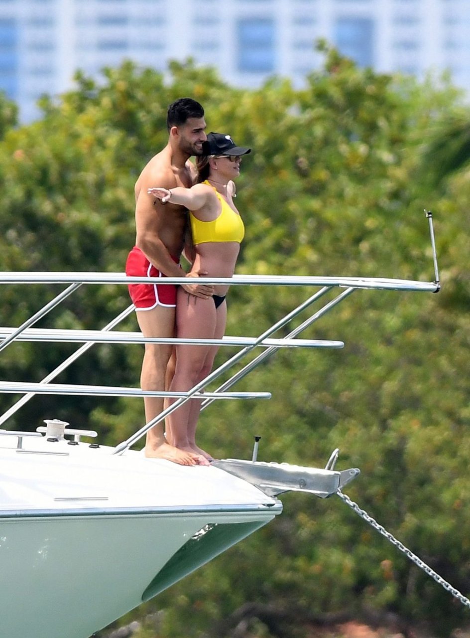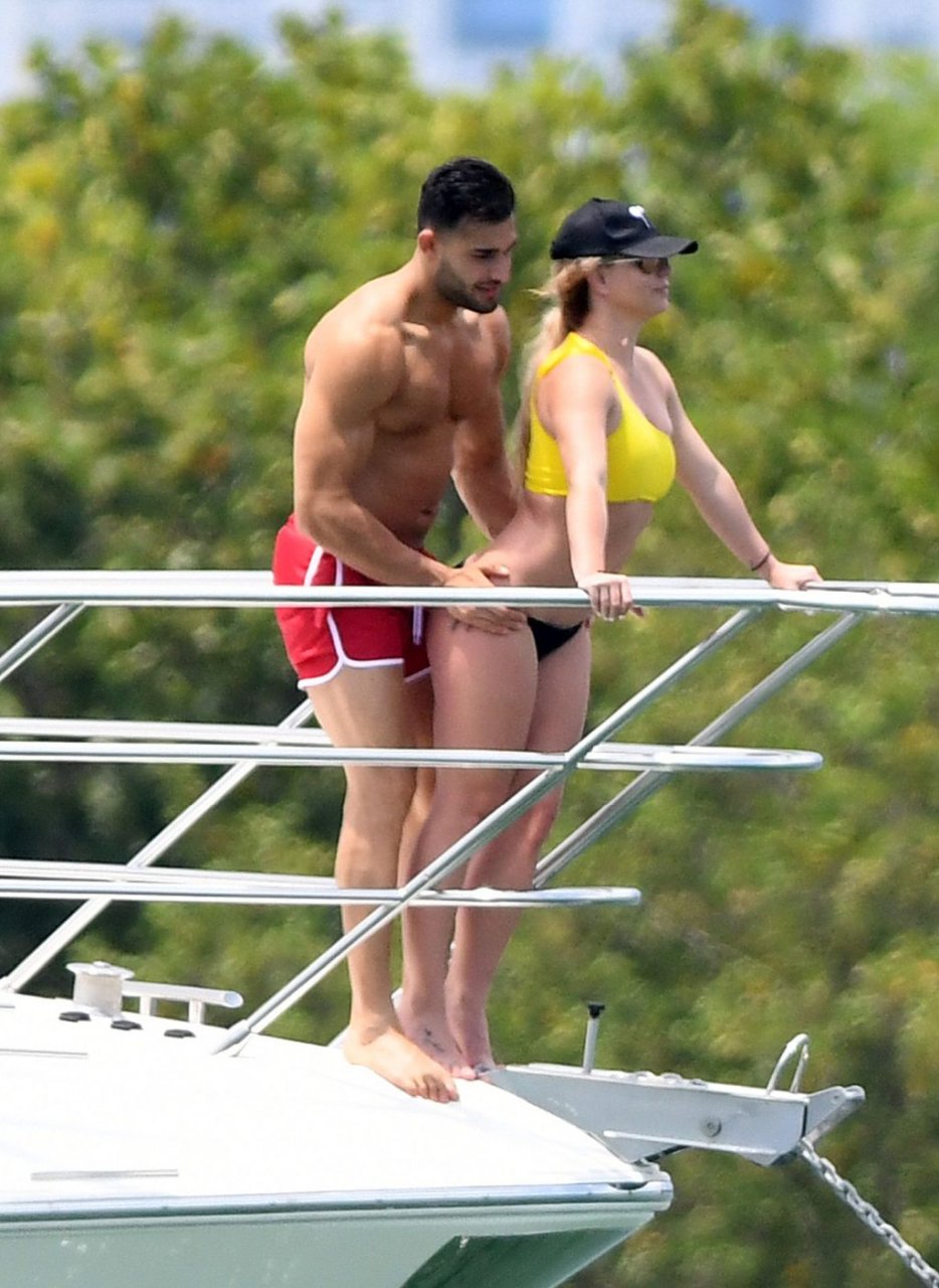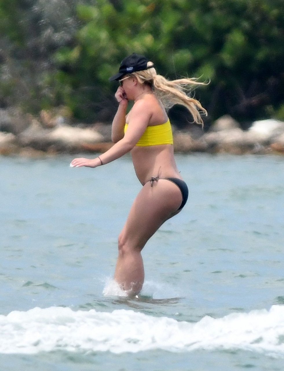 Britney Spears indossa un bikini giallo mentre trascorre un pomeriggio ricco di azione su uno yacht con il fidanzato Sam Asghari a Miami, 08/06/2019.