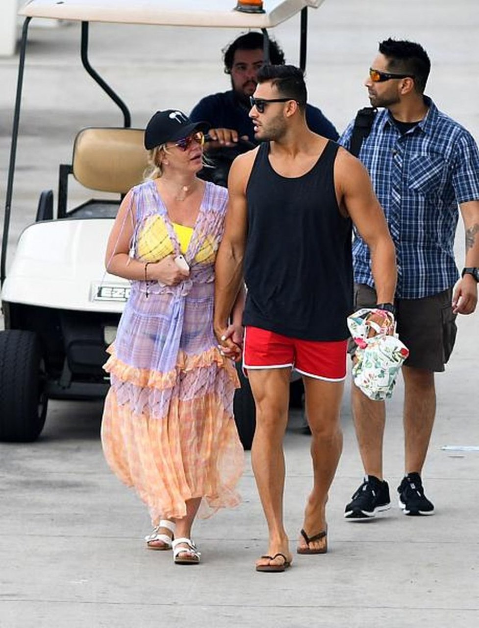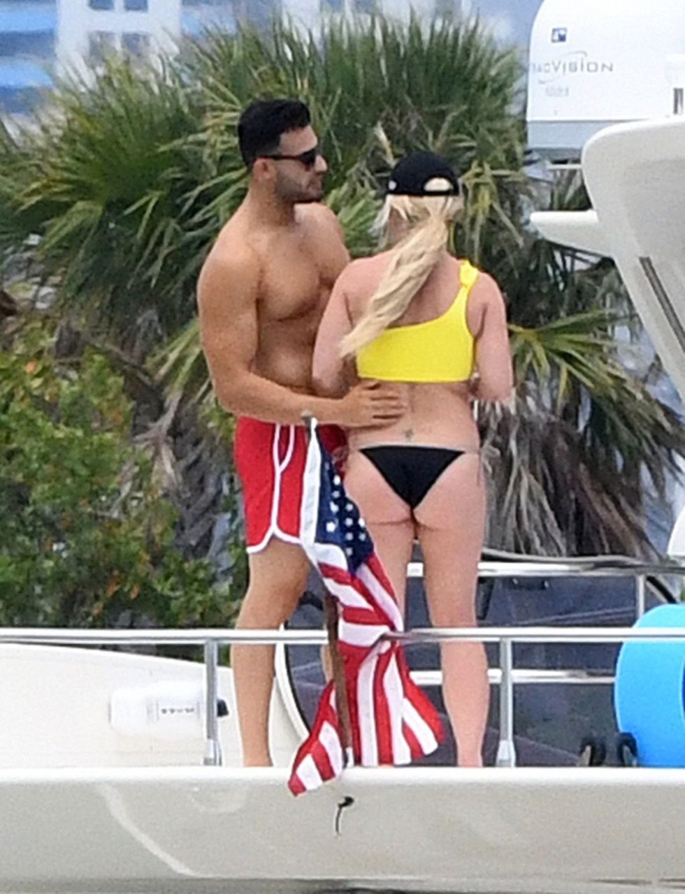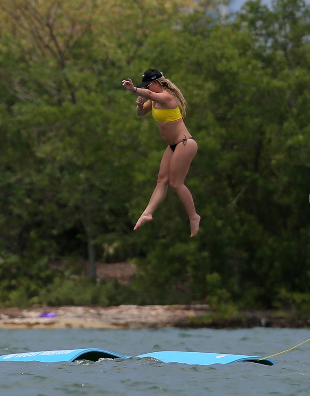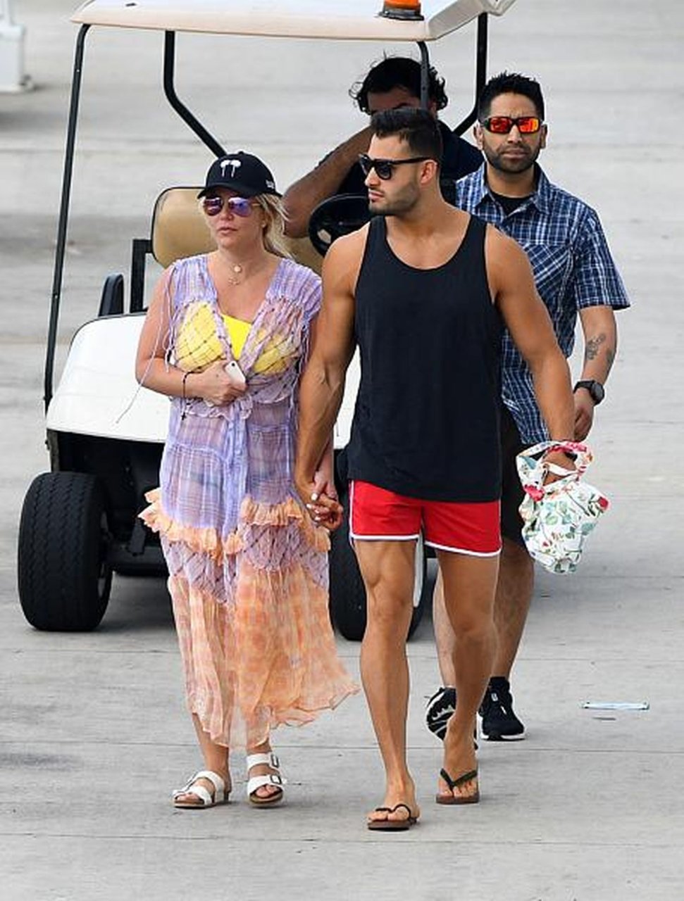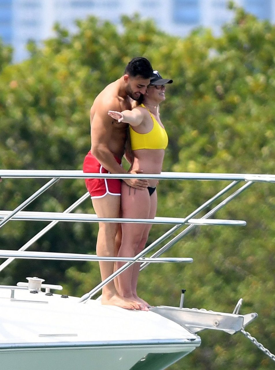 Britney Spears indossa un bikini giallo mentre trascorre un pomeriggio ricco di azione su uno yacht con il fidanzato Sam Asghari a Miami, 08/06/2019.