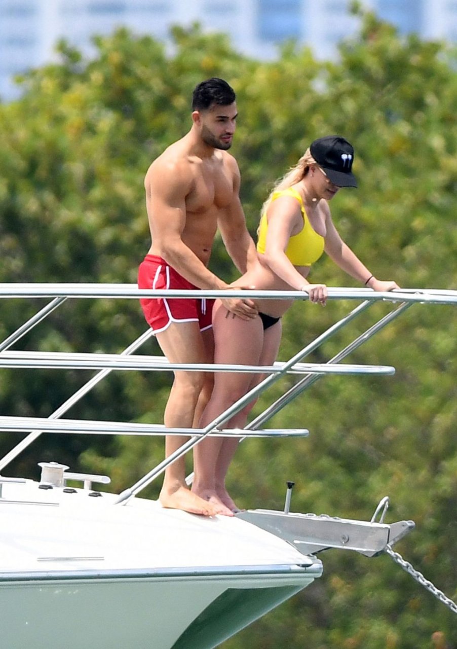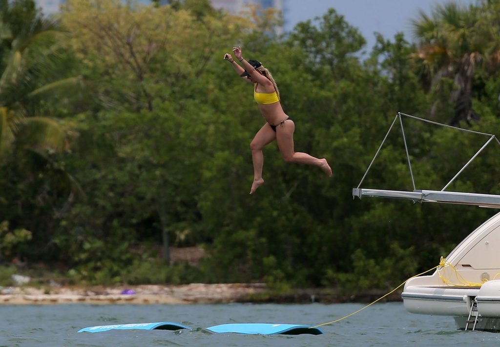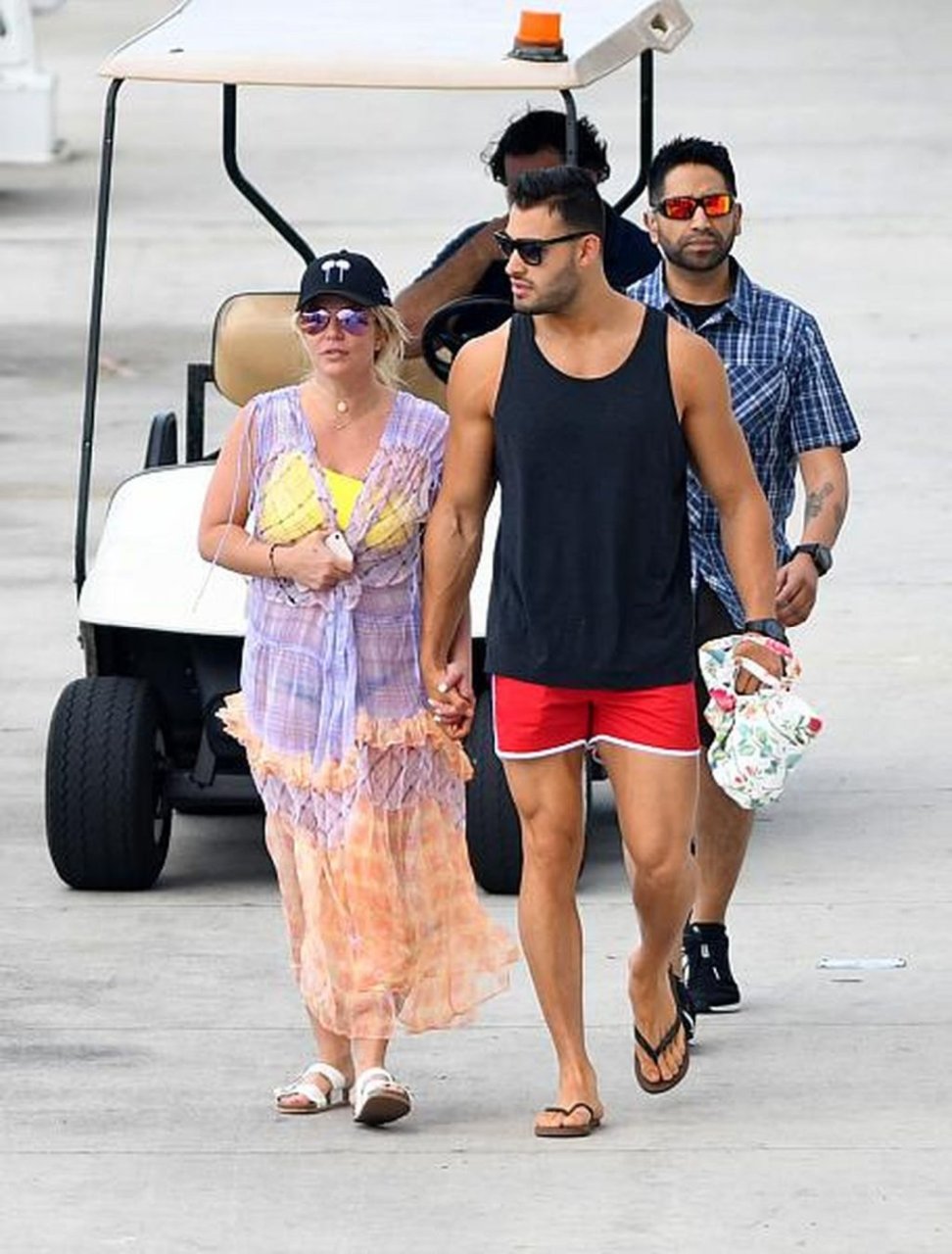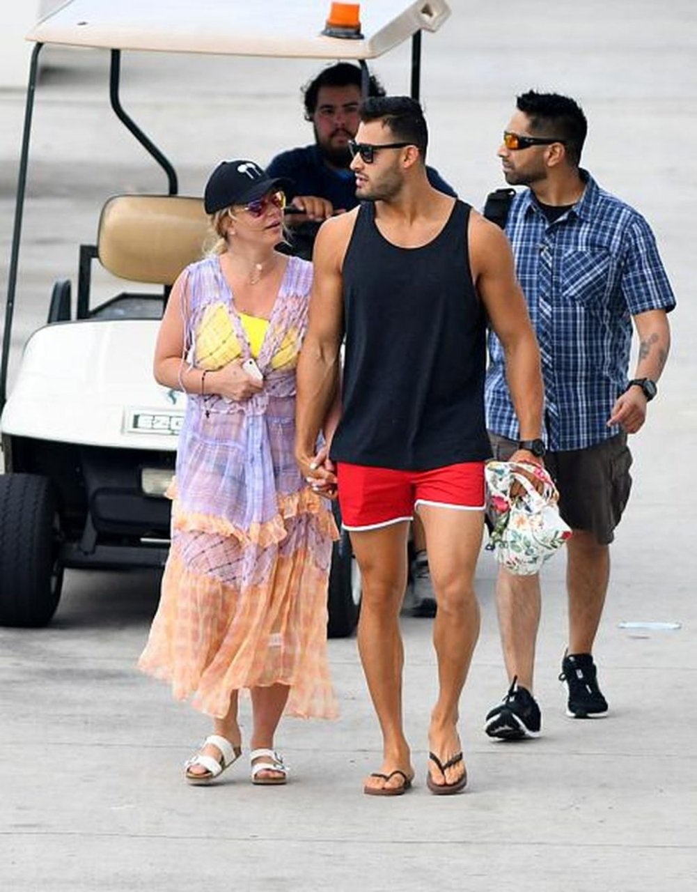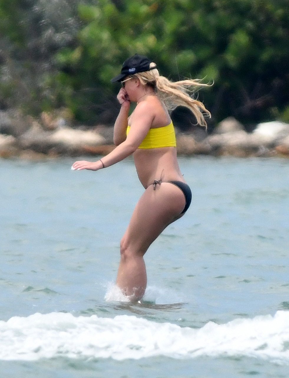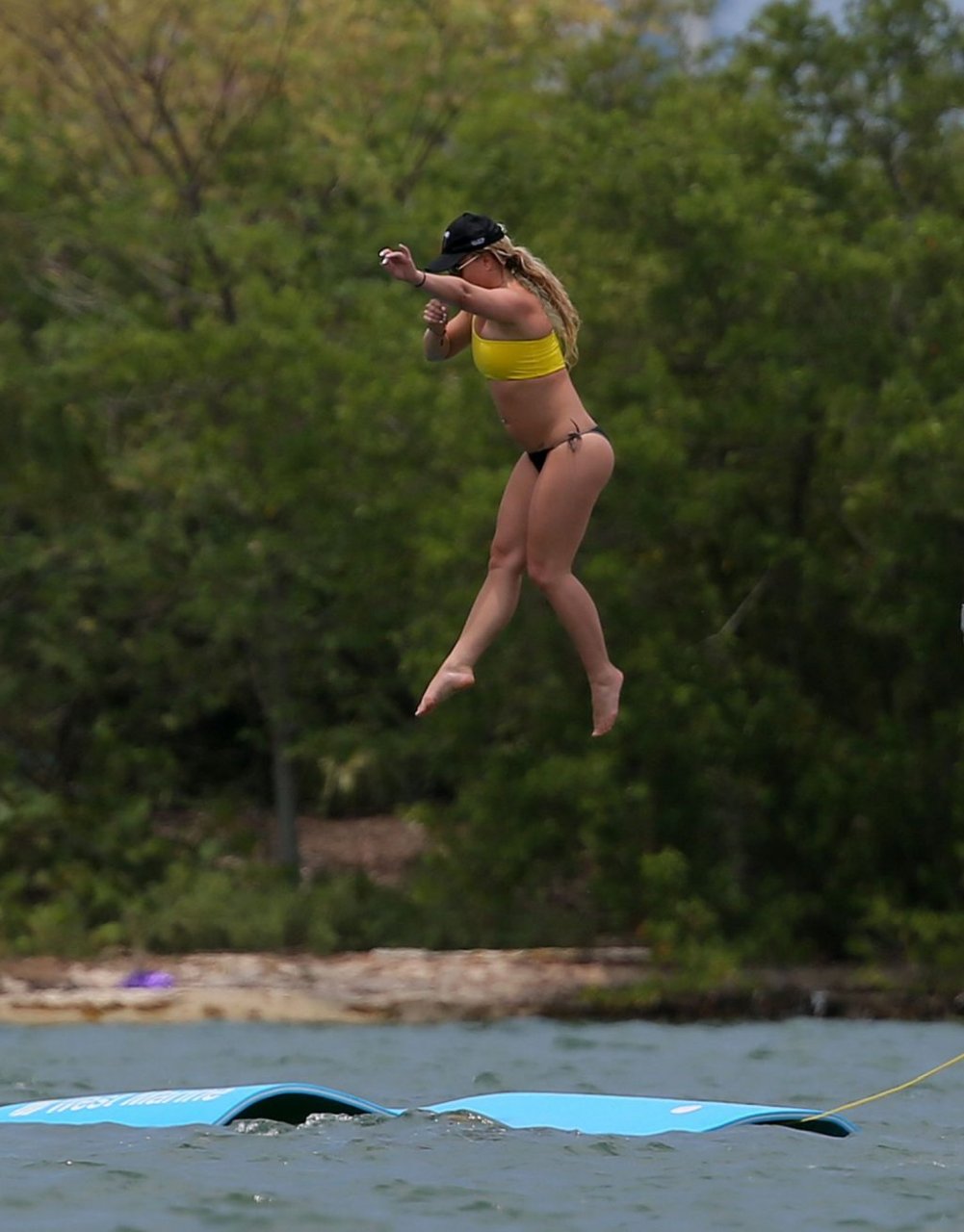 Britney Spears indossa un bikini giallo mentre trascorre un pomeriggio ricco di azione su uno yacht con il fidanzato Sam Asghari a Miami, 08/06/2019.