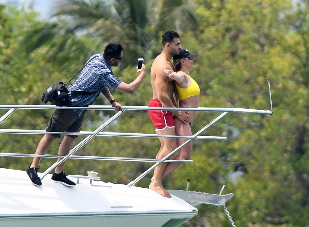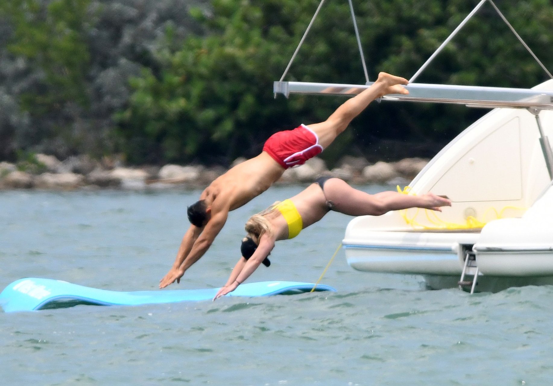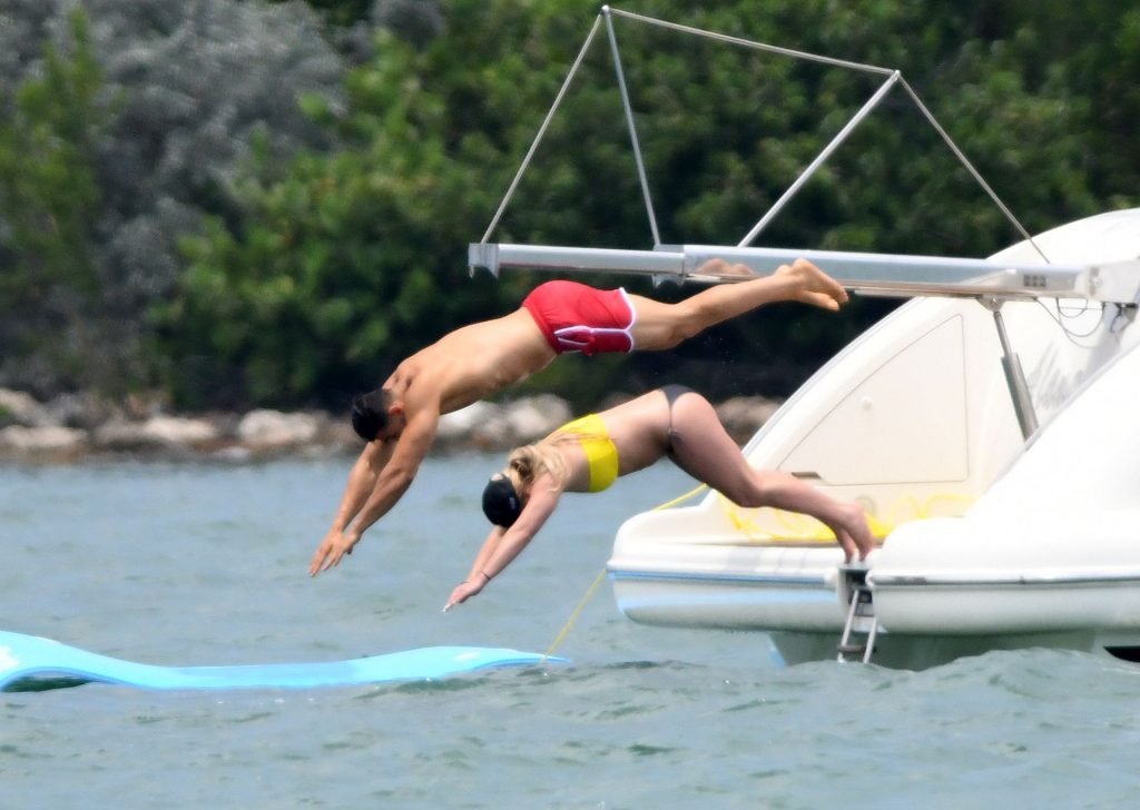 La coppia ha mostrato la loro forma tuffandosi dalla parte posteriore della barca e più tardi ha ricreato una scena di “Titanic” mentre si rilassava sulla prua. Sebbene la coppia atletica sia riuscita a fare alcune attività, sembrava che la loro preferita fosse posare in modo sexy mentre una guardia del corpo scattava foto! La cantante sembrava mettere da parte tutti i suoi problemi mentre veniva vista ridere e sorridere durante il pomeriggio ideale sull’acqua.