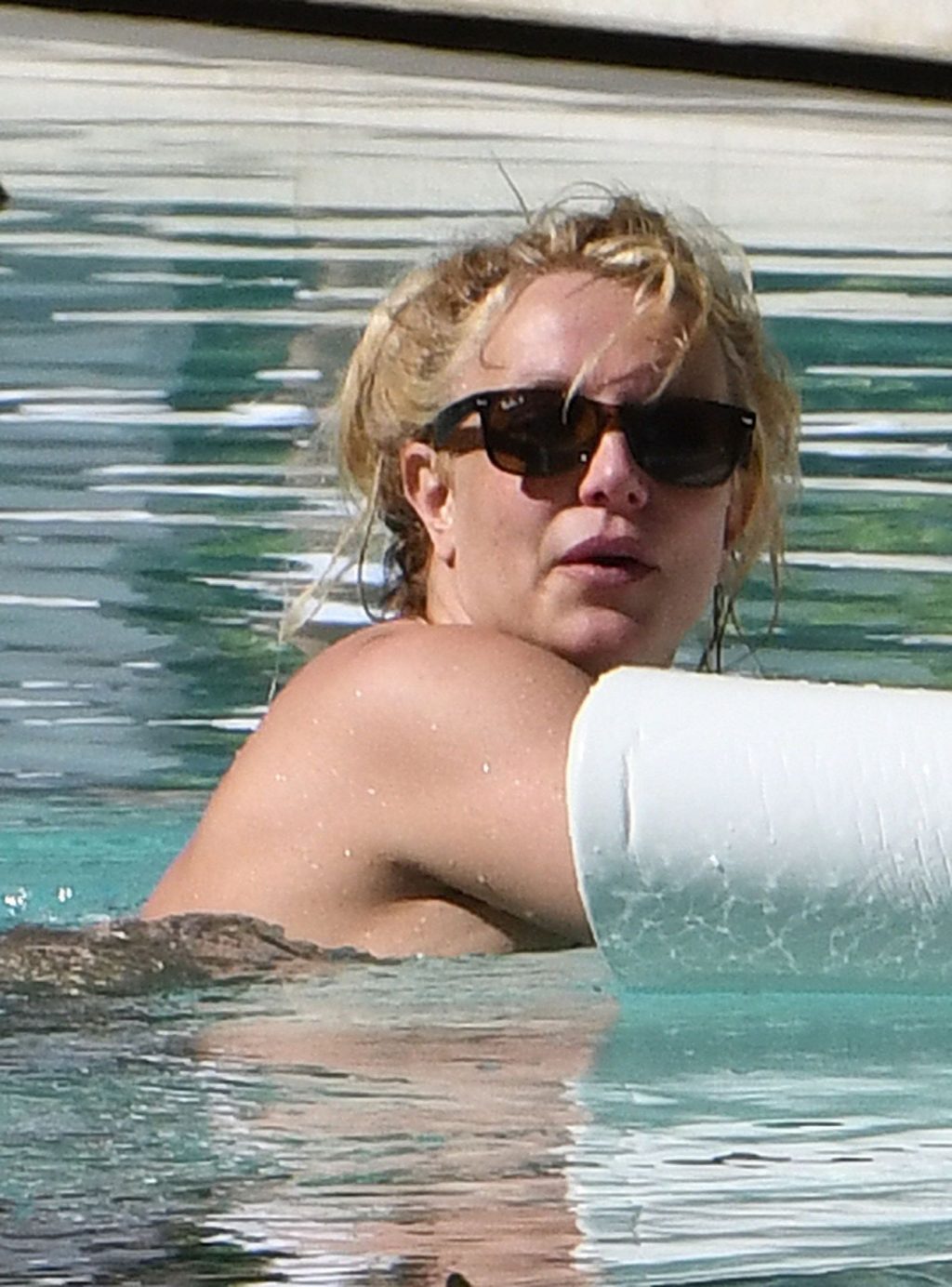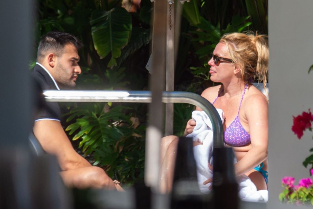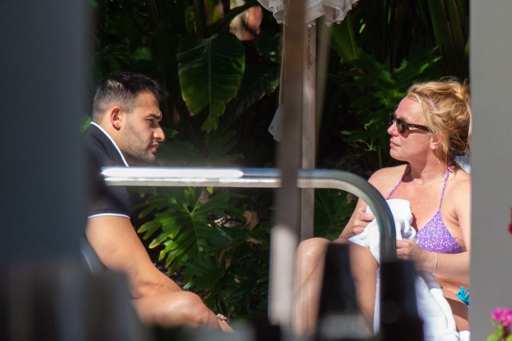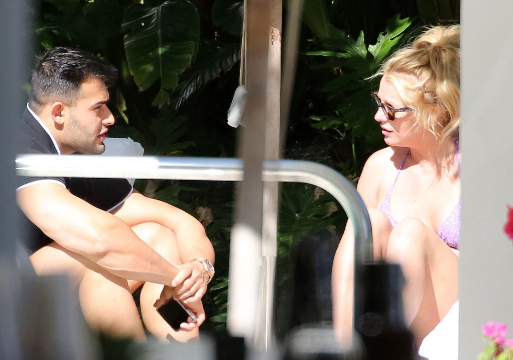 Britney sembrava felice e rilassata mentre nuotava e poi sedeva a parlare e ridere con l’istruttore di fitness Sam. La coppia è stata legata dalla fine del 2016, ma non ha ufficializzato la relazione su Instagram fino a gennaio 2017, e da allora va avanti con forza.