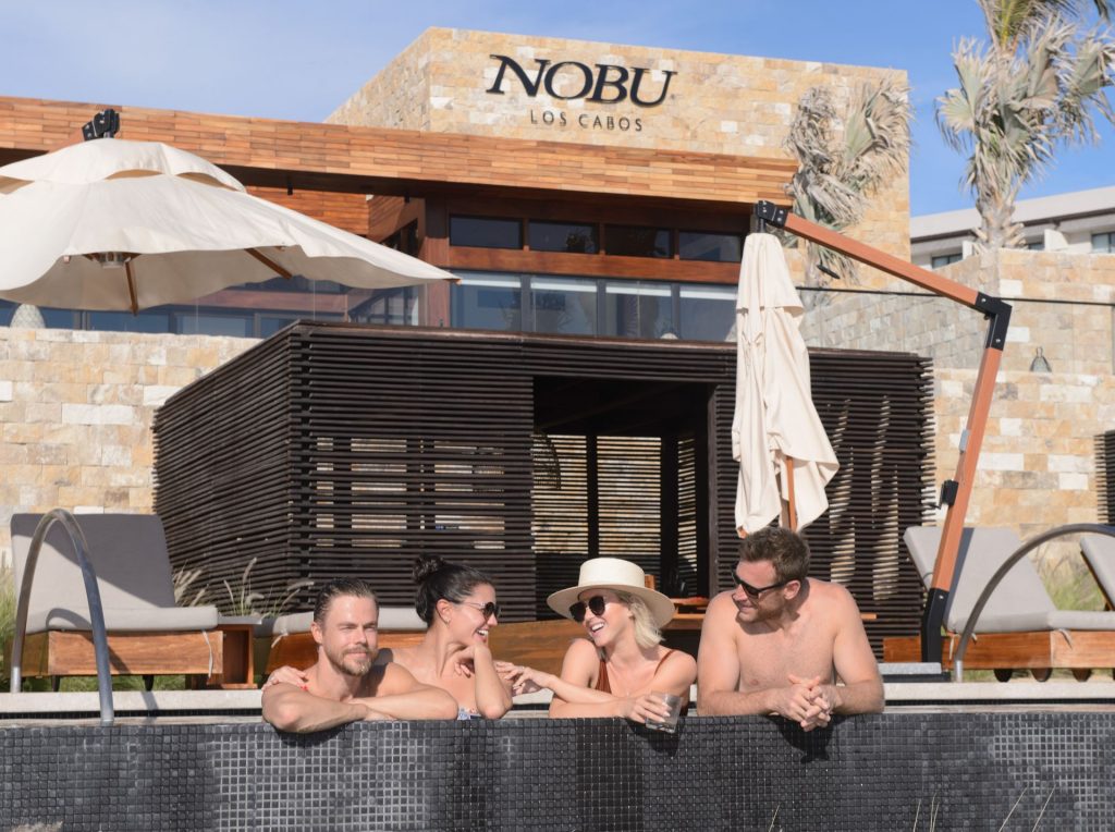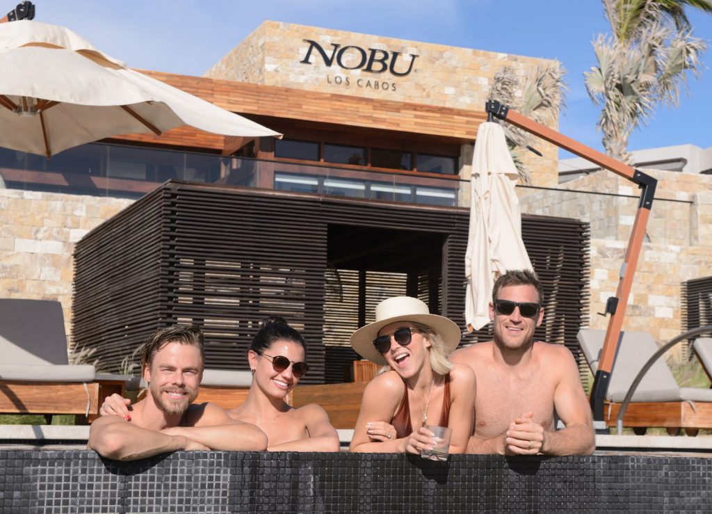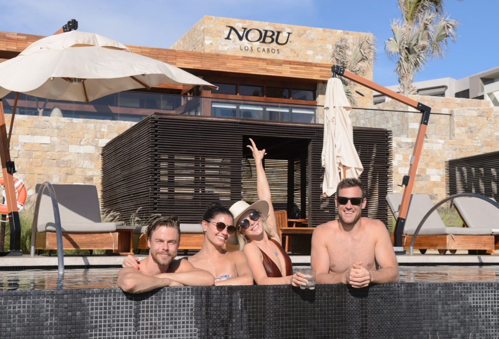 Il sexy sestetto è stato visto sudare nella palestra della struttura per una breve sessione di allenamento prima di dirigersi verso le loro cabine private dove hanno gustato margarita e gamberi aguachile a bordo piscina. Dopo una giornata di sole e nuoto in una delle tre piscine del resort, tutti si sono ritirati alla Esencia Spa per massaggi di coppia e sessioni di idroterapia. Quando il sole ha iniziato a tramontare, il gruppo ha scelto di bere cocktail sul patio del ristorante Nobu per ammirare un tramonto mozzafiato su Cabo San Lucas in tutto il suo splendore.
