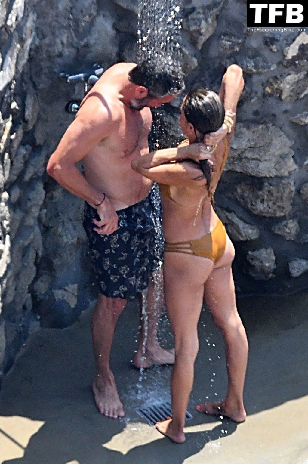La personalità televisiva americana Brooke Burke sembra incredibile mentre si tuffa nel mare con il suo fidanzato Scott Rigsby durante una vacanza in famiglia a Positano, Italia, 25/07/2022.