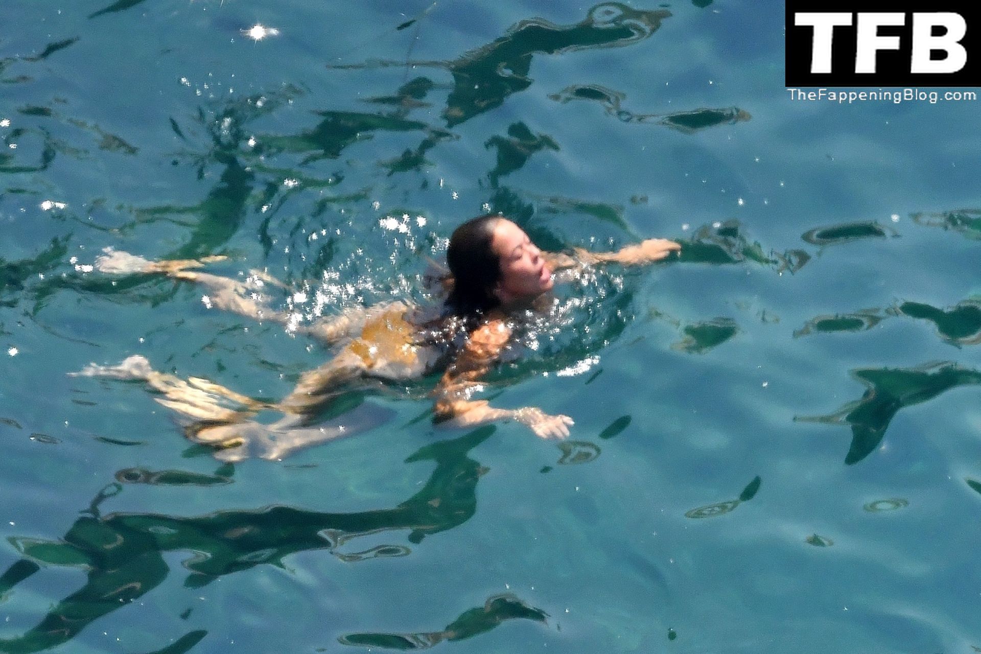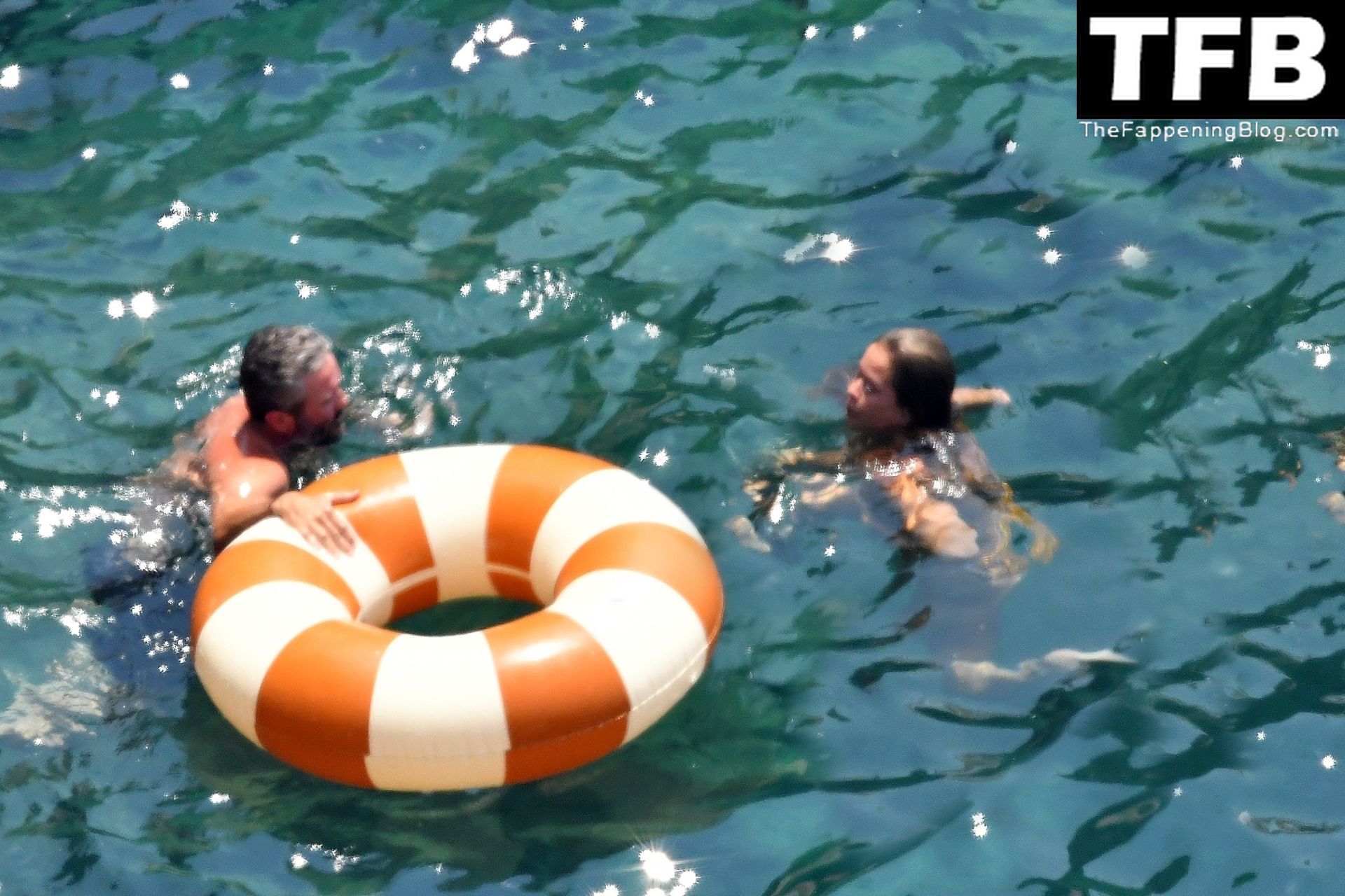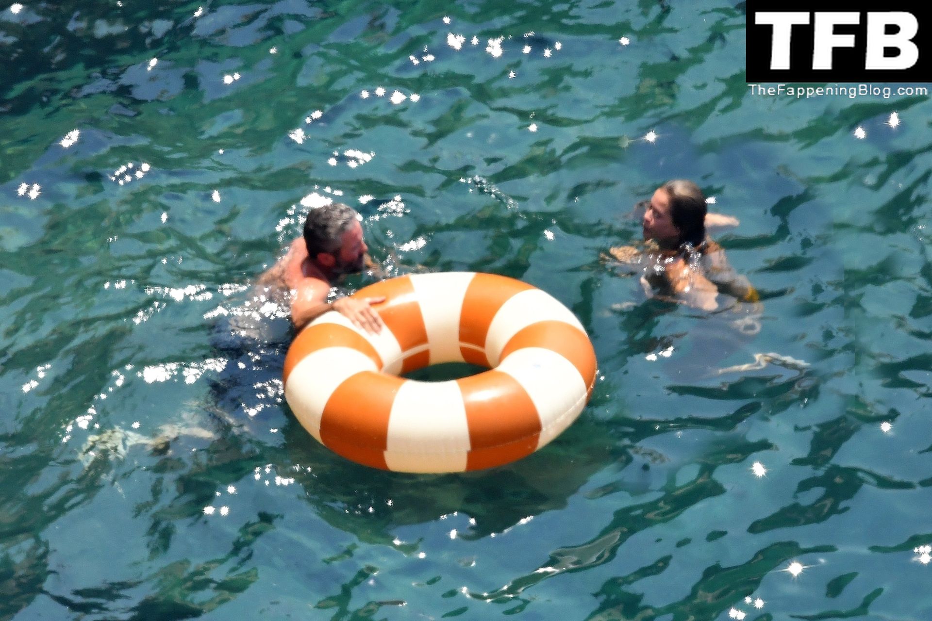 La personalità televisiva americana Brooke Burke sembra incredibile mentre si tuffa nel mare con il suo fidanzato Scott Rigsby durante una vacanza in famiglia a Positano, Italia, 25/07/2022.