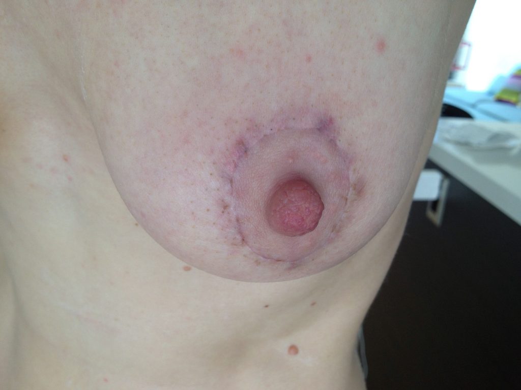 Non tolgono l'intero capezzolo per gli impianti. Tagliano un semicerchio nella parte inferiore. Forse qualche tipo di mastectomia invece?
