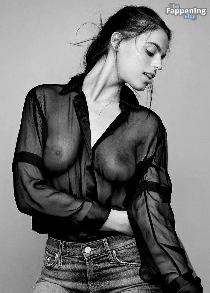 Brooks Nader si mostra con le sue tette perfette completamente in vista in un top trasparente per un servizio fotografico super provocante, tutto catturato da James Bartolozzi.
