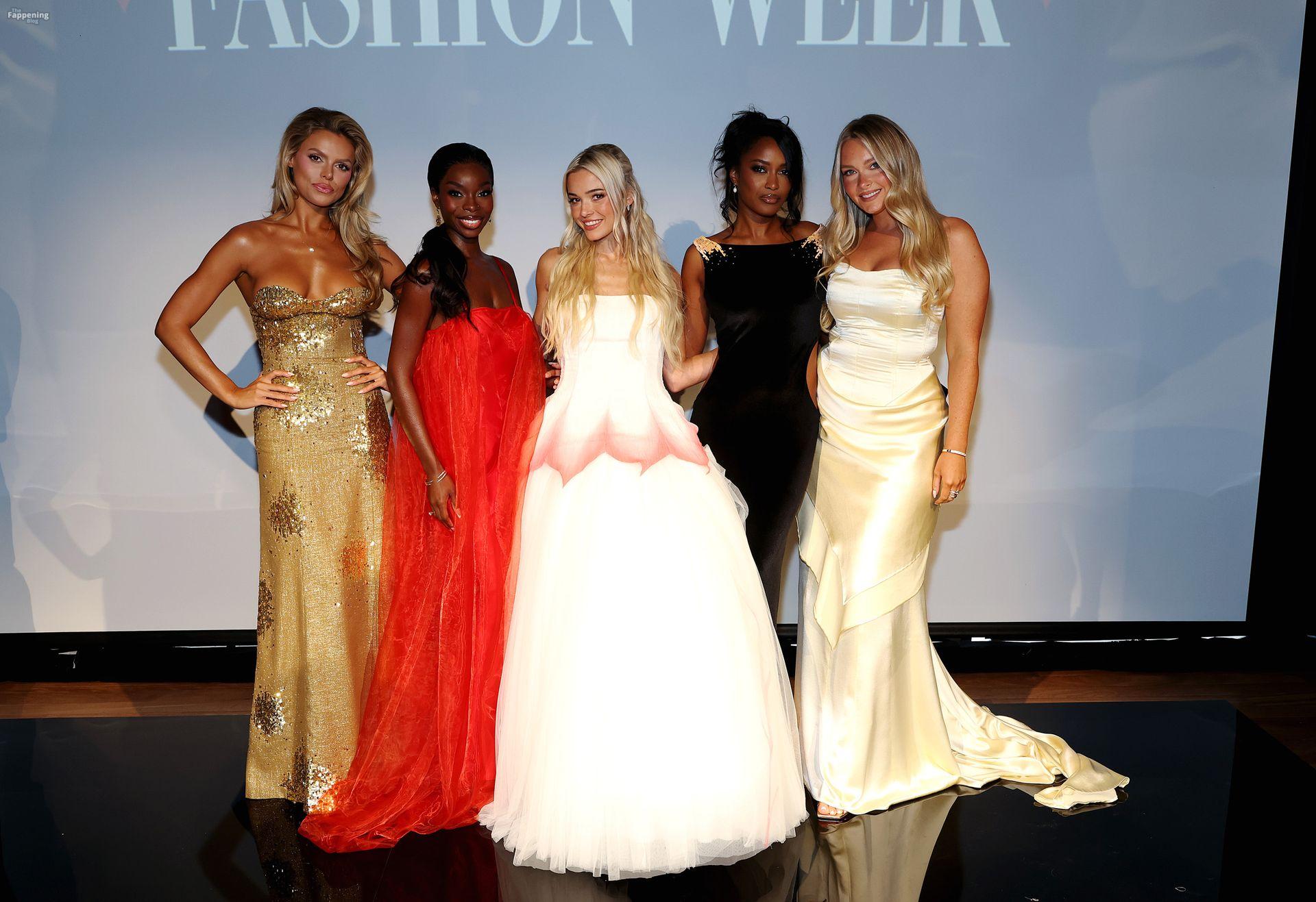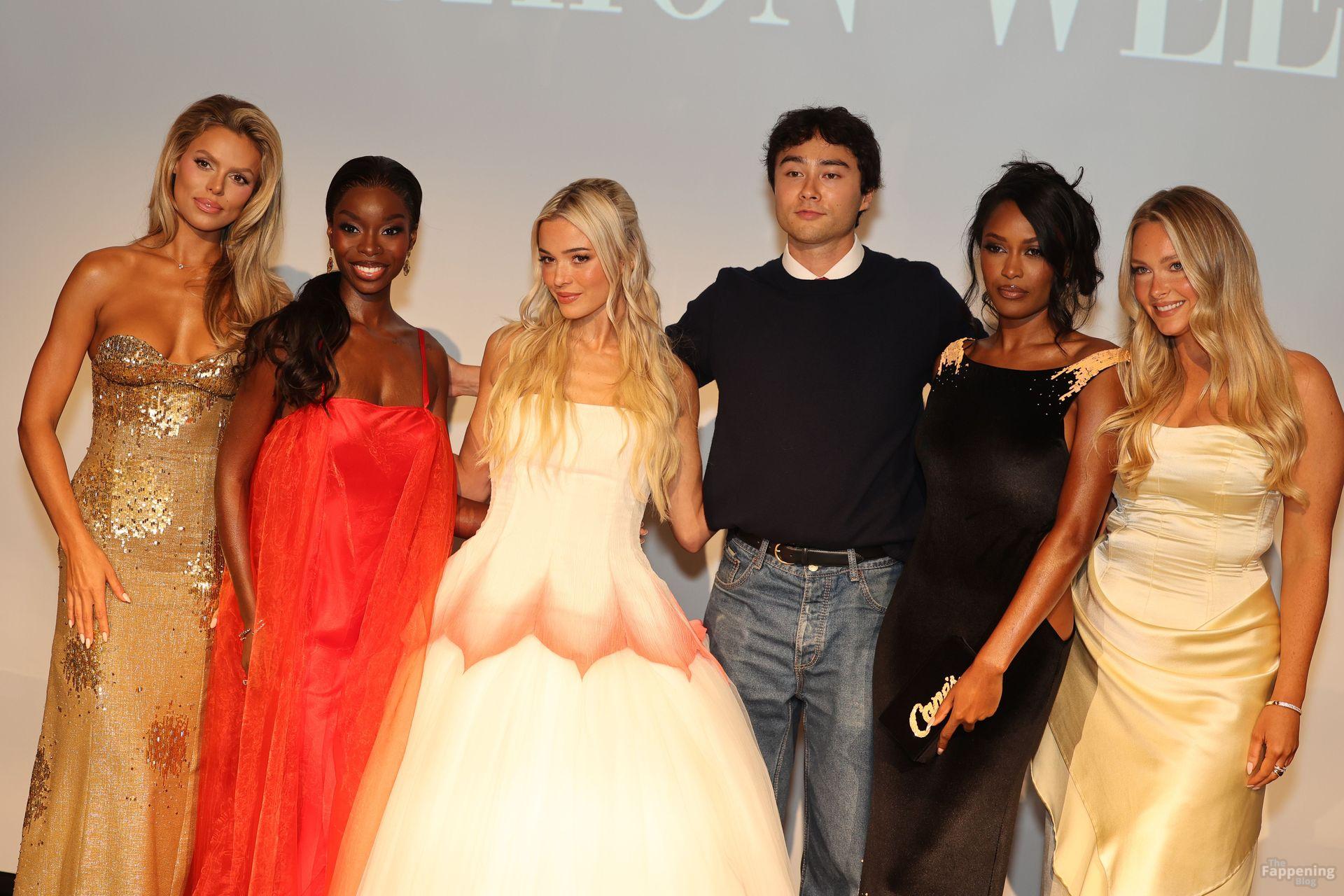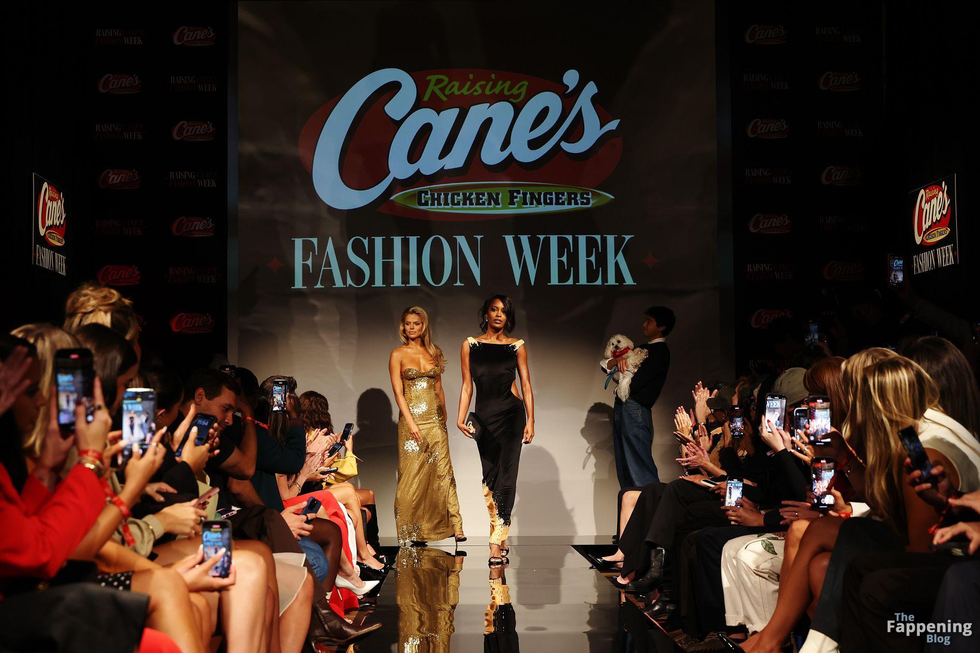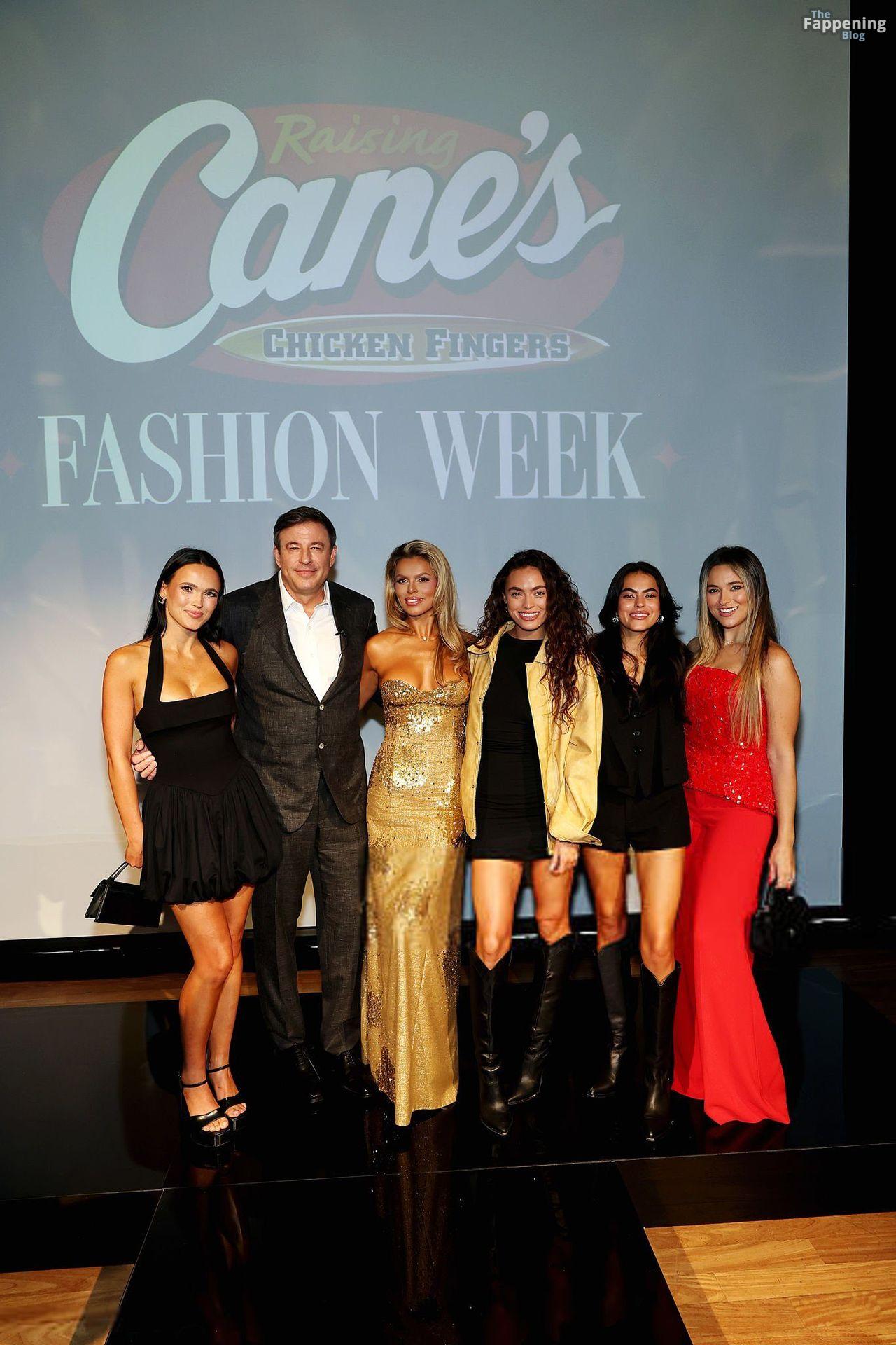 Brooks Nader mostrava un décolleté importante in un abito dorato senza spalline alla sfilata di moda Raisin’ Cane’s al The Standard High Line di New York.