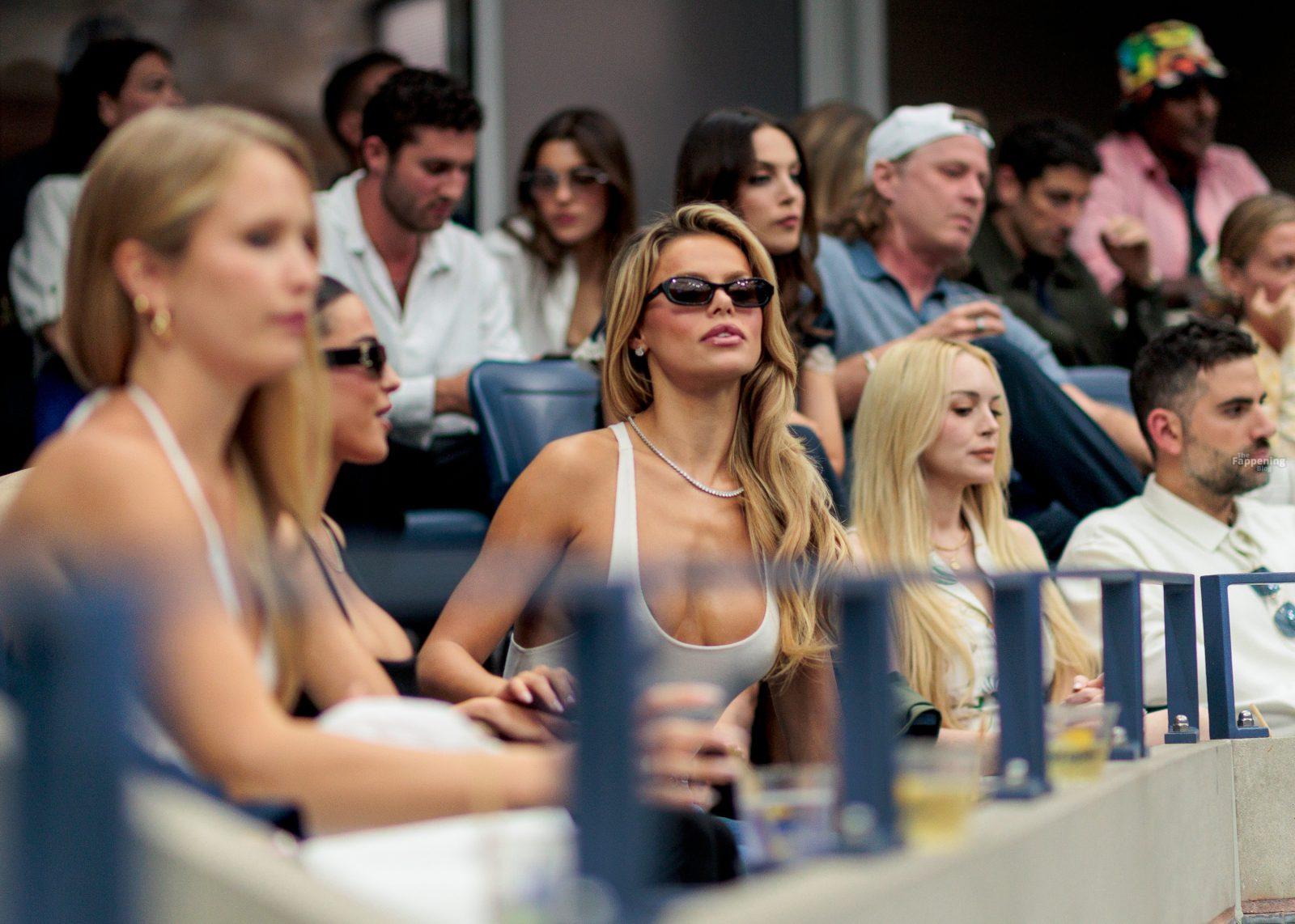Modella e star della TV reality Brooks Nader è andata senza reggiseno agli US Open, indossando una canottiera scollata che è stata a un passo da uno slip al seno proprio vicino al campo.
