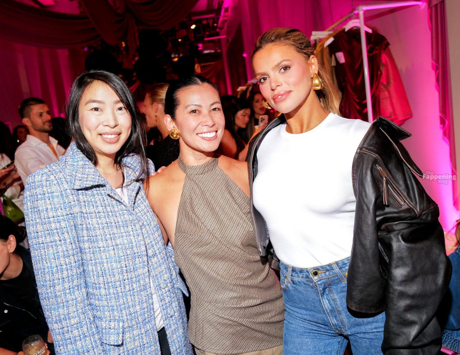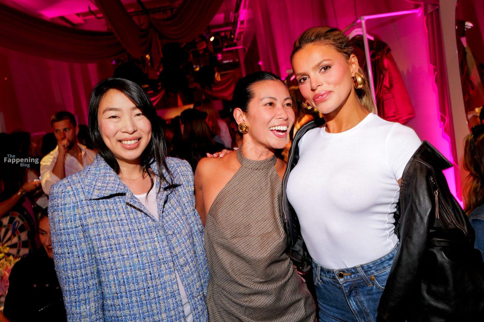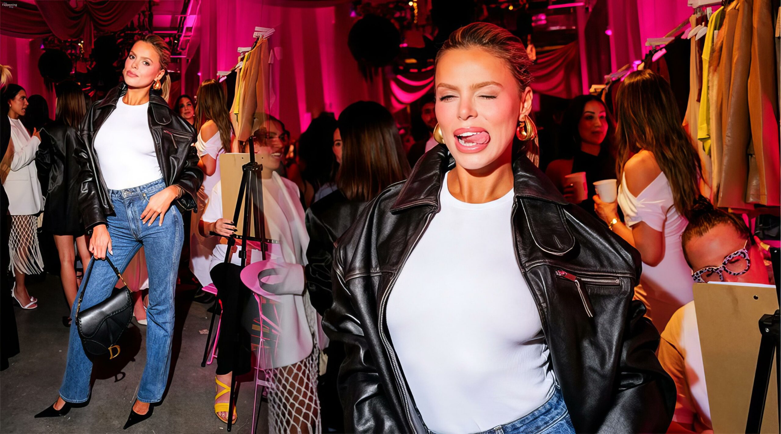 Dai un’occhiata a Brooks Nader alla festa Pop-Up Vivrelle x REVOLVE|FWRD NYFW a NYC il 11/09/2025, con una maglietta bianca aderente, jeans e giacca di pelle.