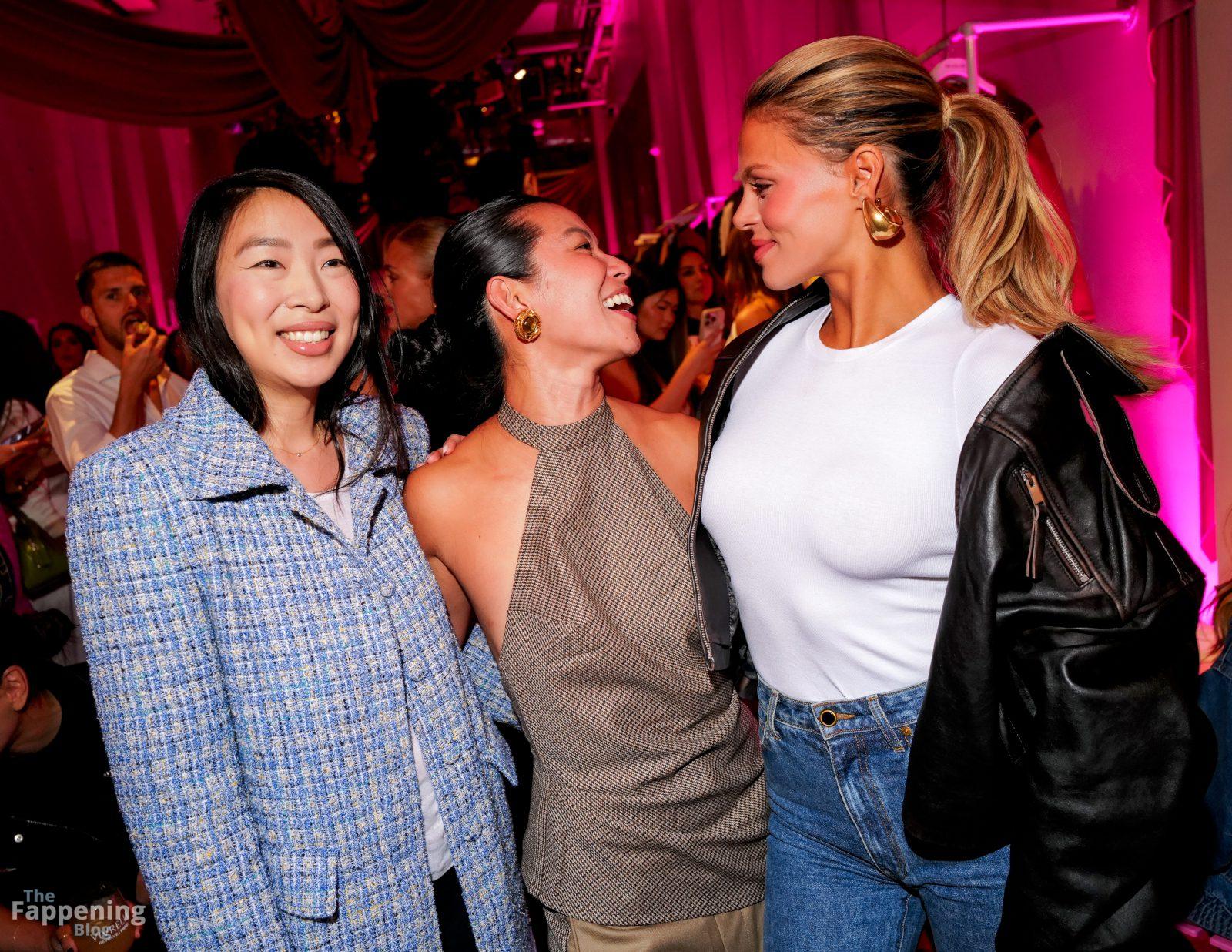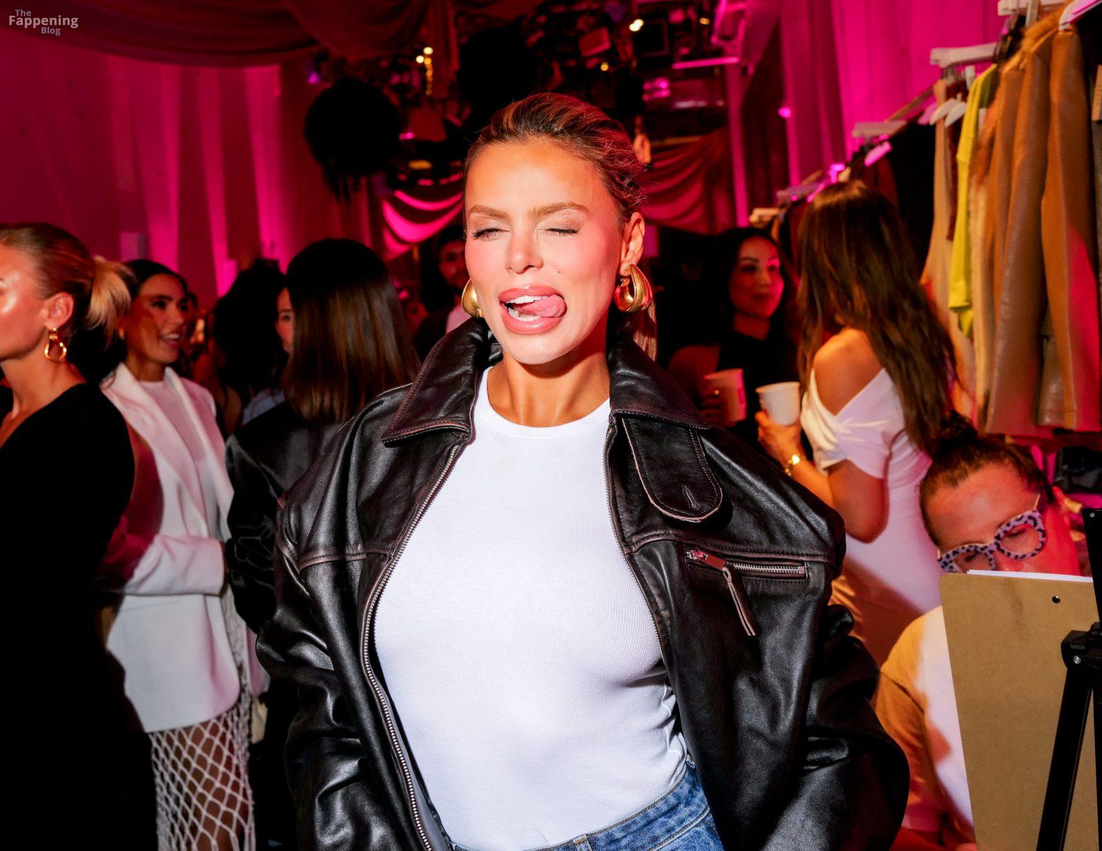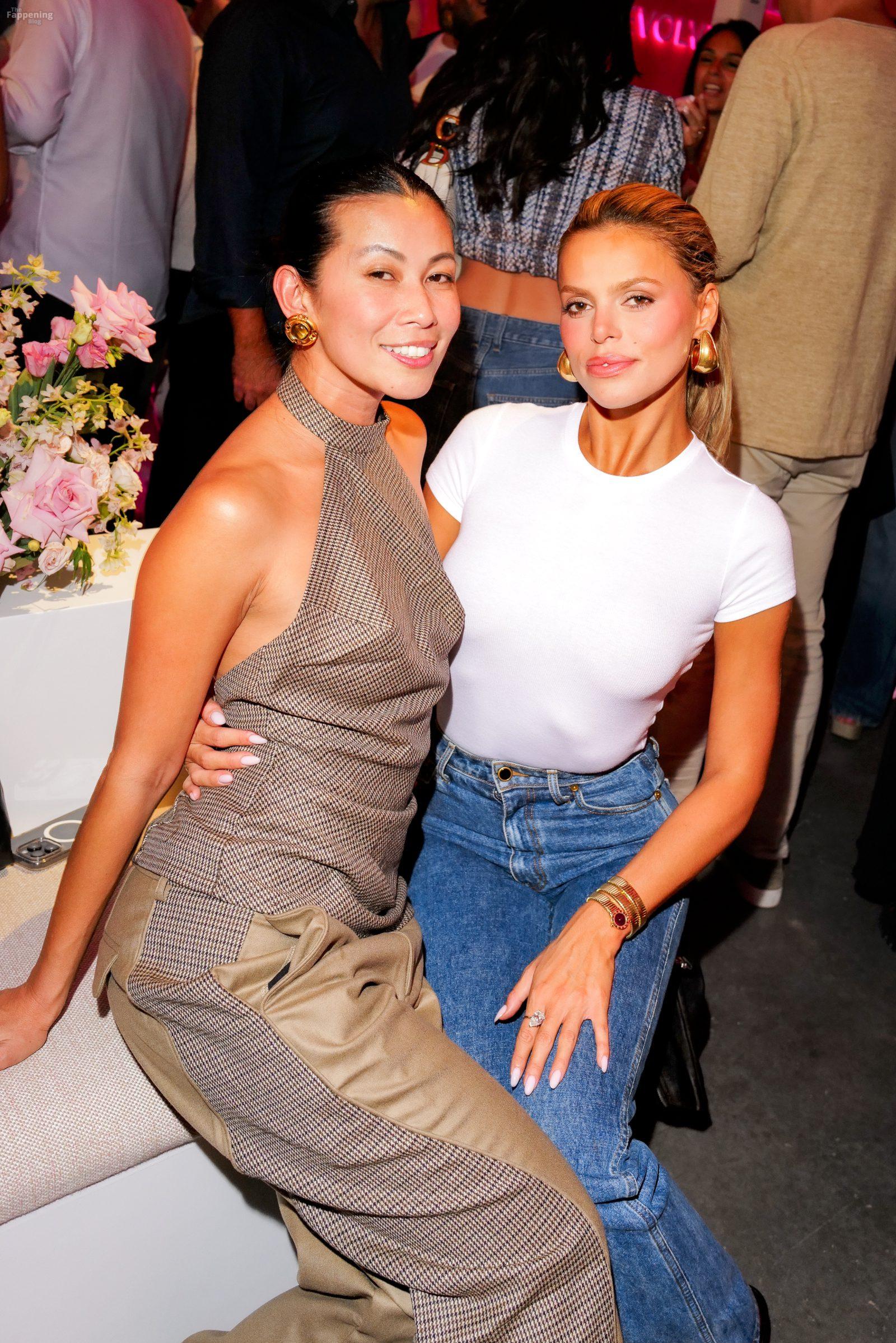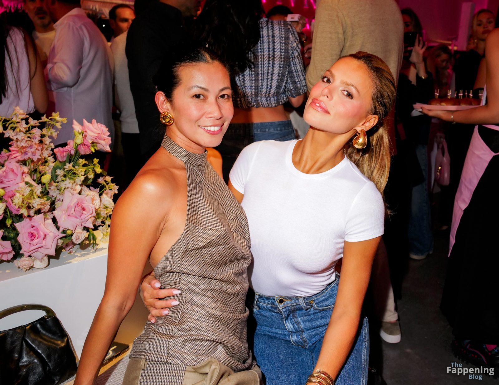 Dai un’occhiata a Brooks Nader alla festa Pop-Up Vivrelle x REVOLVE|FWRD NYFW a NYC il 11/09/2025, con una maglietta bianca aderente, jeans e giacca di pelle.