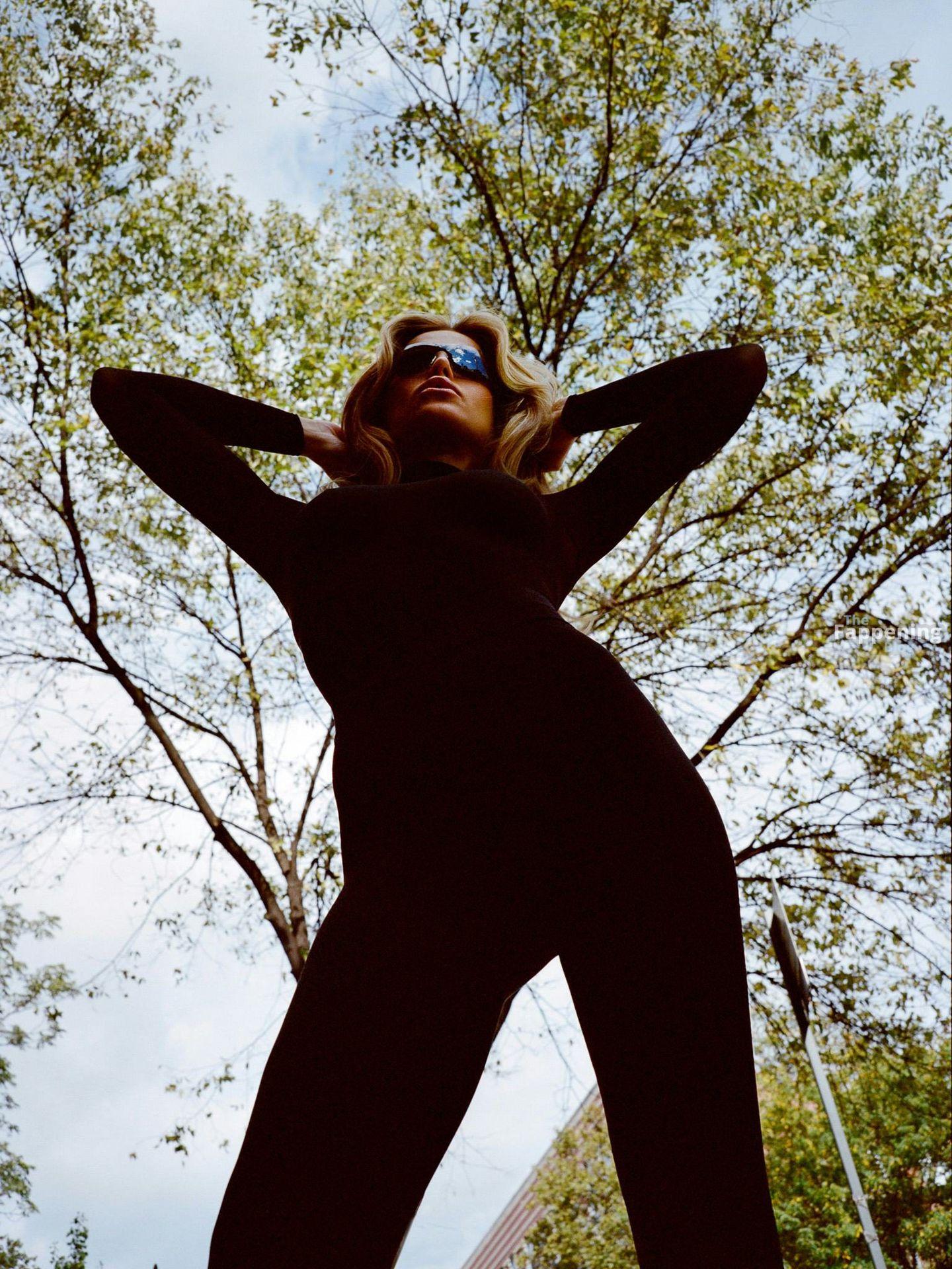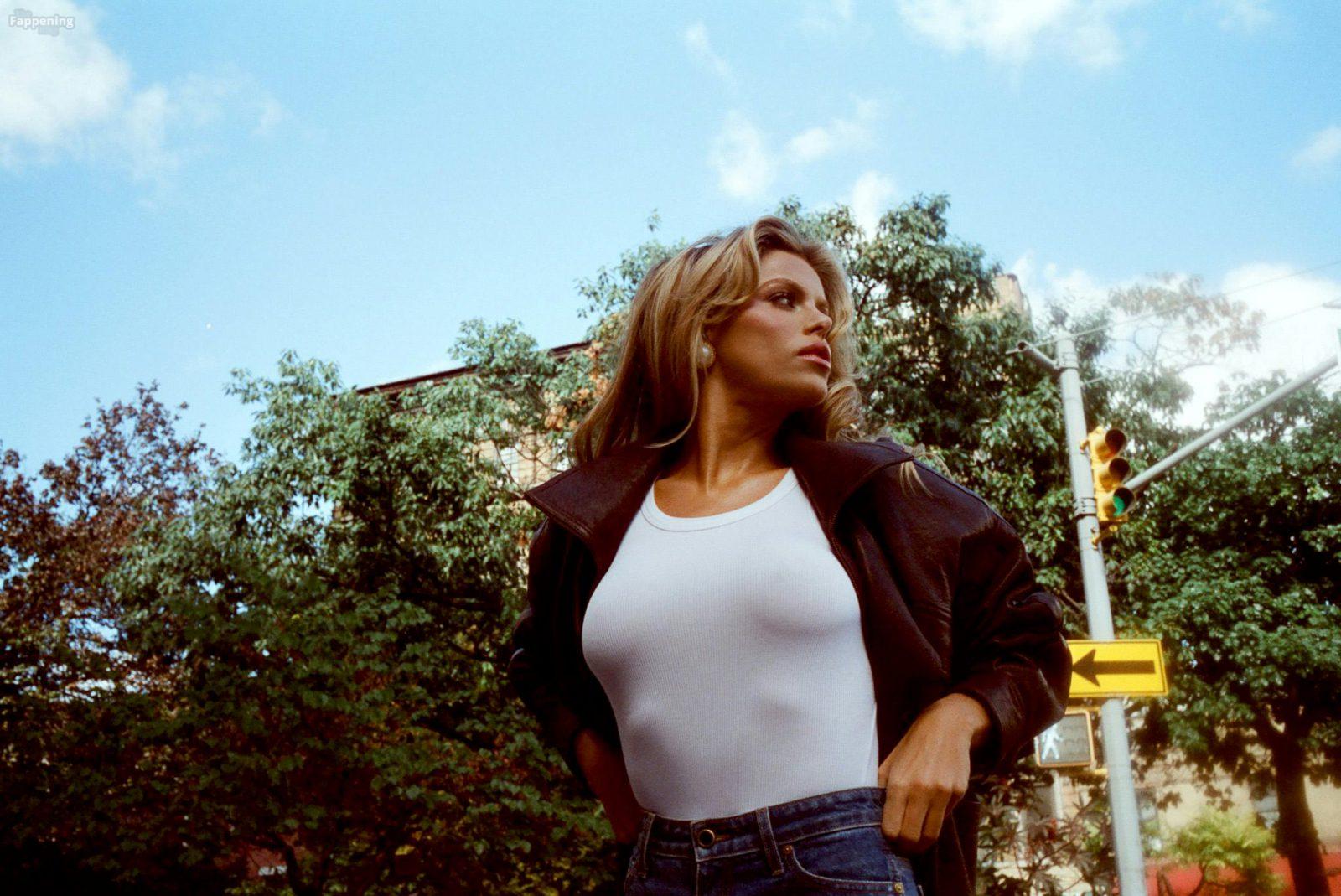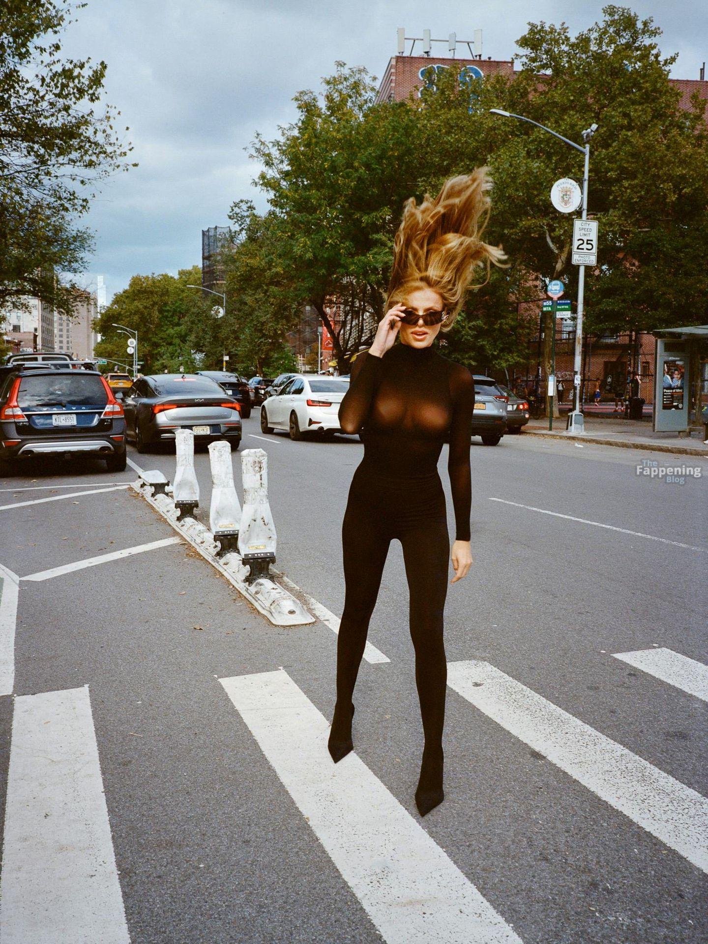 Brooks Nader si è presentata per il servizio fotografico del numero di novembre 2025 di Bustle magazine a NYC, indossando una body attillata in rete nera.