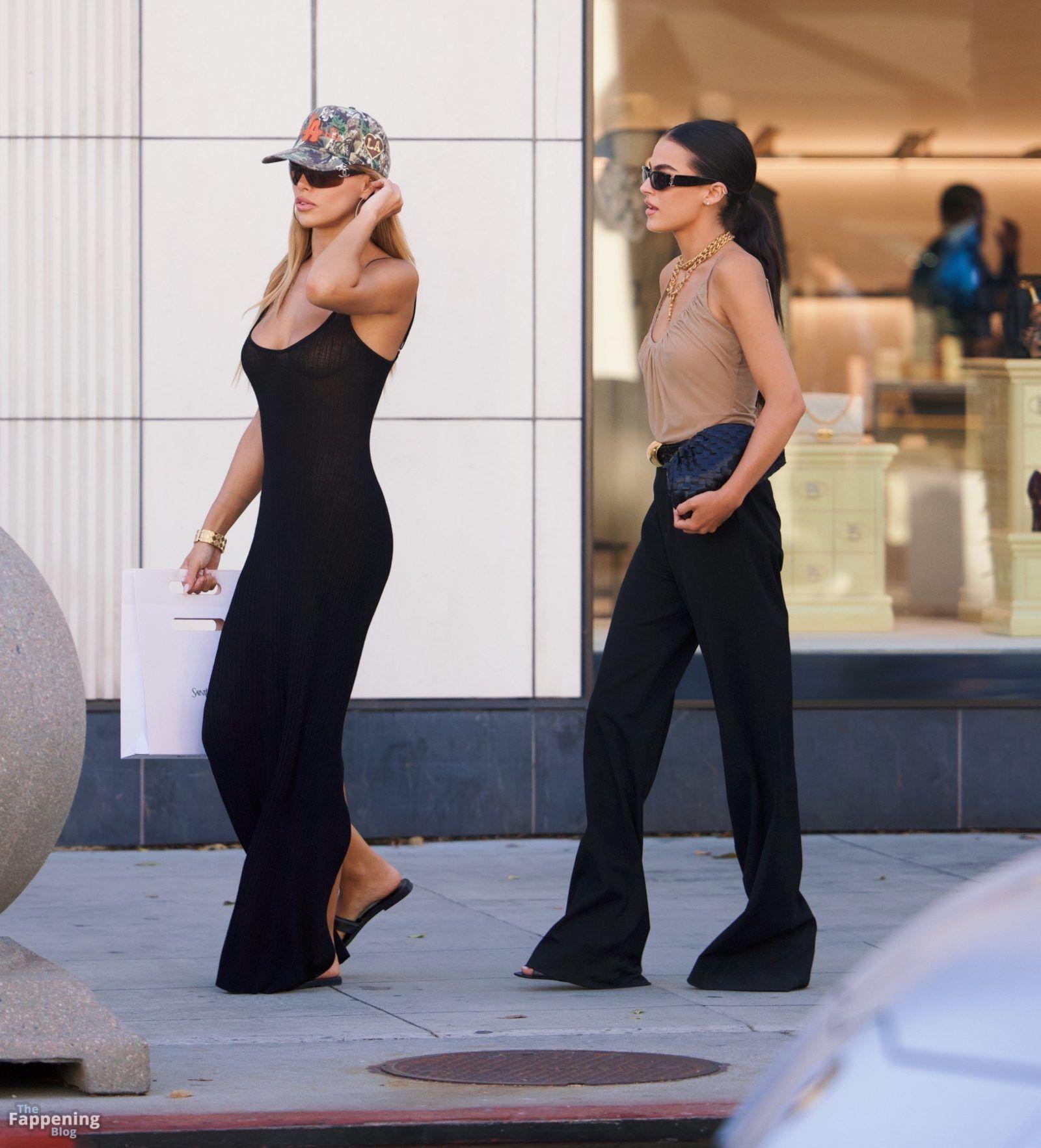 Modella Brooks Nader cammina senza reggiseno, indossando un vestito trasparente a Beverly Hills.