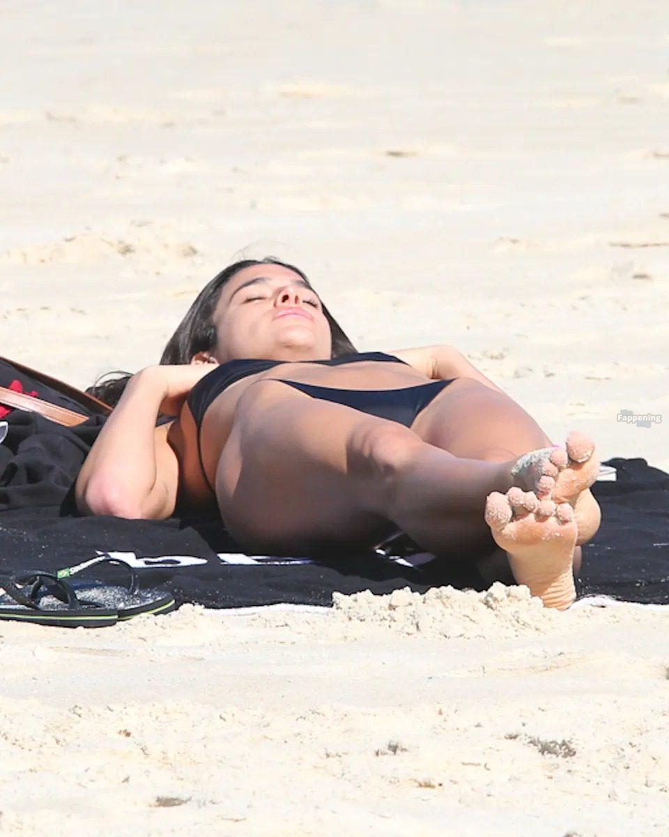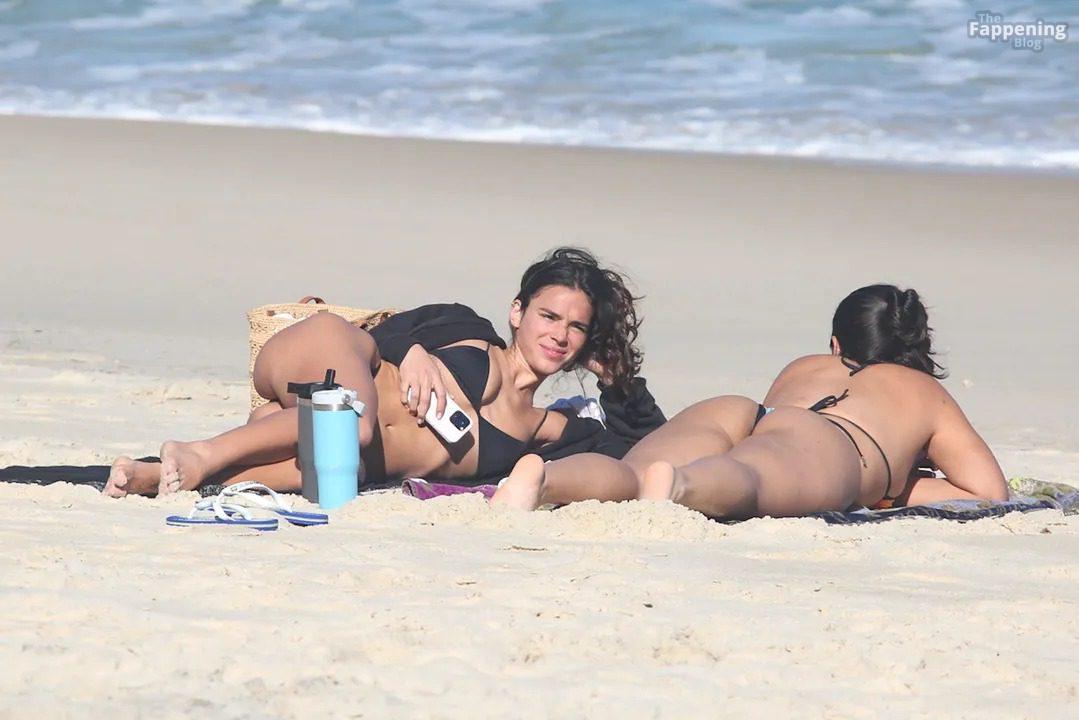 Bruna Marquezine mostra la sua figura sexy mentre si gode la spiaggia di São Conrad con un bikini perizoma nero.
