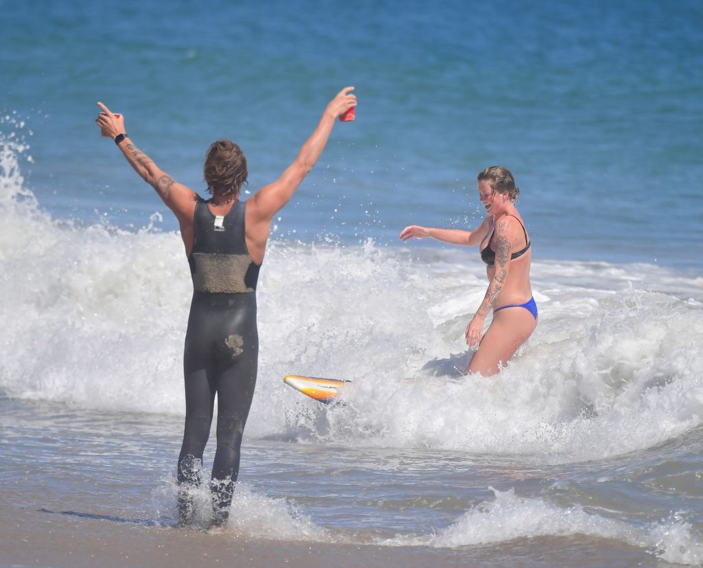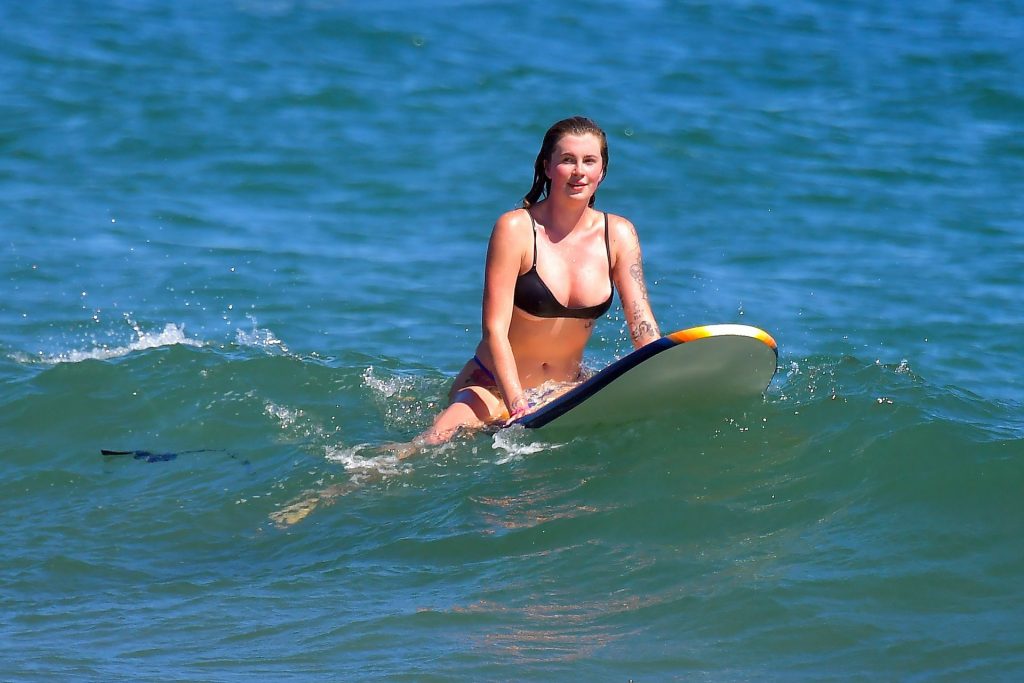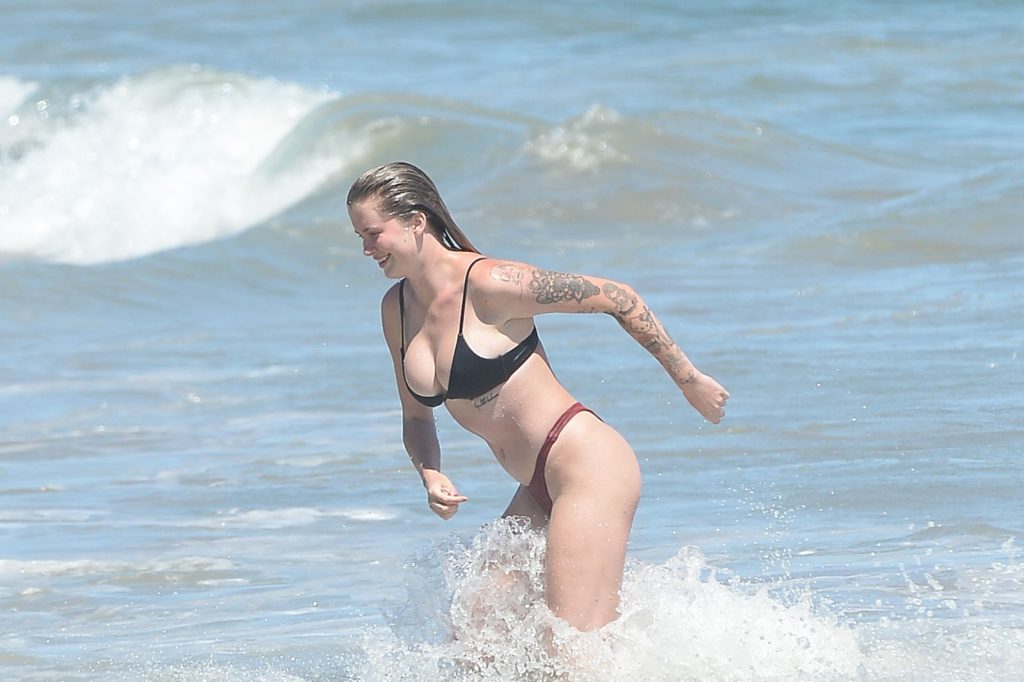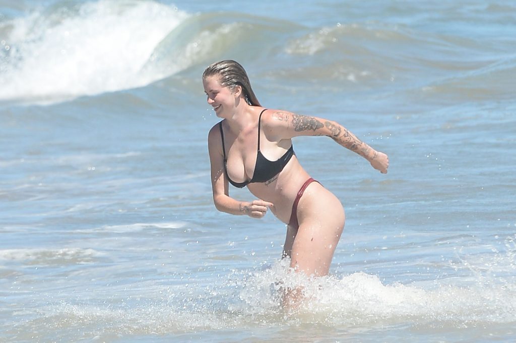 Ireland Baldwin è stata fotografata mentre si gode una giornata in spiaggia a Malibu con amici, 17/07/2020. La modella di 24 anni si è tuffata in mare per una nuotata indossando un bikini nero a due pezzi.