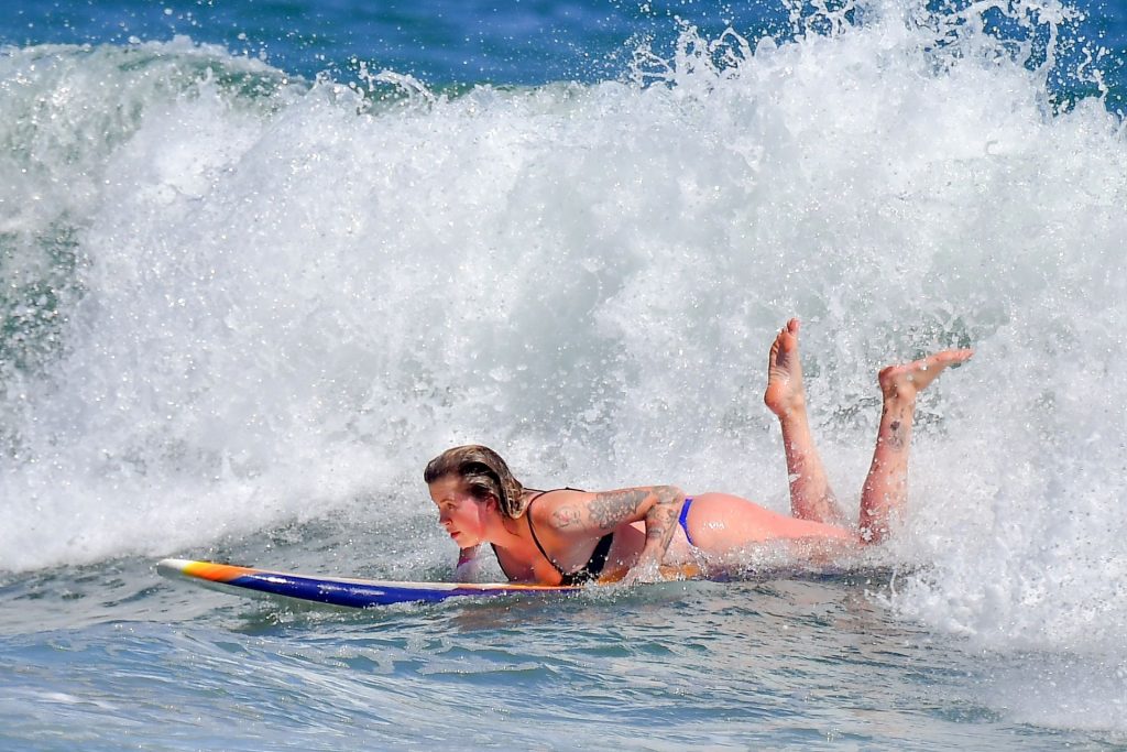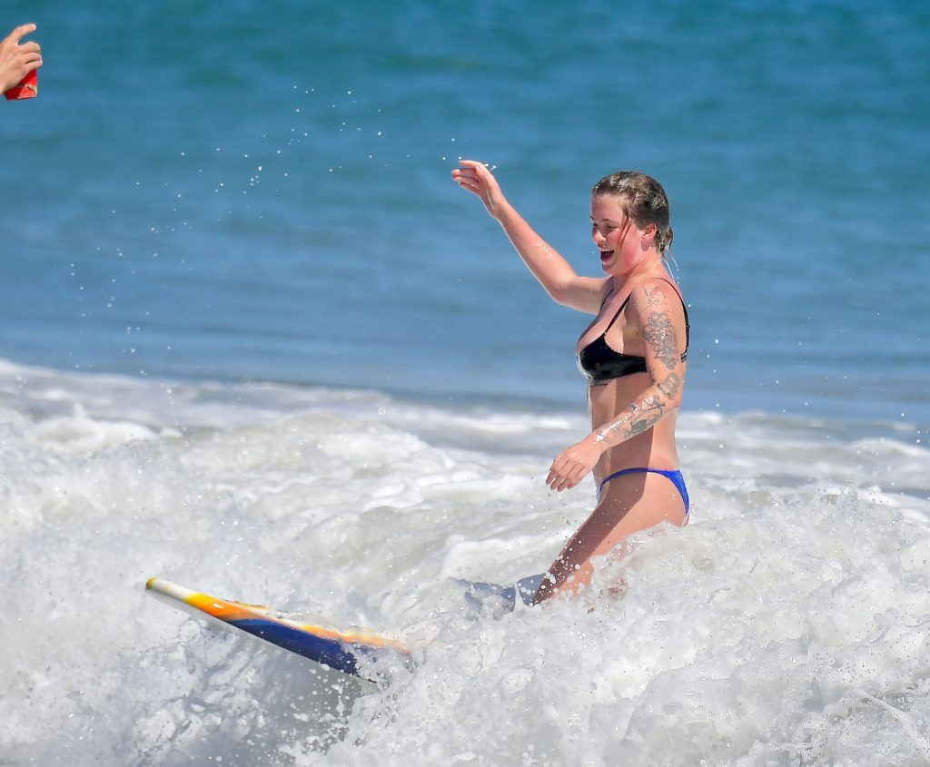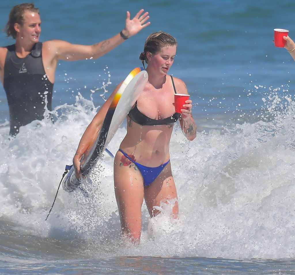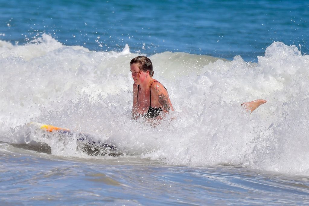 Ireland Baldwin è stata fotografata mentre si gode una giornata in spiaggia a Malibu con amici, 17/07/2020. La modella di 24 anni si è tuffata in mare per una nuotata indossando un bikini nero a due pezzi.