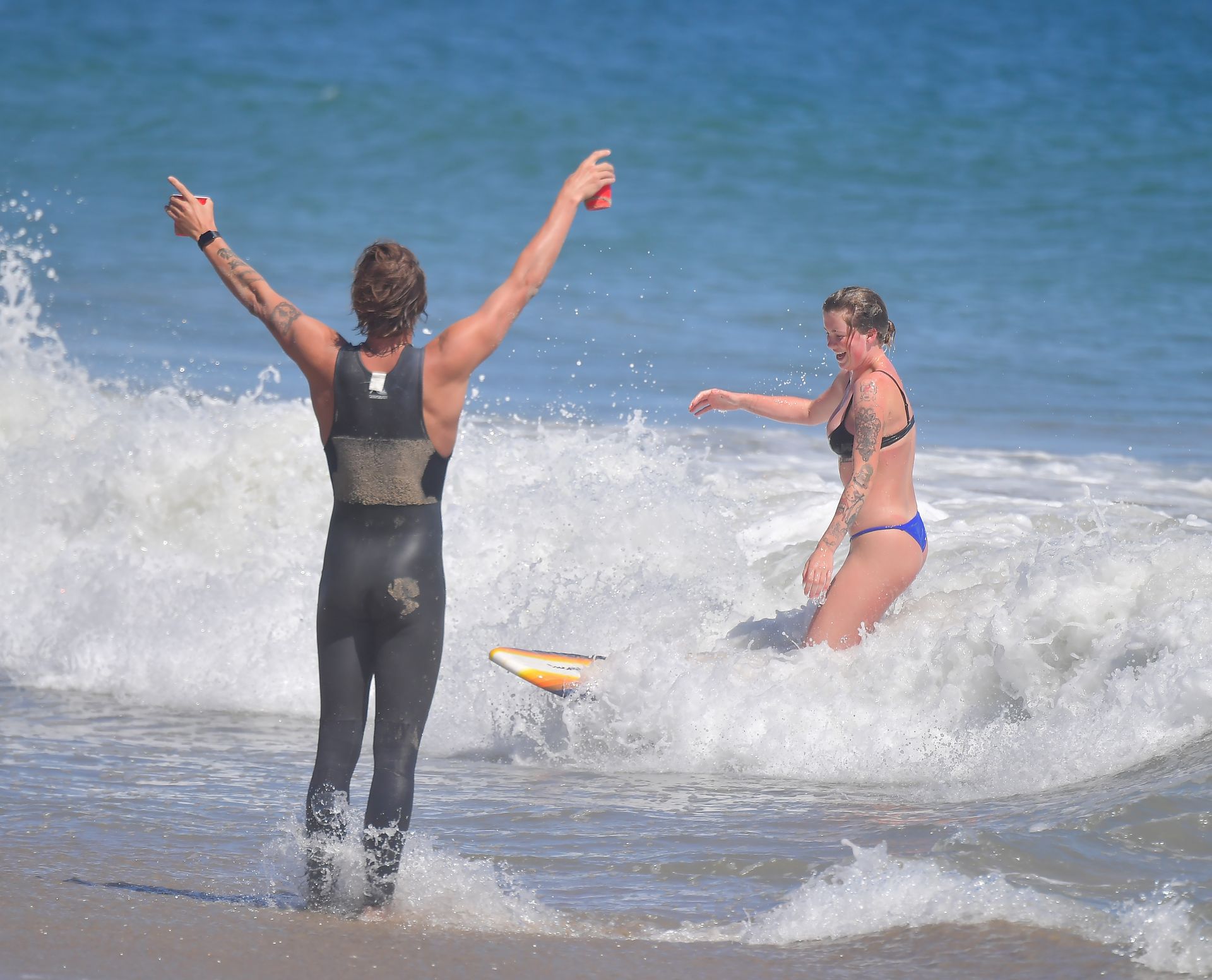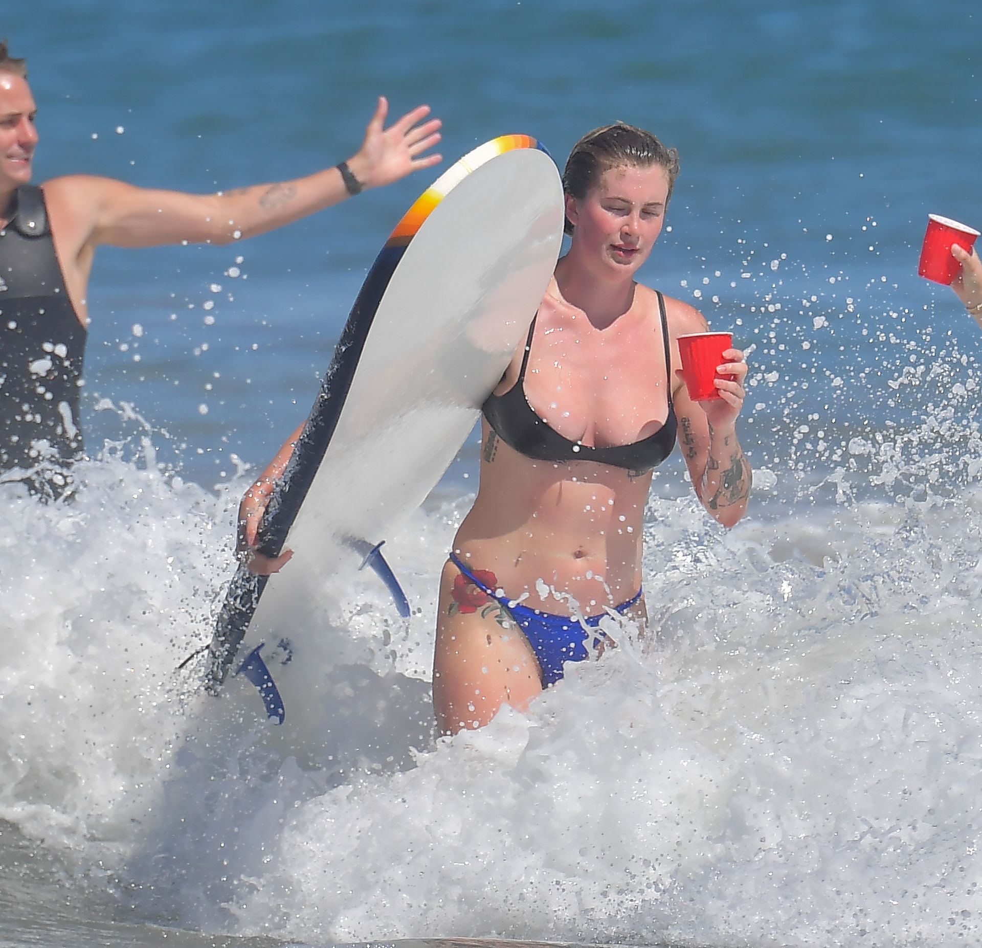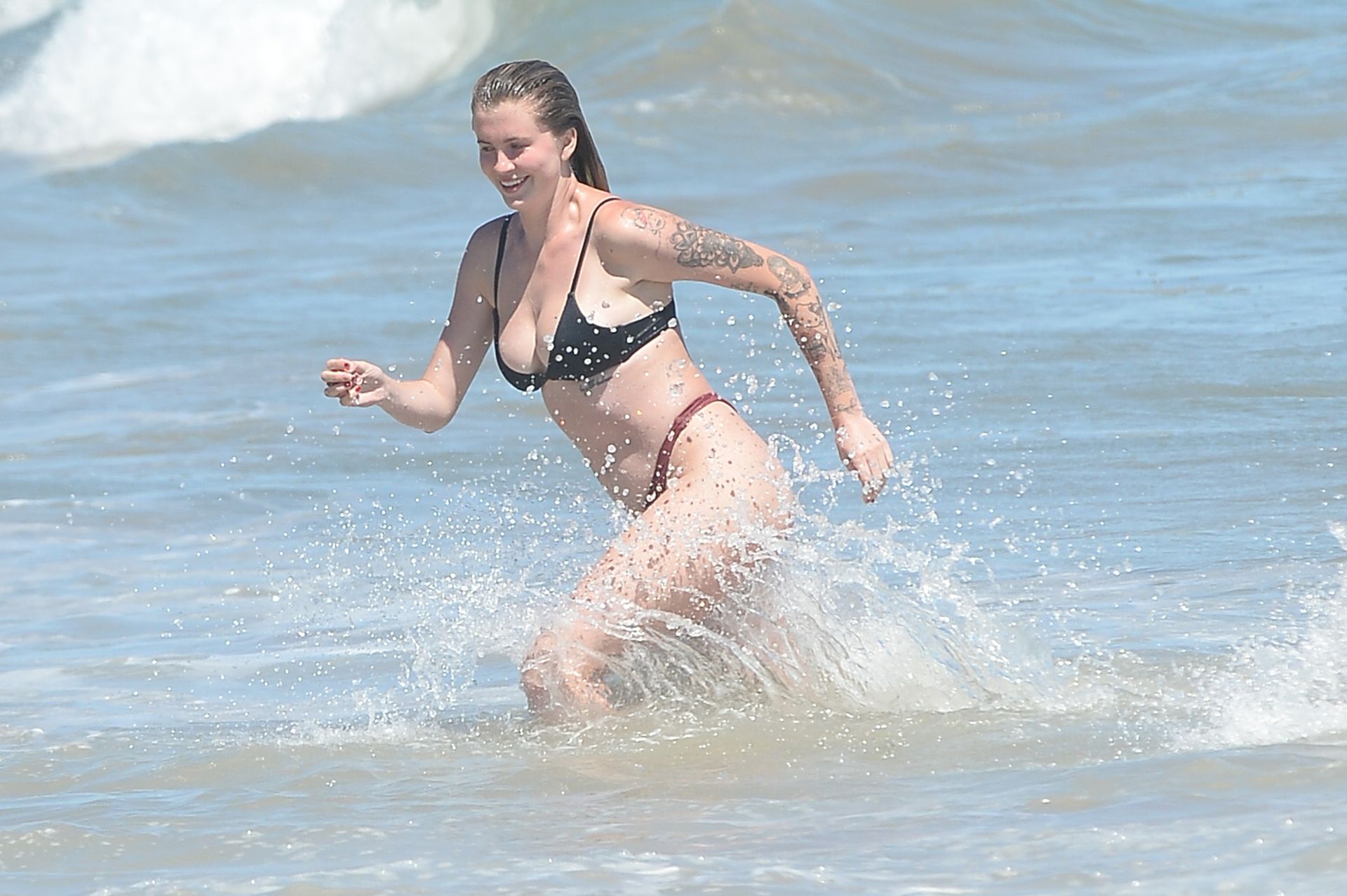 Ireland Baldwin è stata fotografata mentre si gode una giornata in spiaggia a Malibu con amici, 17/07/2020. La modella di 24 anni si è tuffata in mare per una nuotata indossando un bikini nero a due pezzi.