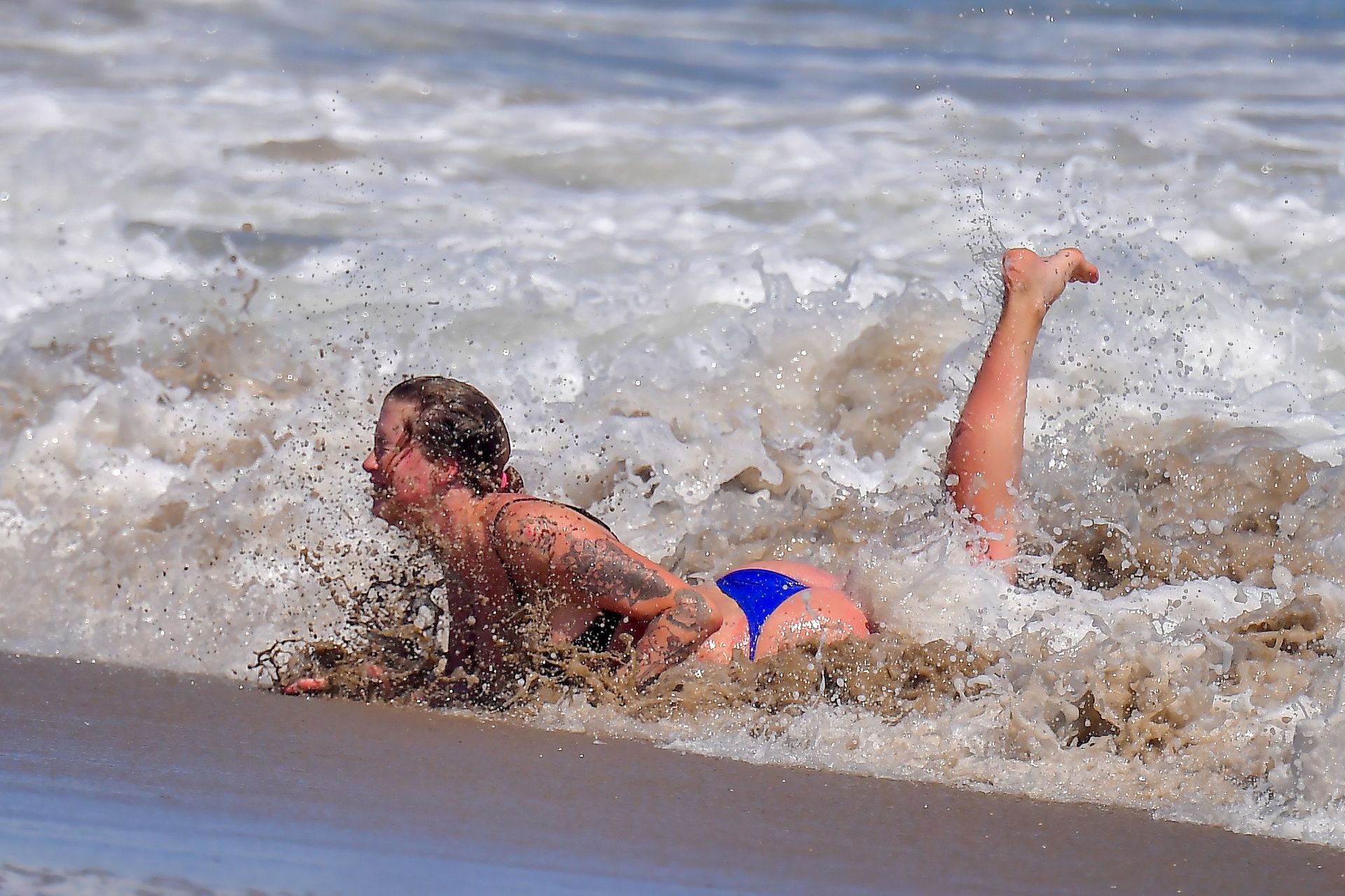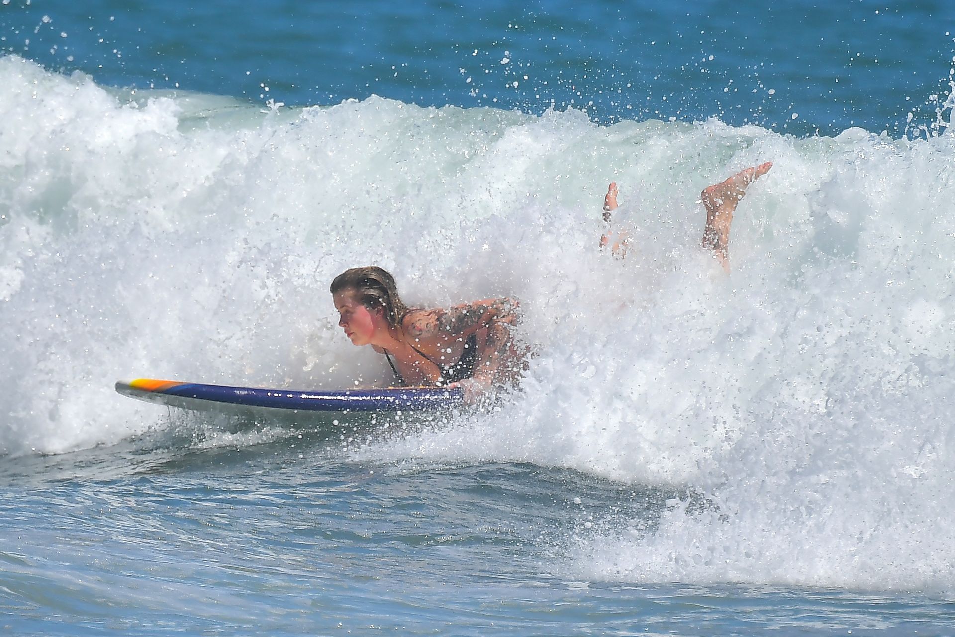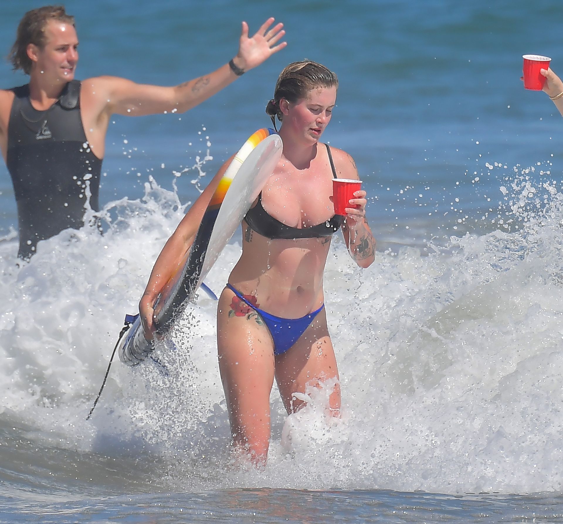 Ireland Baldwin è stata fotografata mentre si gode una giornata in spiaggia a Malibu con amici, 17/07/2020. La modella di 24 anni si è tuffata in mare per una nuotata indossando un bikini nero a due pezzi.