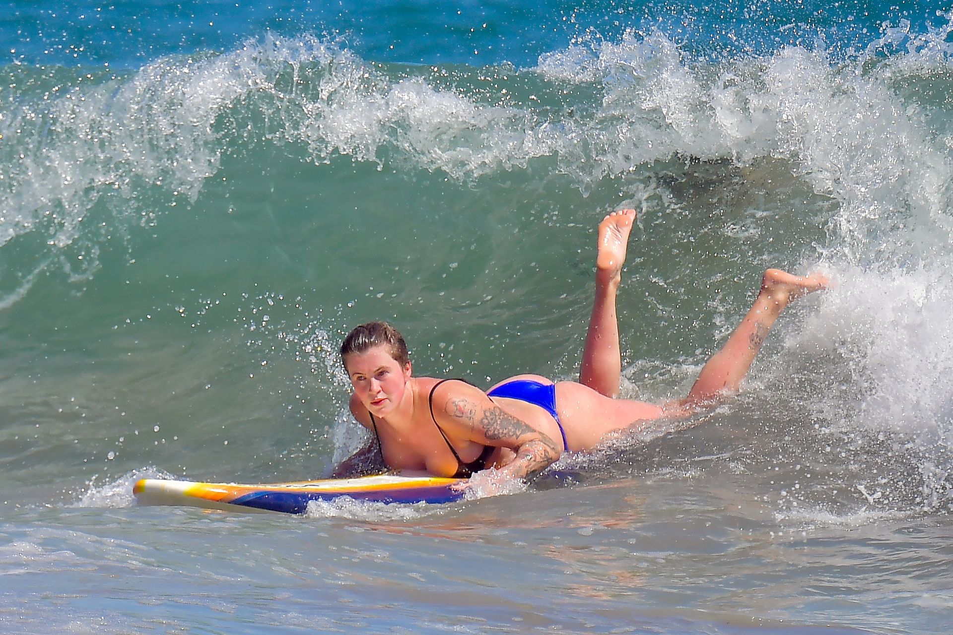 la prossima volta dovrebbe indossare dei top bikini larghi così potremmo vedere le sue tette cadenti e lattiginose.