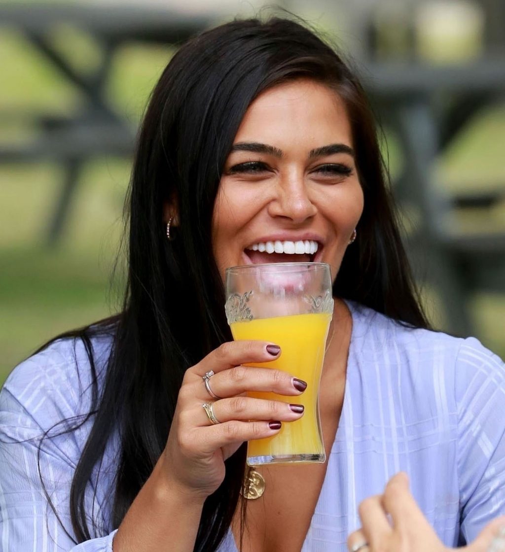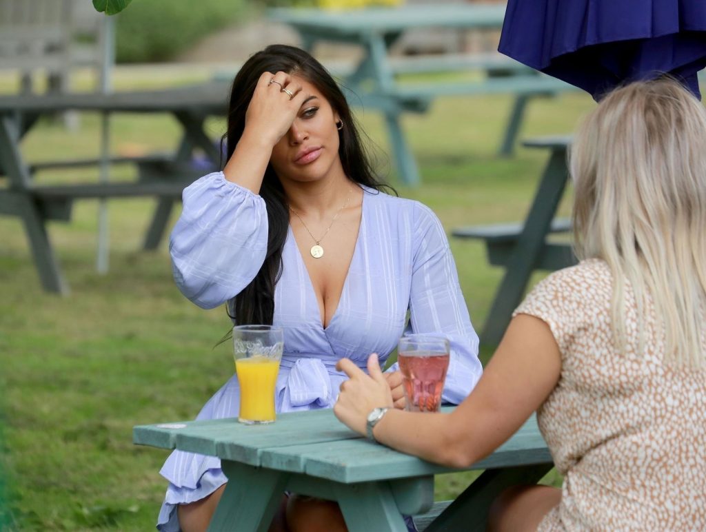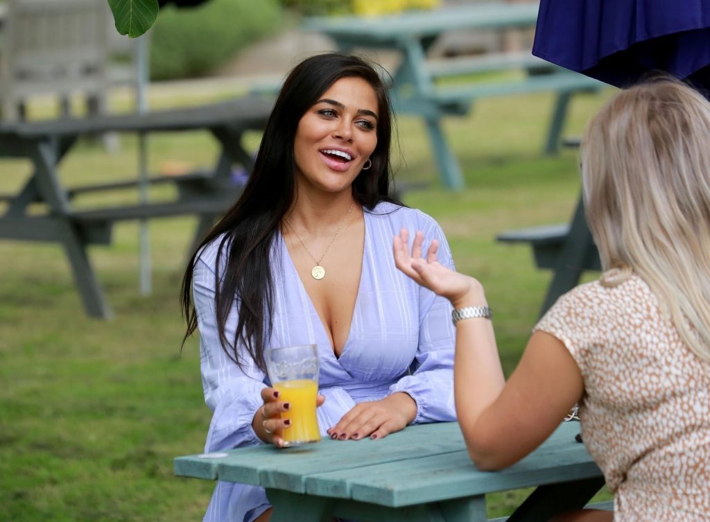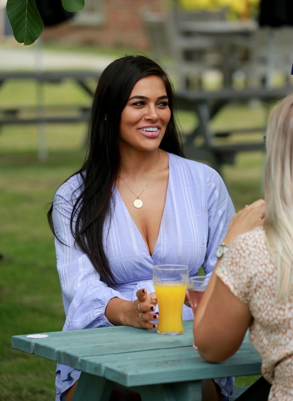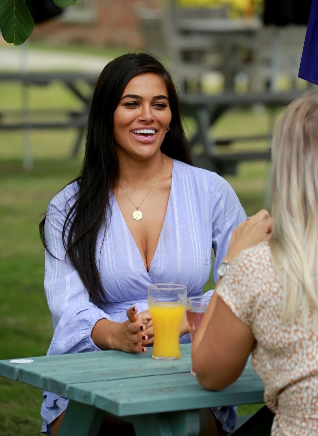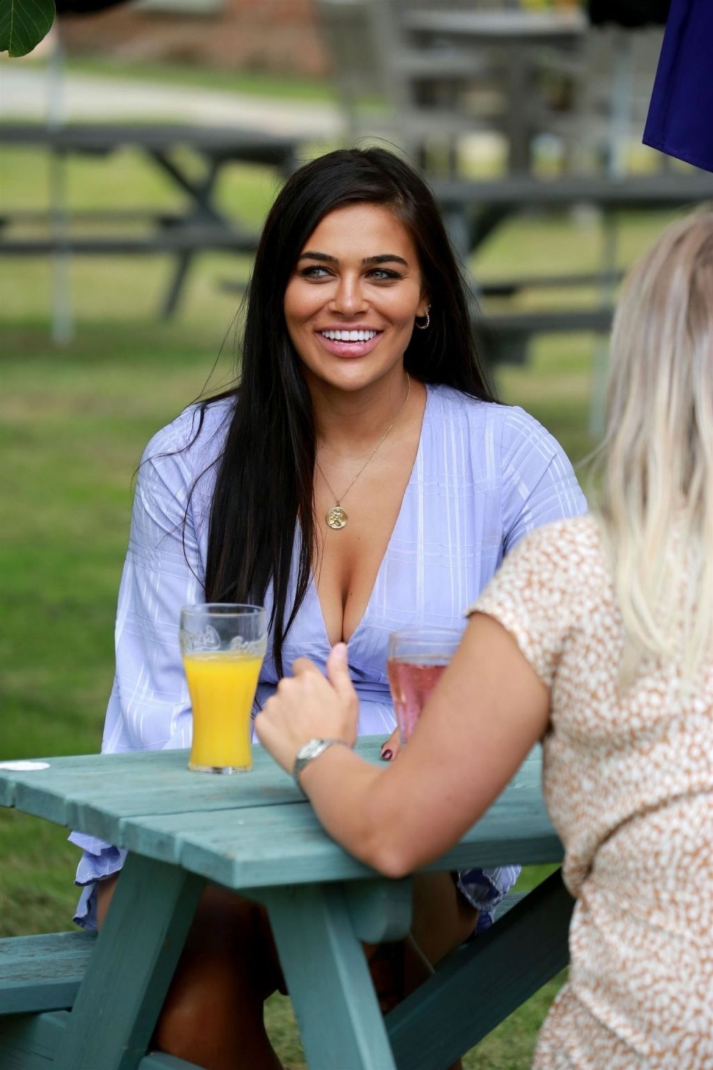 La star del reality show di Netflix ‘Too Hot to Handle’ Lydia Clyma approfitta del caldo clima britannico con una bevanda fresca e una bella chiacchierata con un’amica nel giardino di un pub vicino a casa sua a Portsmouth, 17/07/2020.